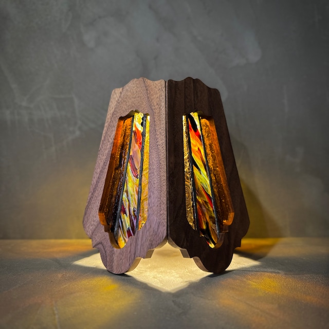 【商品名】 ダップルグラスシェード 【サイズ】 140×140×高さ156(mm) 【素材】 ウォールナット 【カラー】 umbrella gradation RED &umber 【商品説明】 テーパー形状で繋ぎ合わせ、ヴィンテージのパラソル傘を表現しました。カラーが交わりまさに芸術的な美しさを放ちます!どの面を見ても楽しめる一点物です! 無垢材ウォールナットとステンドグラスを融合させ両方の美しさを最大限に活かした高級感漂う Bornオリジナルゴールゼロ用ランプシェード(2WAY:吊る・置き型) キャンプでの使用はもちろん、ご自宅でインテリアとしてもお楽しみいただけます。 シェード形状にテーパーをかけている事により、光が広がります。 ステンドグラスの部分は交換できる仕様になってますので、テントコーデに合わせて変更できます。ガラスはトンボで固定されているので、持ち運ぶ際はガラスを外して運べます。 シェード本体には、Dapple Bornオリジナルの真鍮プレートがデザインの象徴となっております。 【ご使用上の注意】 ガラス部分を持たないで下さい。ガラスが外れたり、留め具の故障に繋がります。 【ご注意事項】 天然木・アンティークガラスを使用していますので、一つ一つ模様が異なります。1点物としてお楽しみ下さい。(お写真の模様と異なる場合があります) 一つ一つ手作りで製作していますので、多少のずれ等はご了承ください。 また、過度な直射日光はなるべく避けてください。