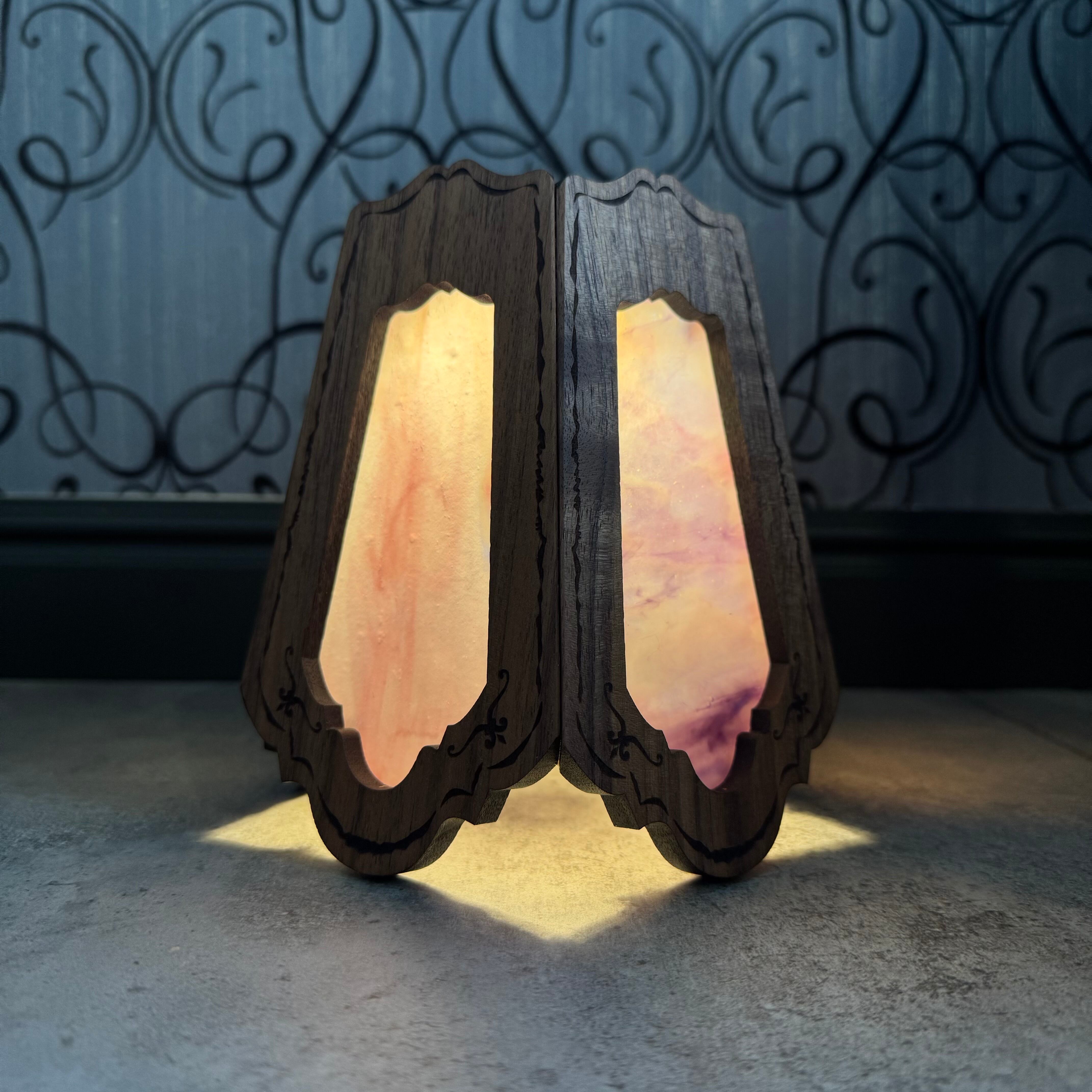 無垢材ウォールナットとステンドグラスを融合させ両方の美しさを最大限に活かした高級感漂う Bornオリジナルゴールゼロ用ランプシェード(2WAY:吊る・置き型)