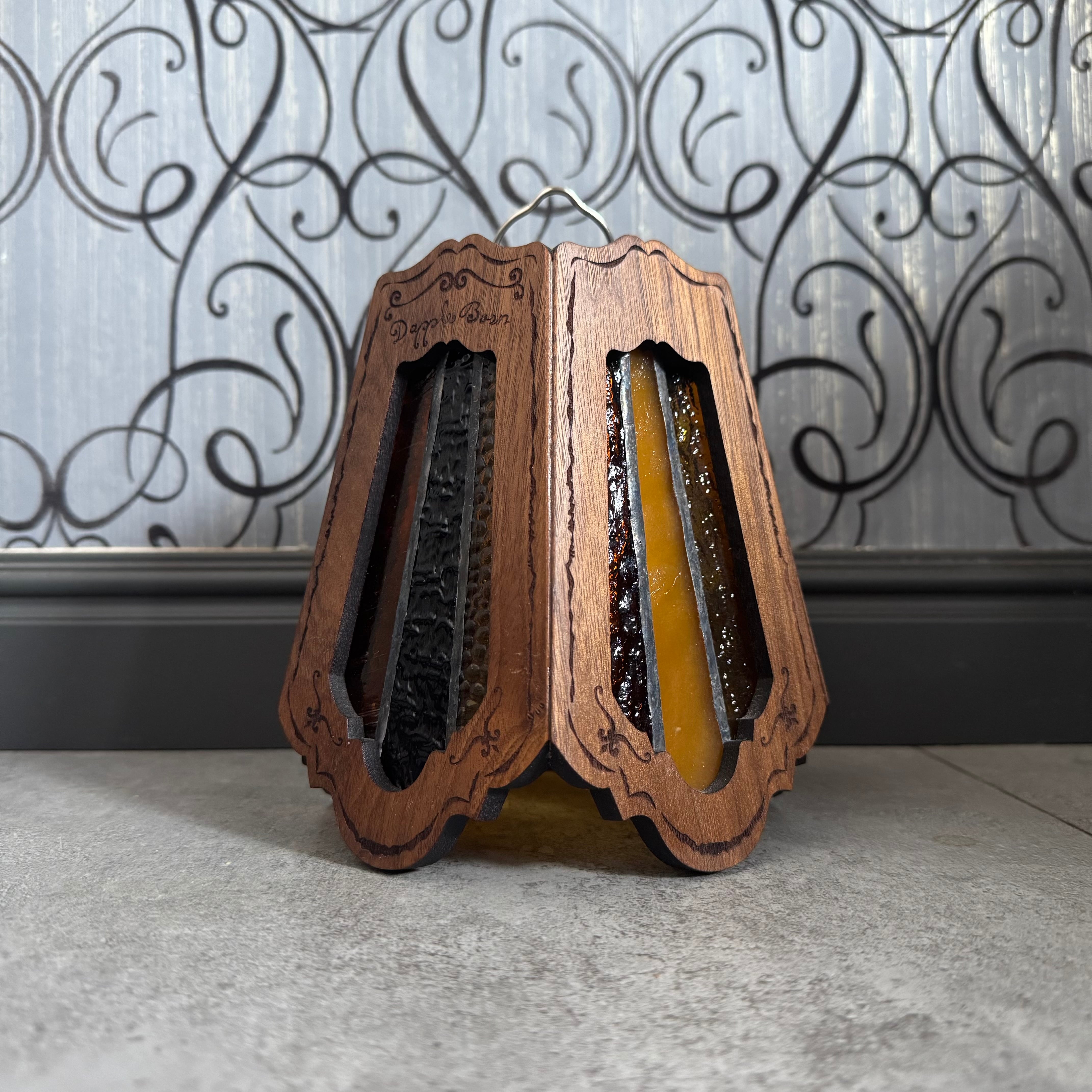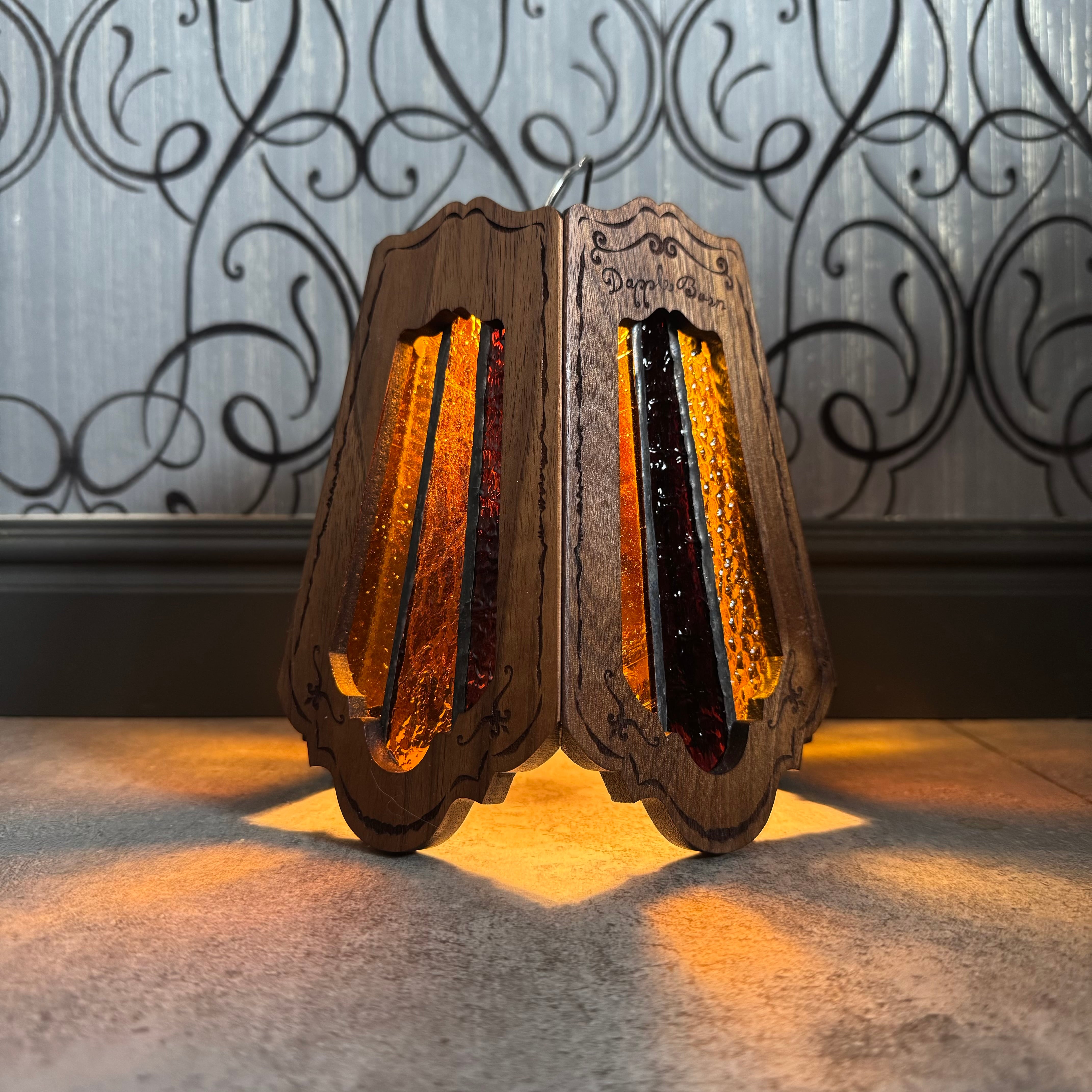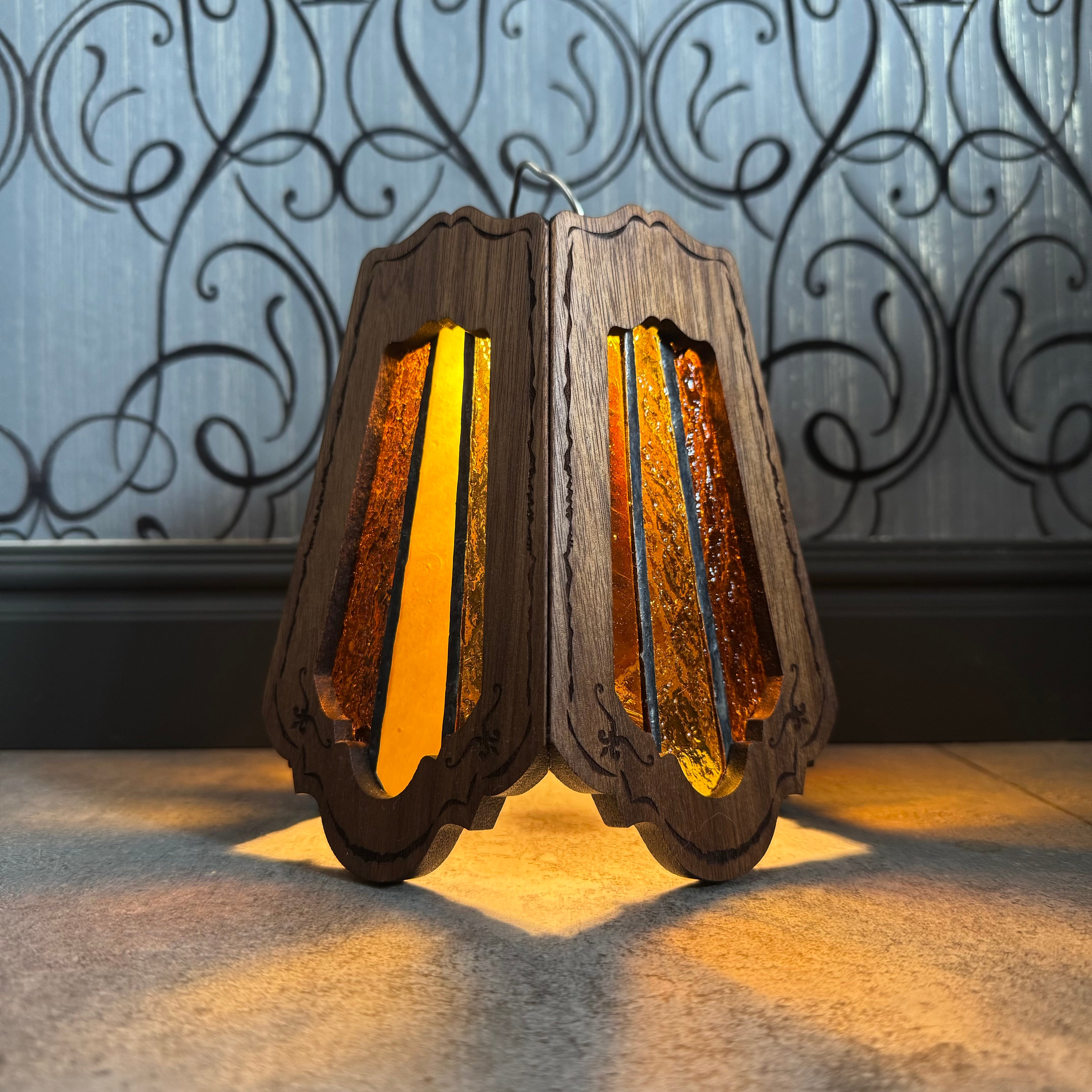 無垢材ウォールナットとステンドグラスを融合させ両方の美しさを最大限に活かした高級感漂う Bornオリジナルゴールゼロ用ランプシェード(2WAY:吊る・置き型)