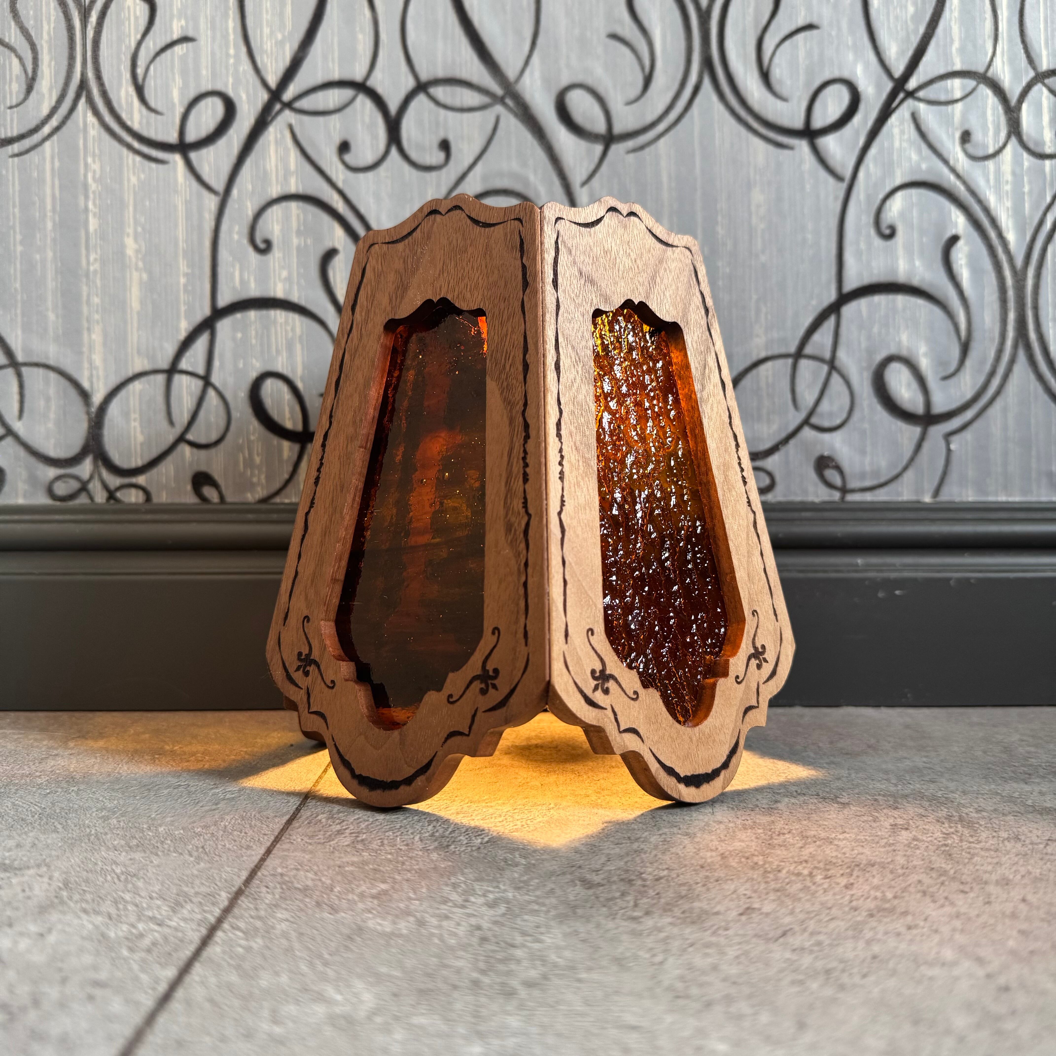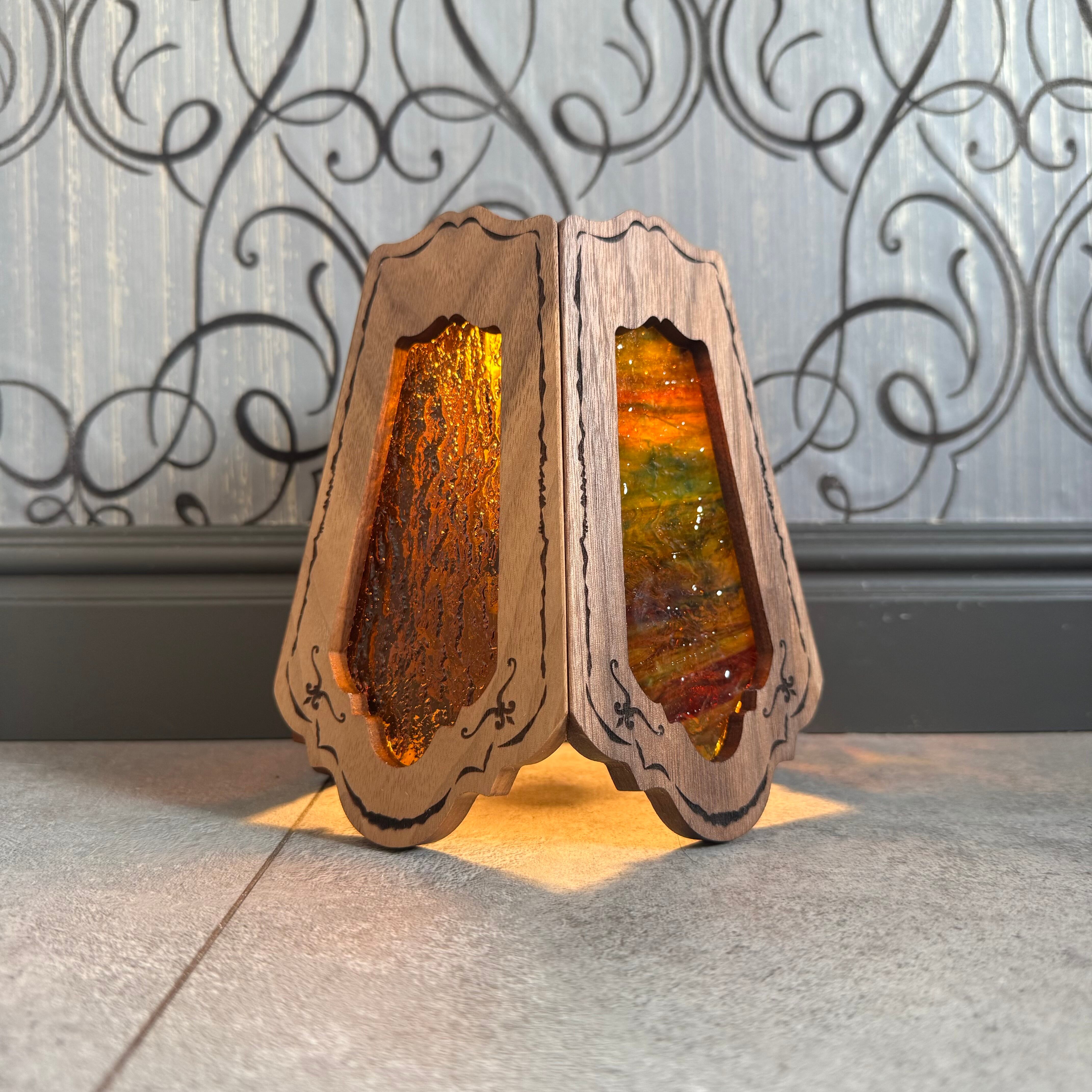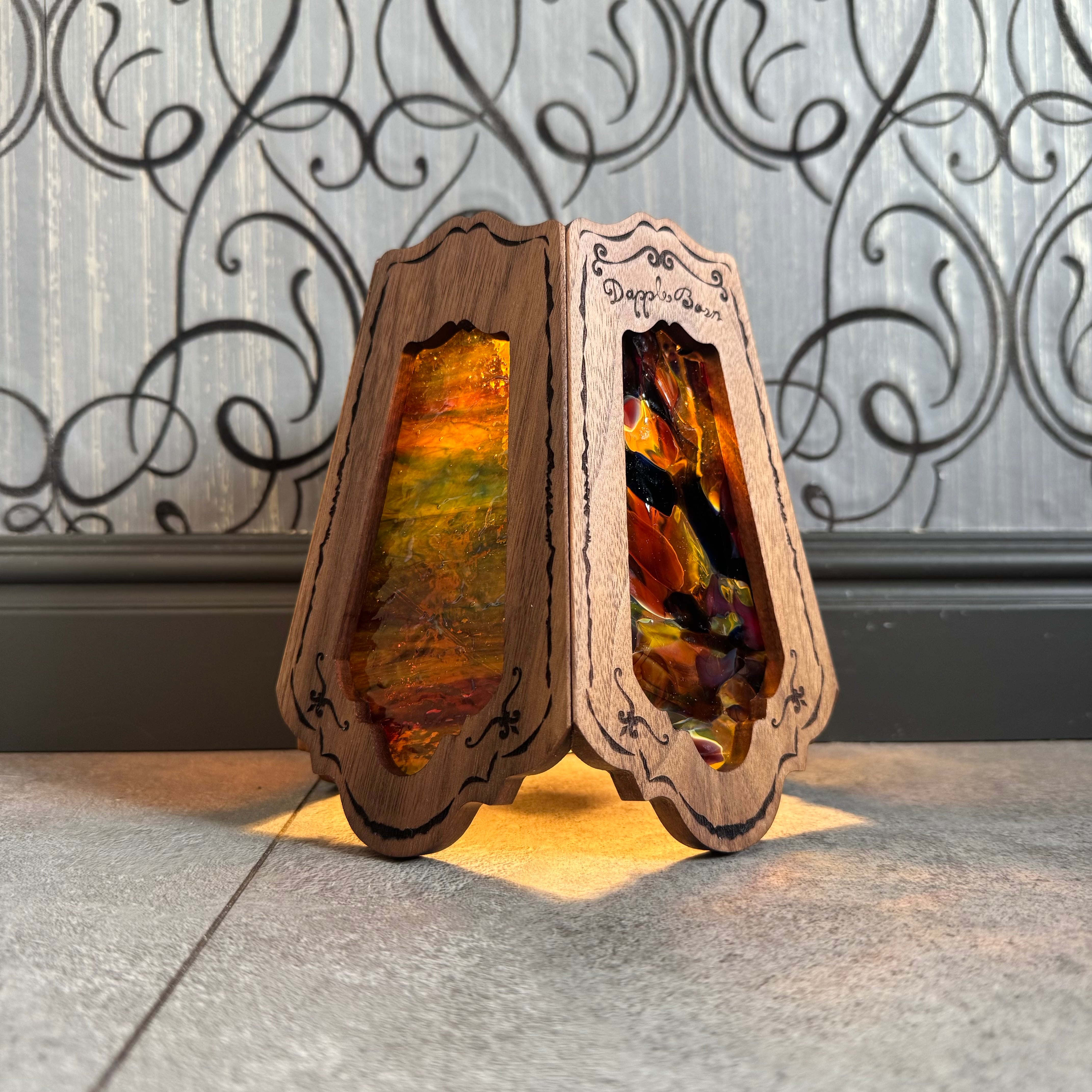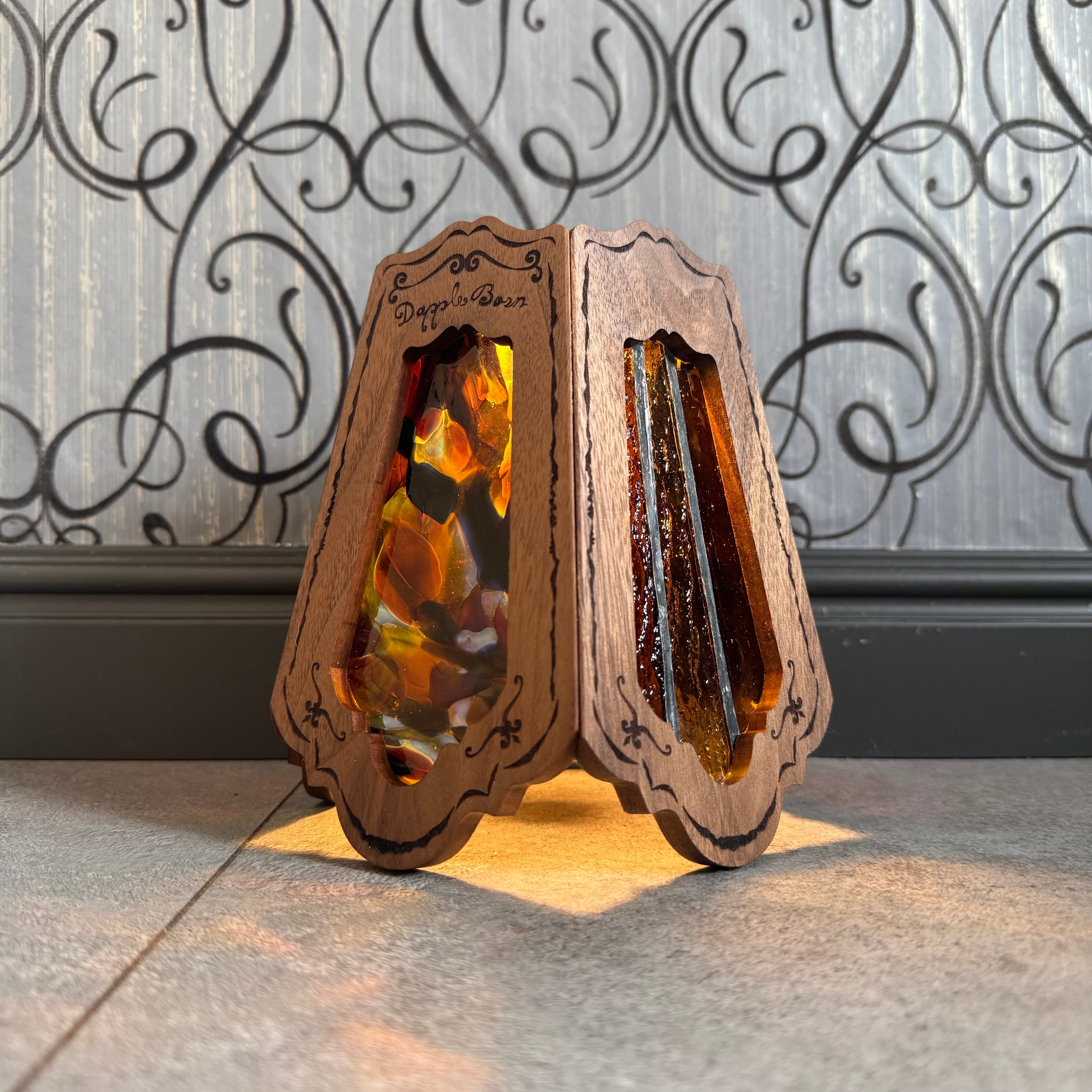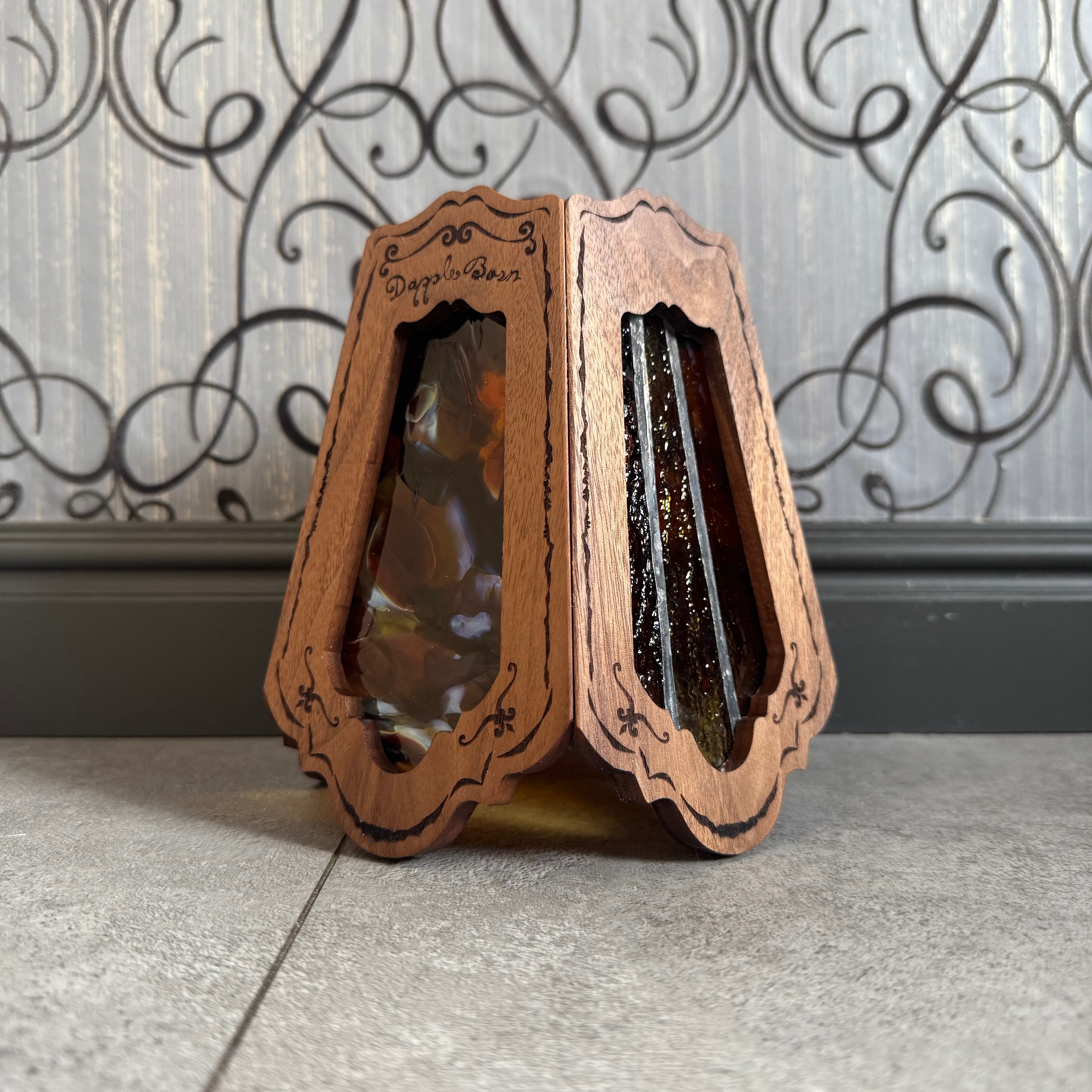 無垢材ウォールナットとステンドグラスを融合させ両方の美しさを最大限に活かした高級感漂う Bornオリジナルゴールゼロ用ランプシェード(2WAY:吊る・置き型)