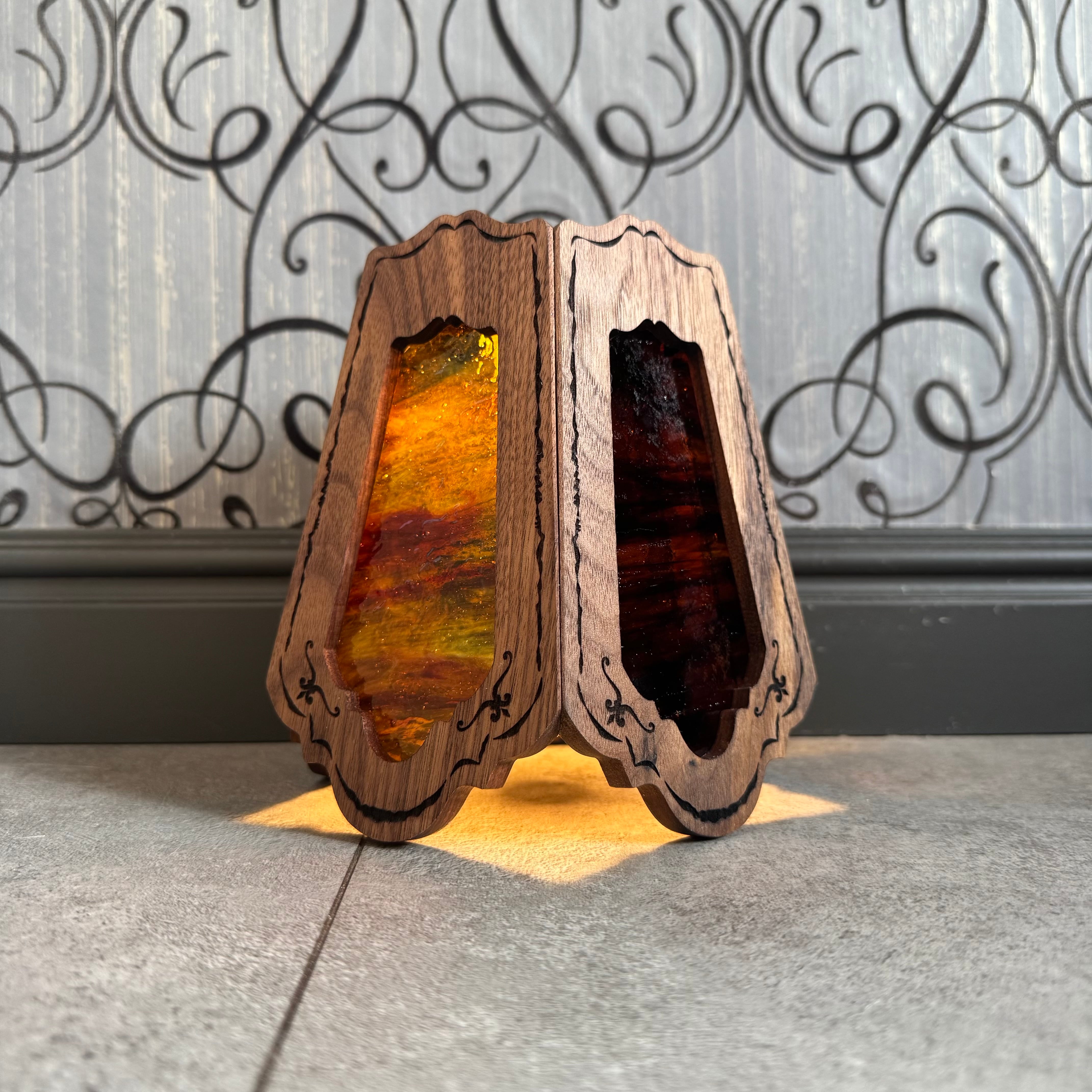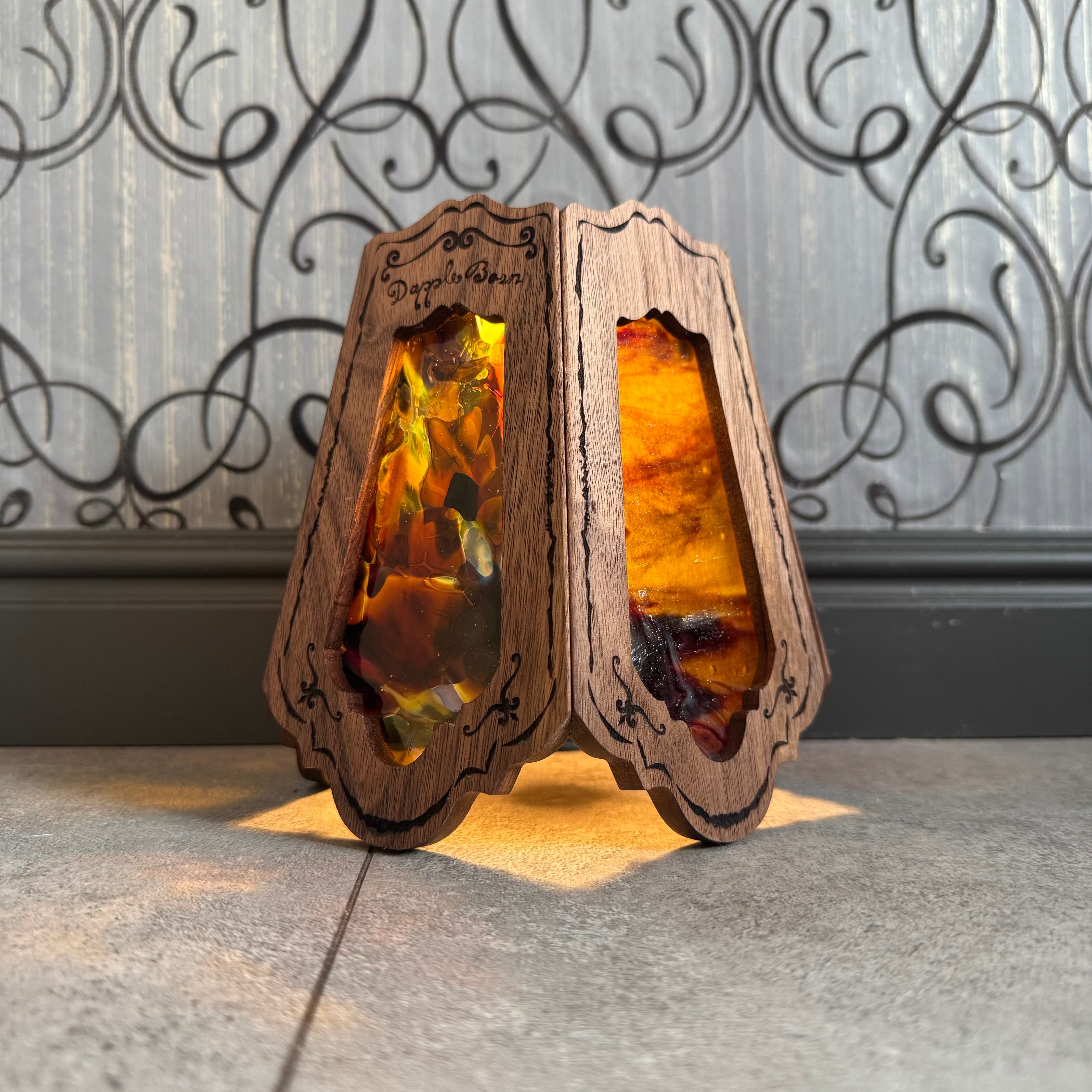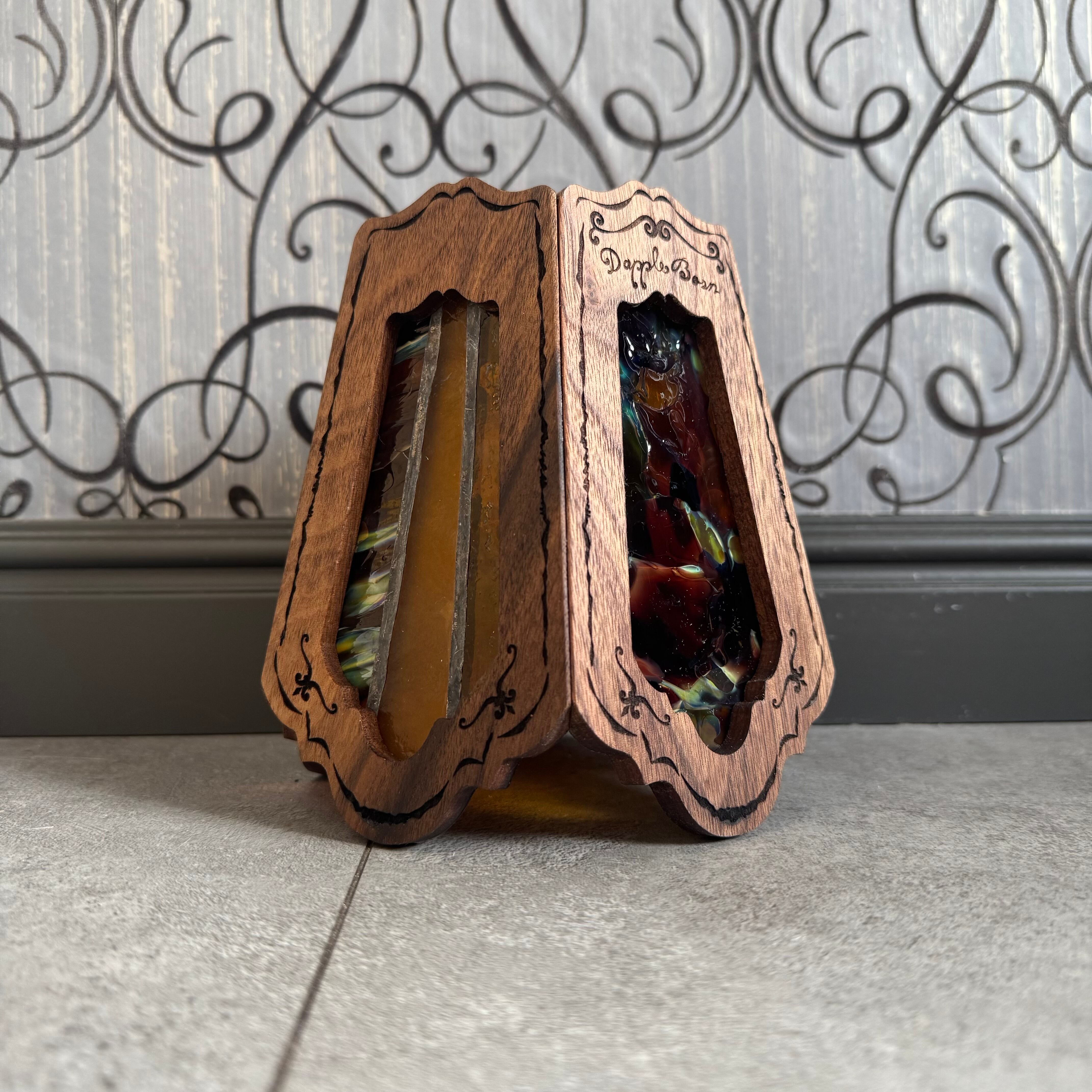 無垢材ウォールナットとステンドグラスを融合させ両方の美しさを最大限に活かした高級感漂う Bornオリジナルゴールゼロ用ランプシェード(2WAY:吊る・置き型)