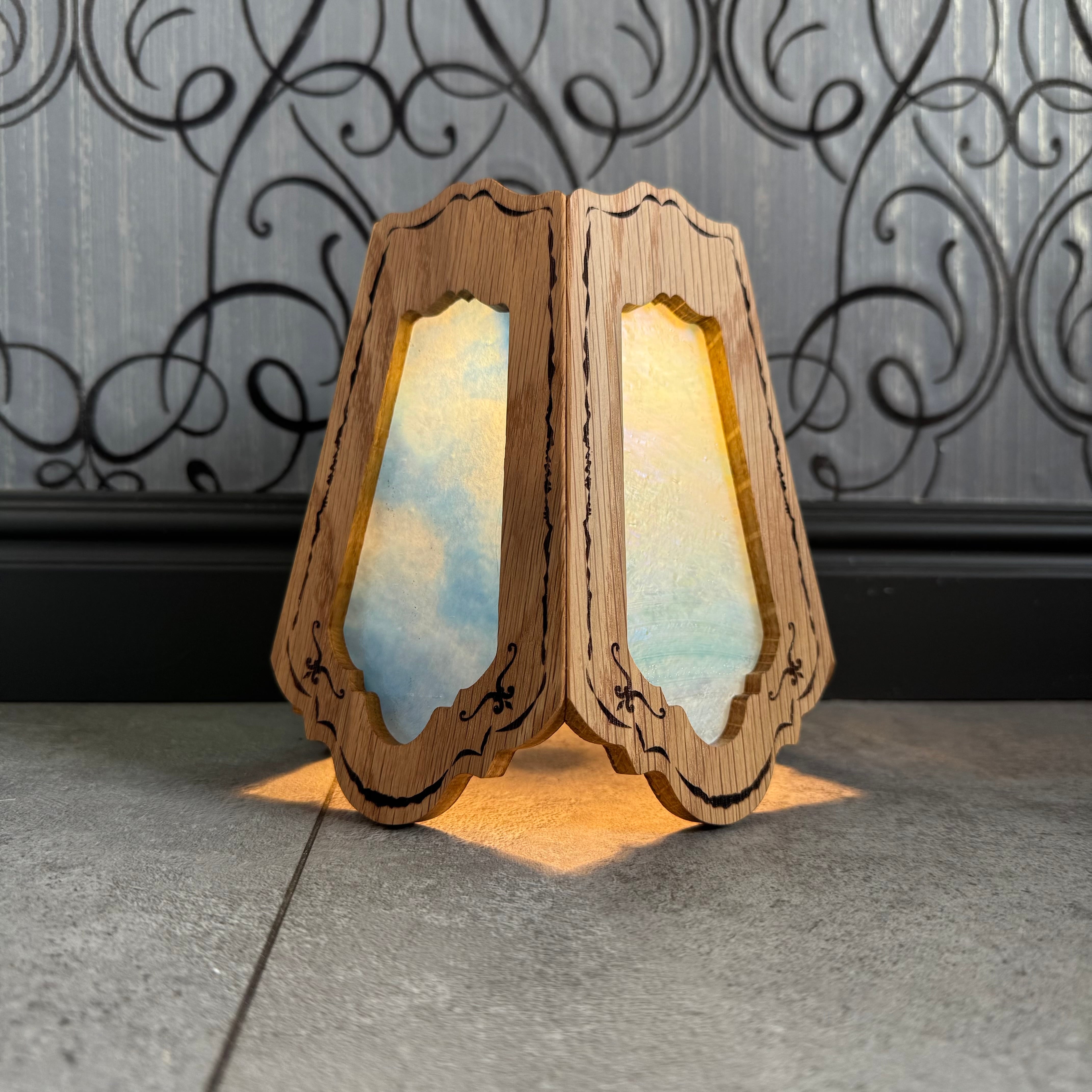 無垢材ウォールナットとステンドグラスを融合させ両方の美しさを最大限に活かした高級感漂う Bornオリジナルゴールゼロ用ランプシェード(2WAY:吊る・置き型)