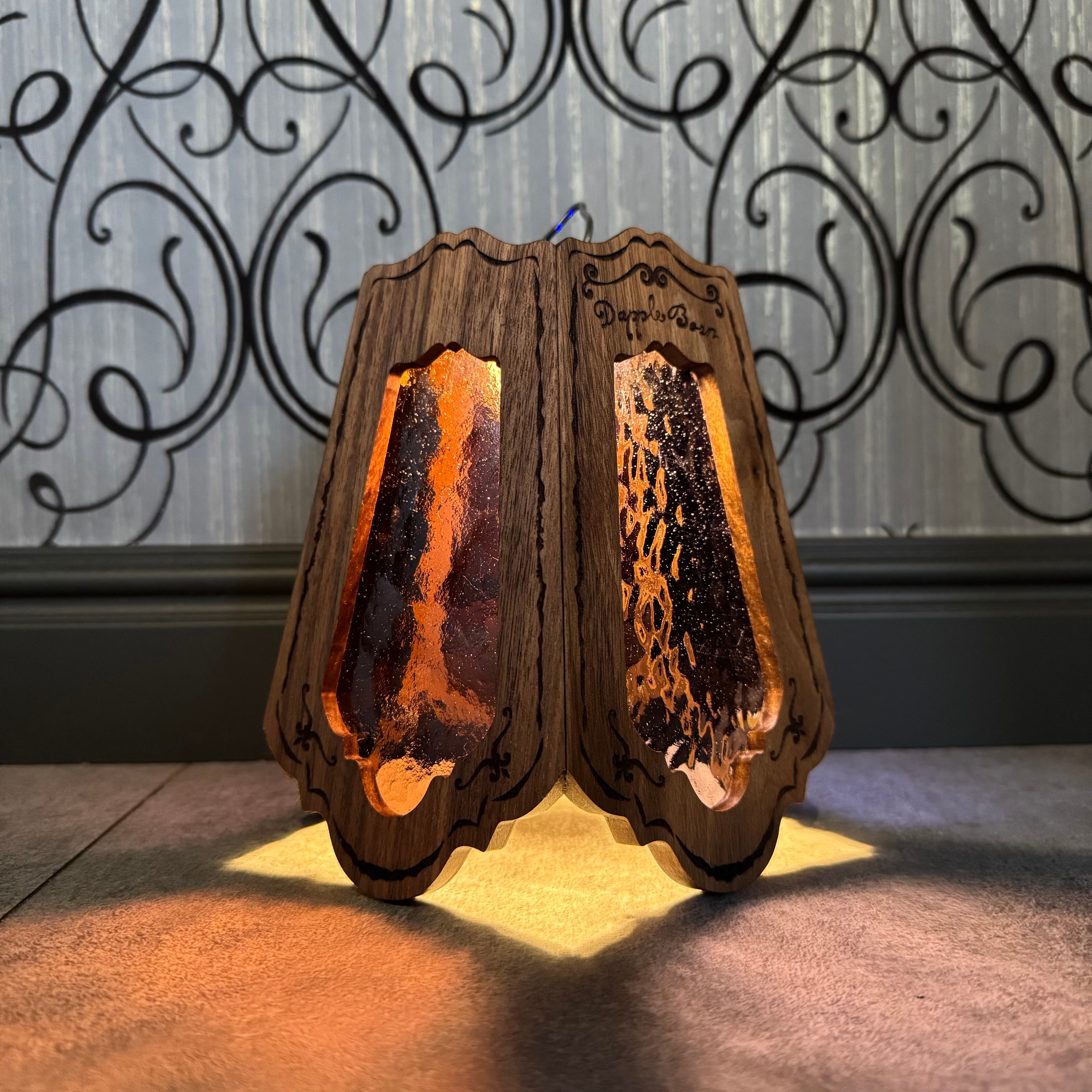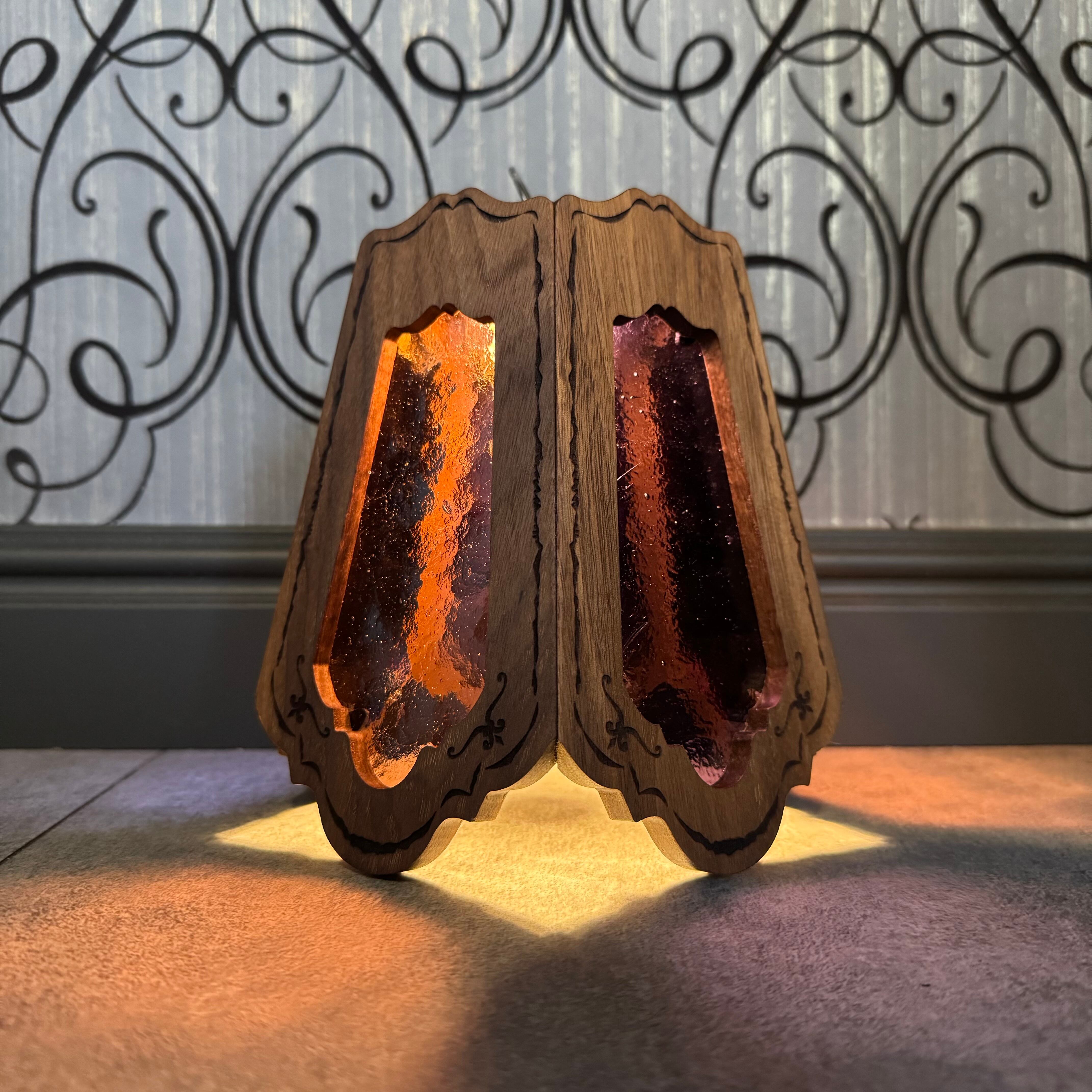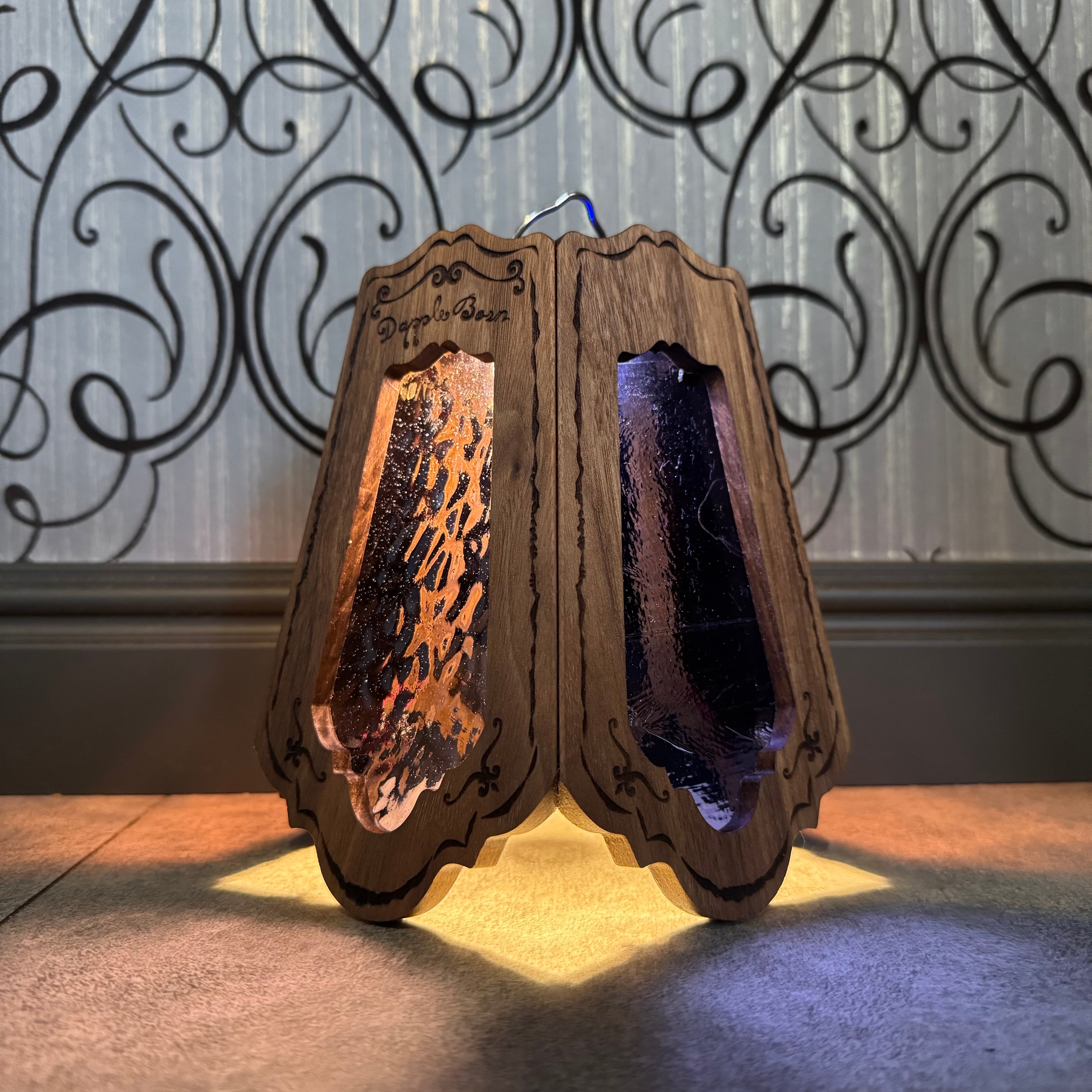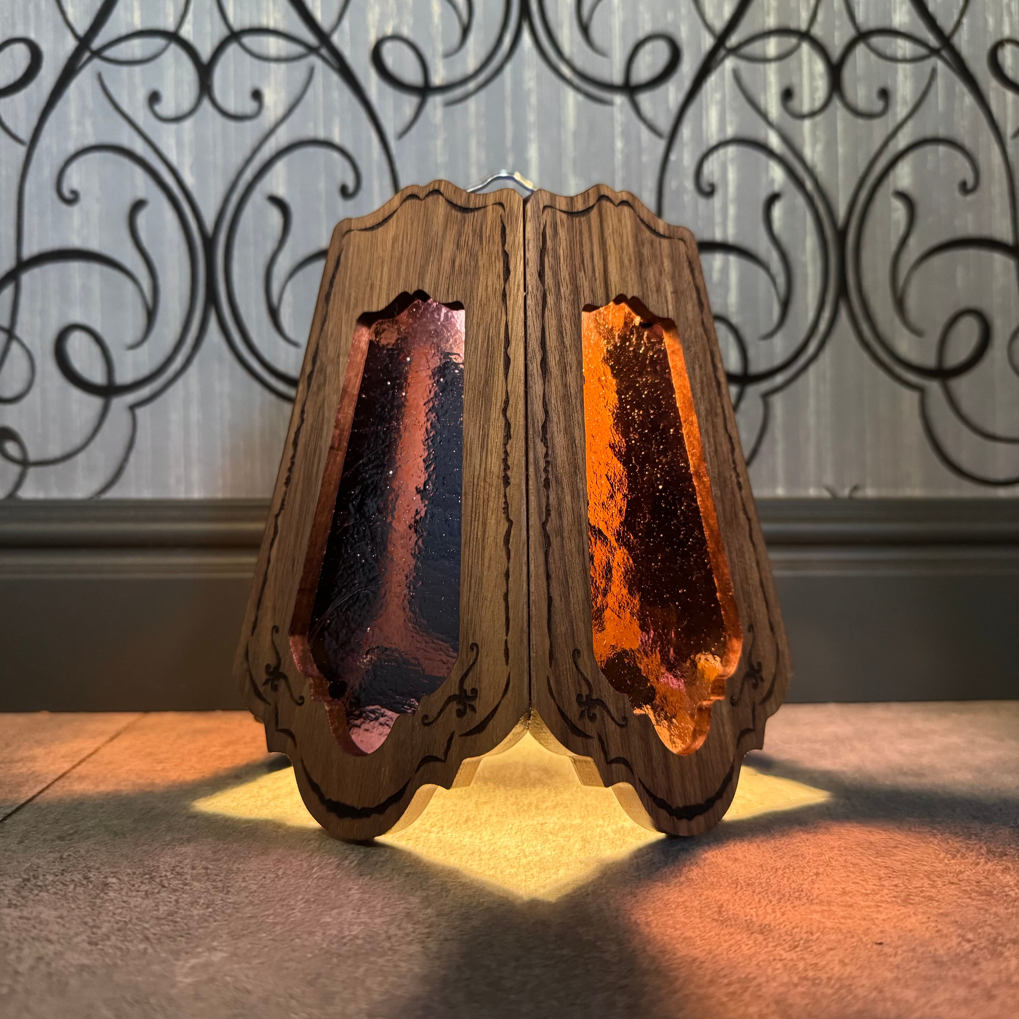 無垢材ウォールナットとステンドグラスを融合させ両方の美しさを最大限に活かした高級感漂う Bornオリジナルゴールゼロ用ランプシェード(2WAY:吊る・置き型)