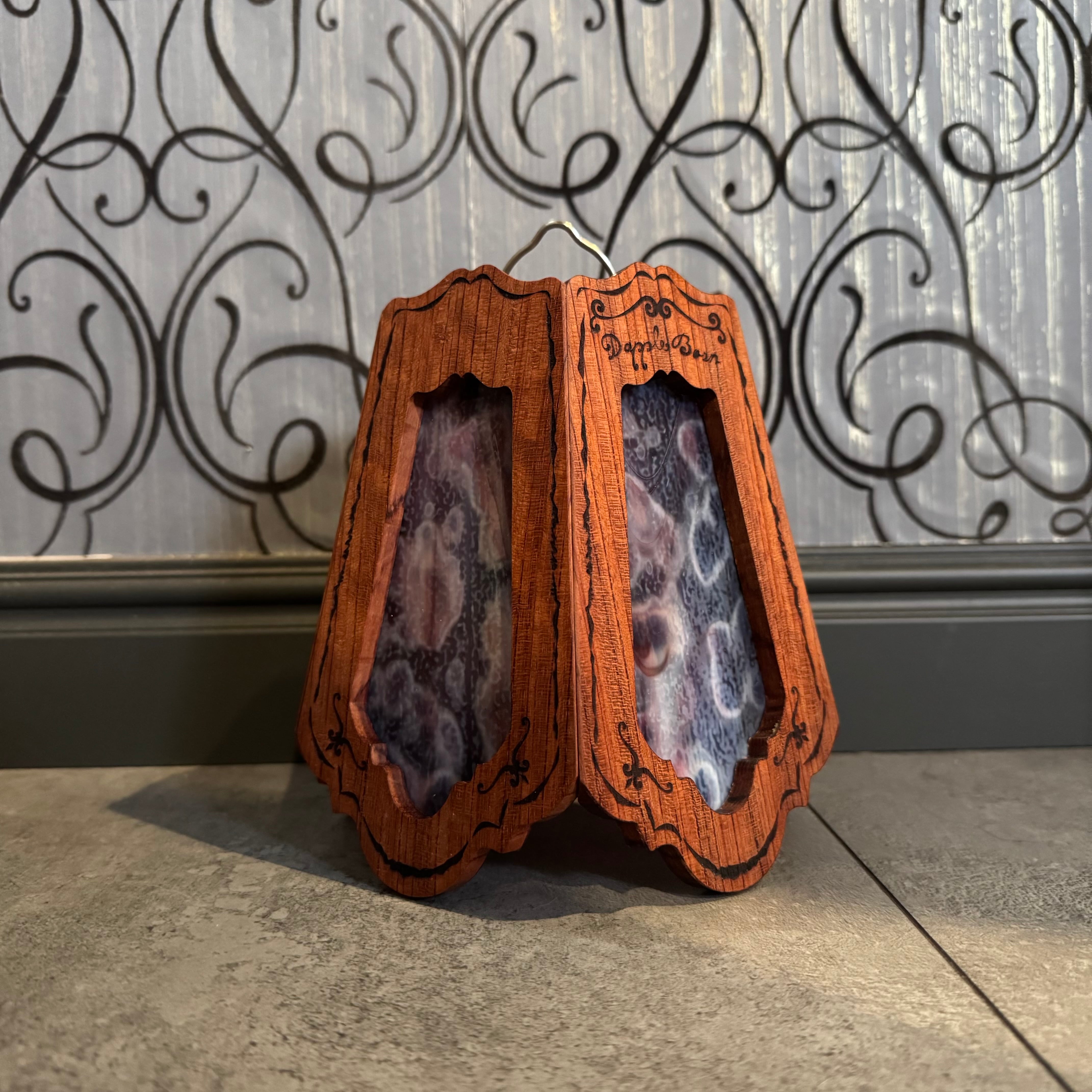 無垢材ブビンガとステンドグラスを融合させ両方の美しさを最大限に活かした高級感漂う Bornオリジナルゴールゼロ用ランプシェード(2WAY:吊る・置き型)