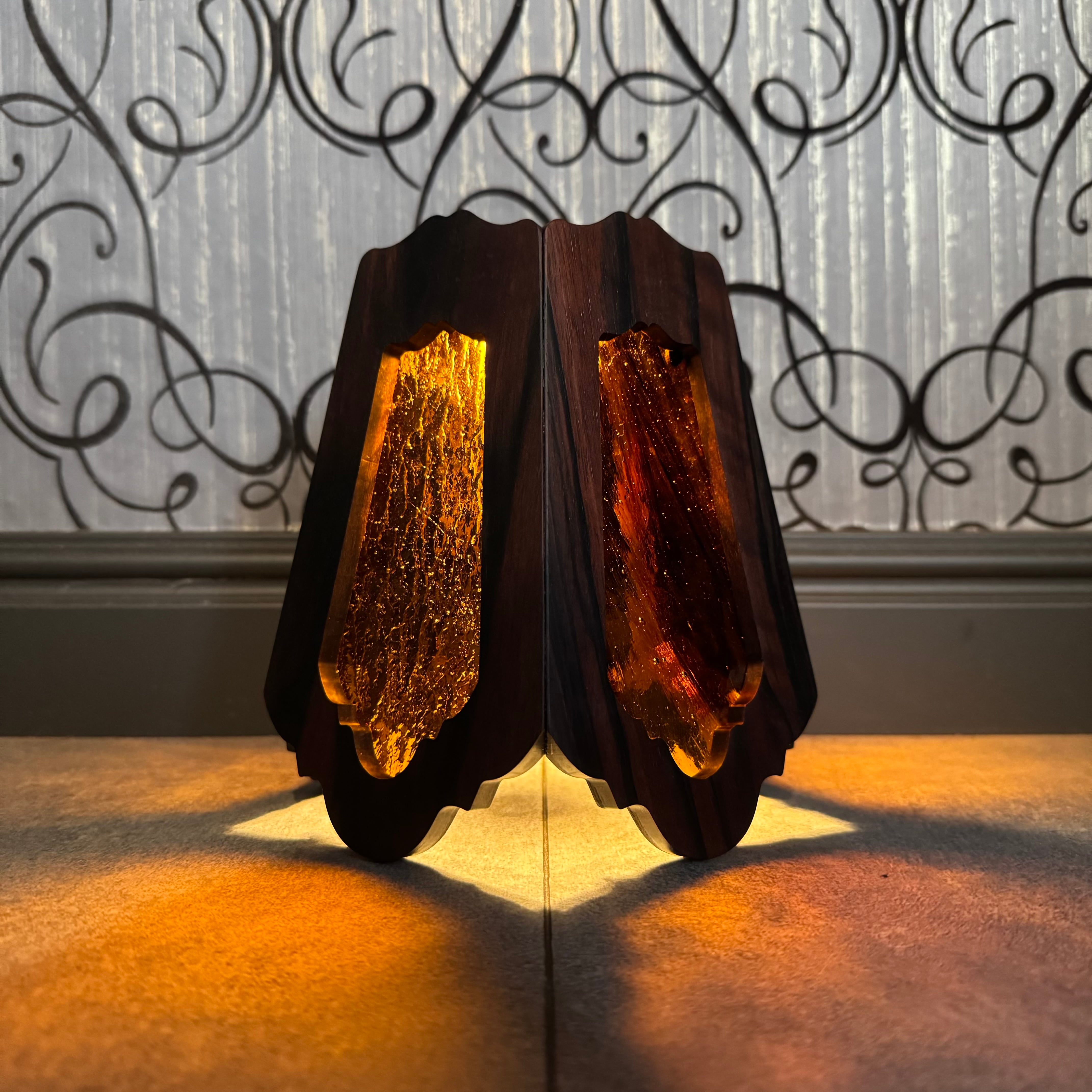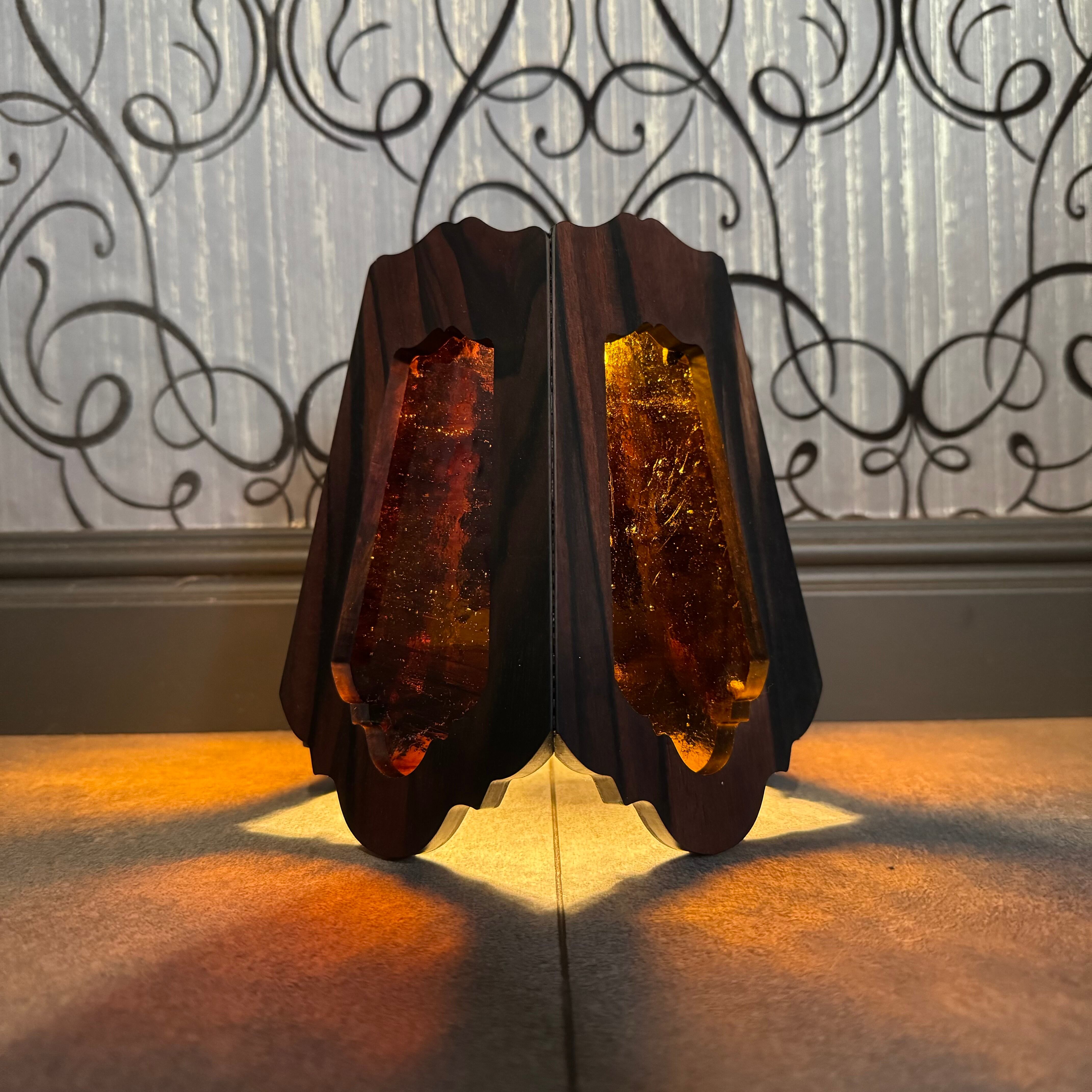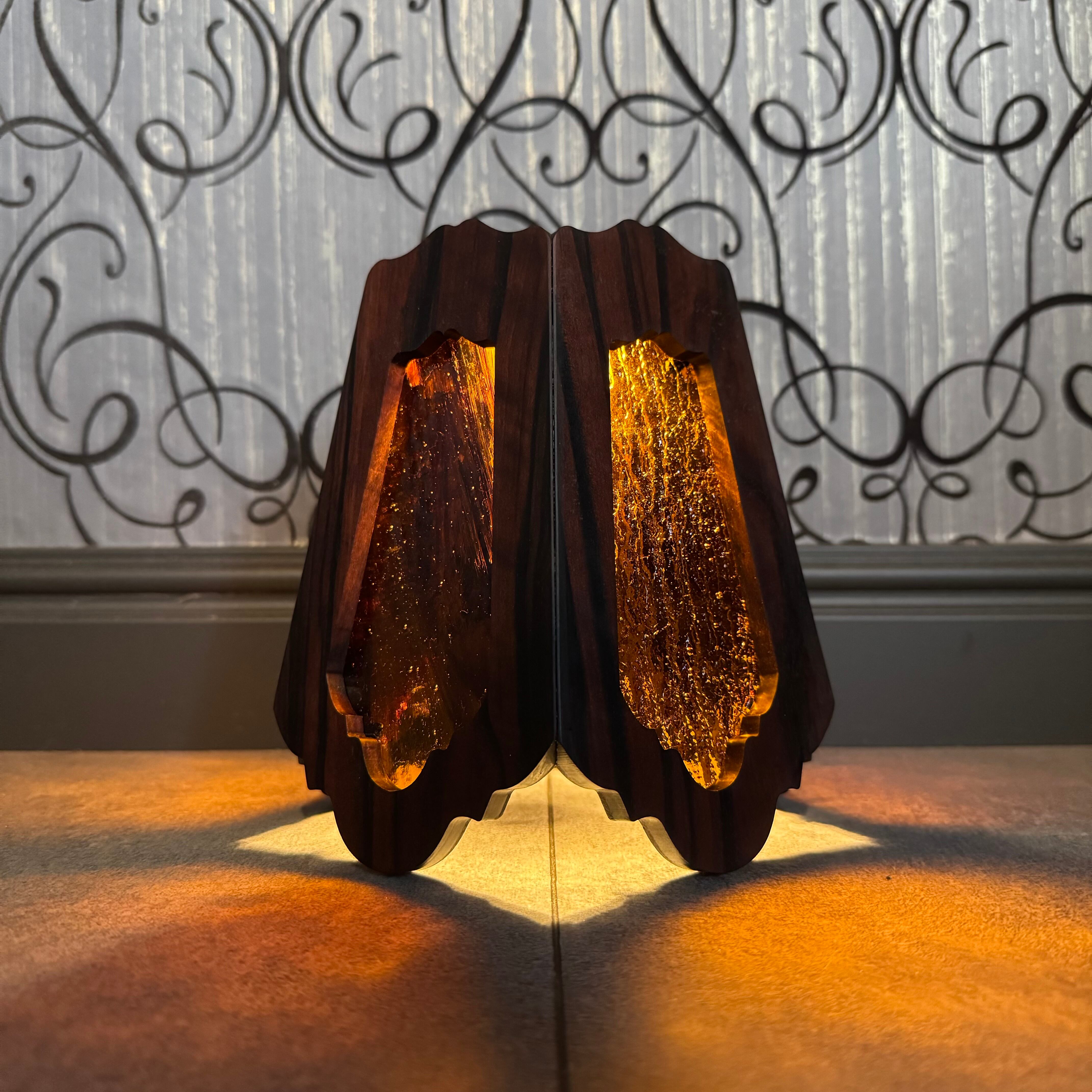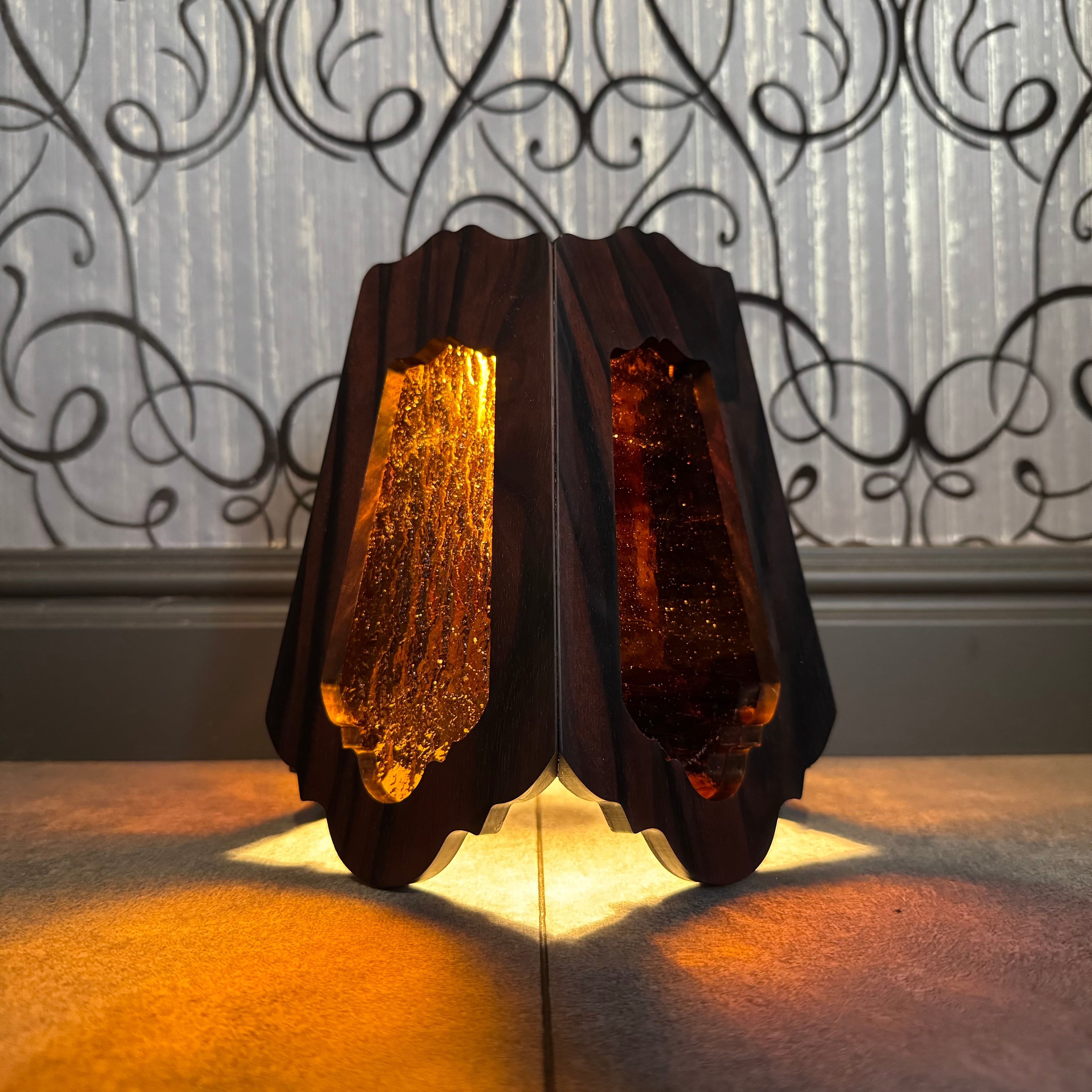 無垢材黒檀とステンドグラスを融合させ両方の美しさを最大限に活かした高級感漂う Bornオリジナルゴールゼロ用ランプシェード(2WAY:吊る・置き型)