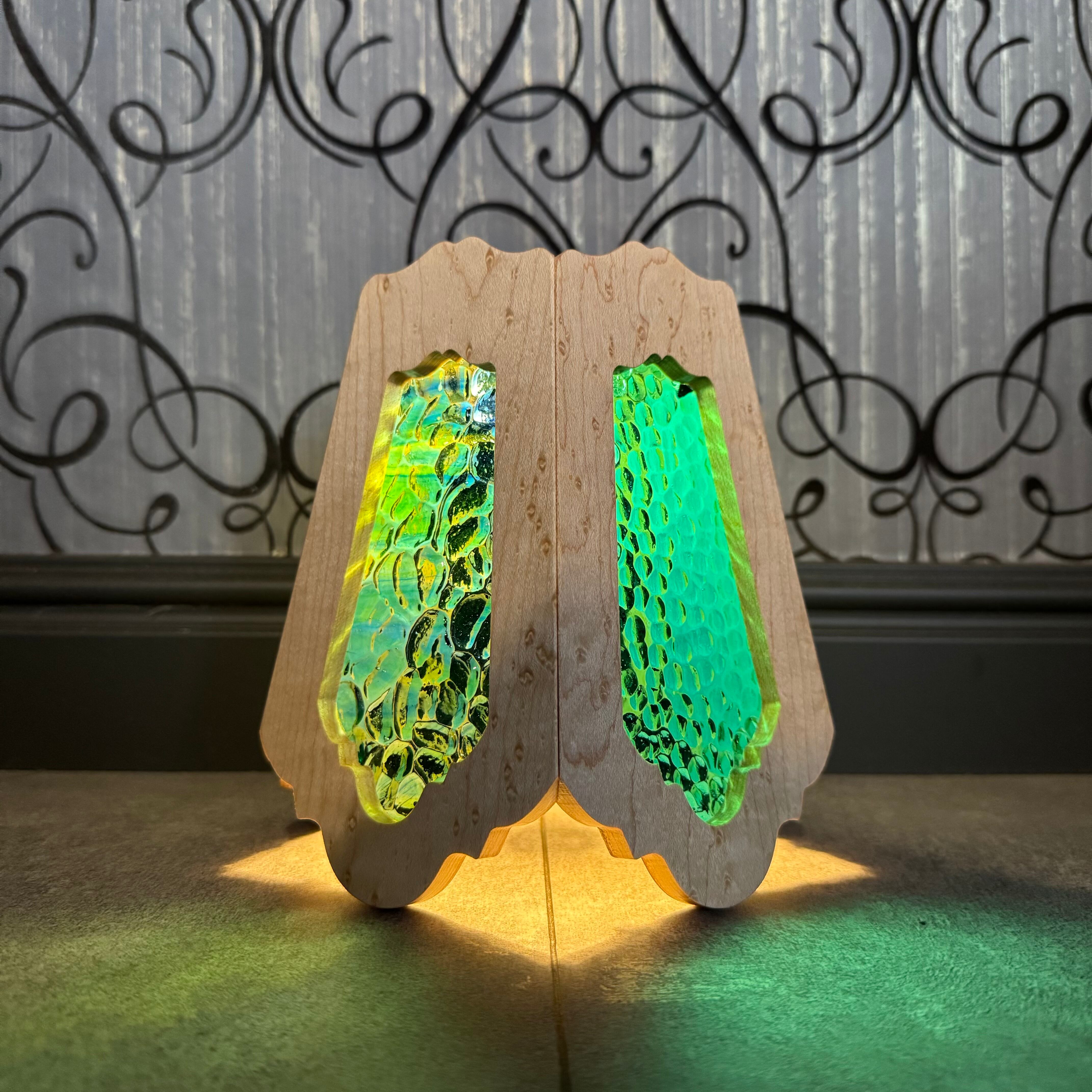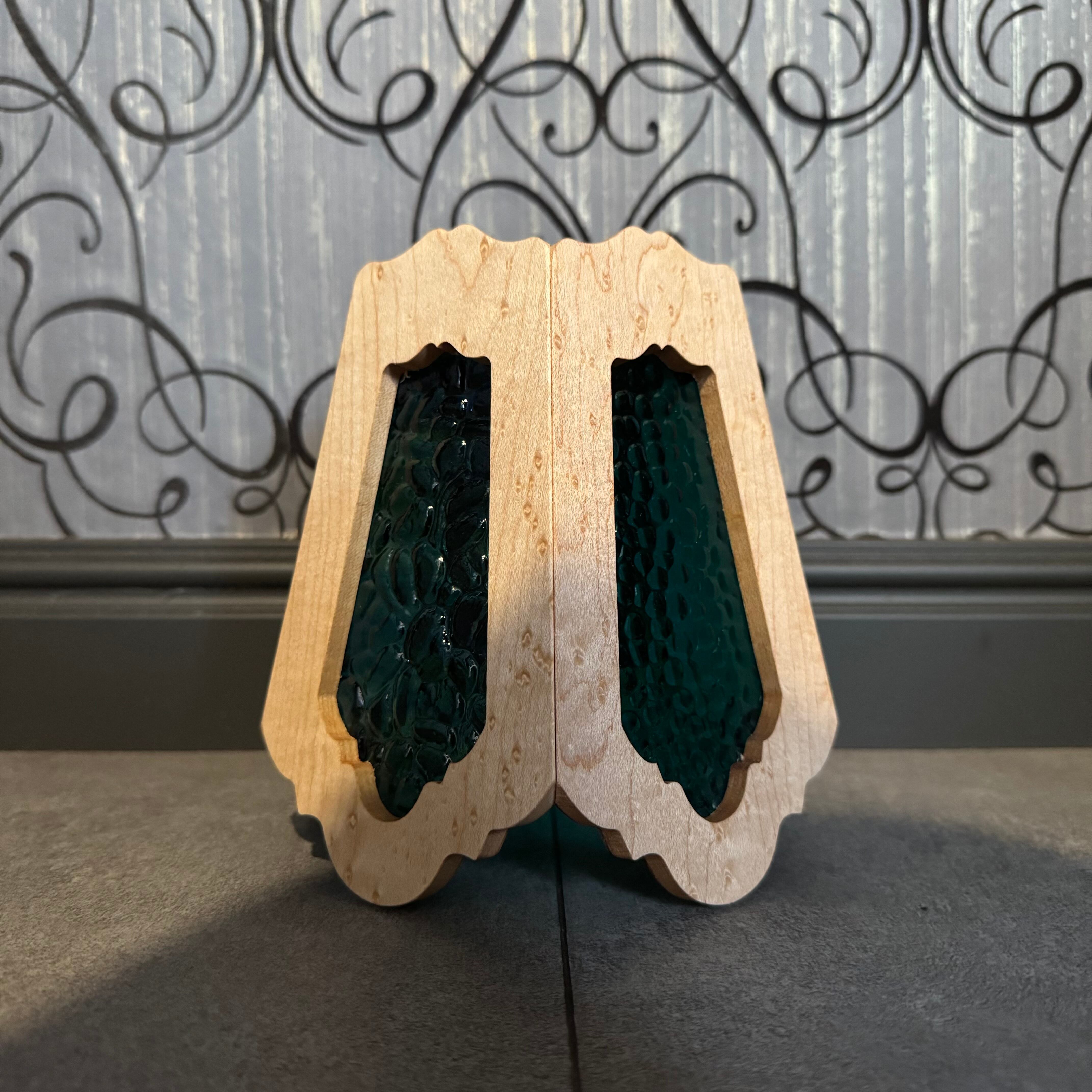 無垢材バーズアイメイプルとステンドグラスを融合させ両方の美しさを最大限に活かした高級感漂う Bornオリジナルゴールゼロ用ランプシェード(2WAY:吊る・置き型)