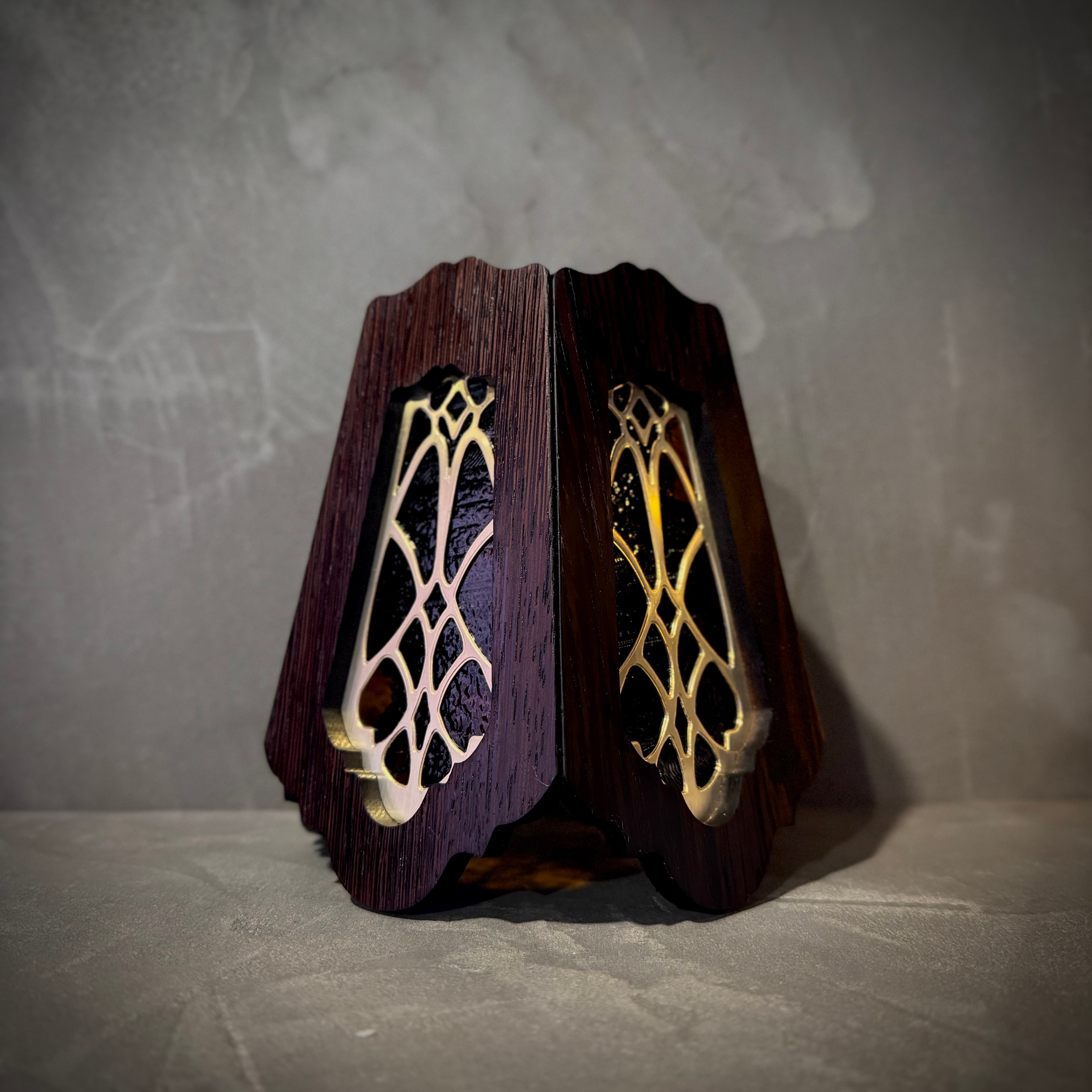 無垢材ウェンジとステンドグラスを融合させ両方の美しさを最大限に活かした高級感漂う Bornオリジナルゴールゼロ用ランプシェード(2WAY:吊る・置き型)