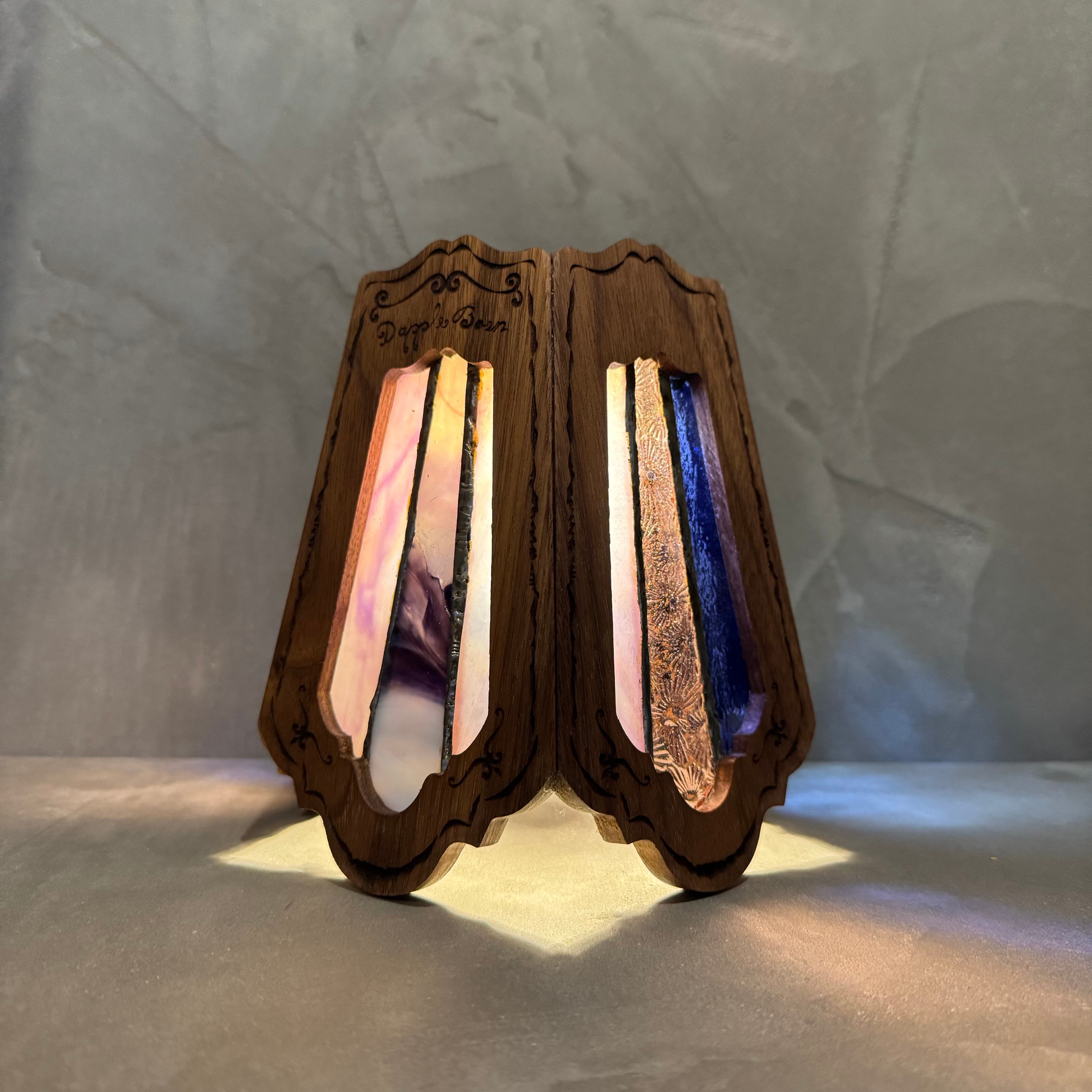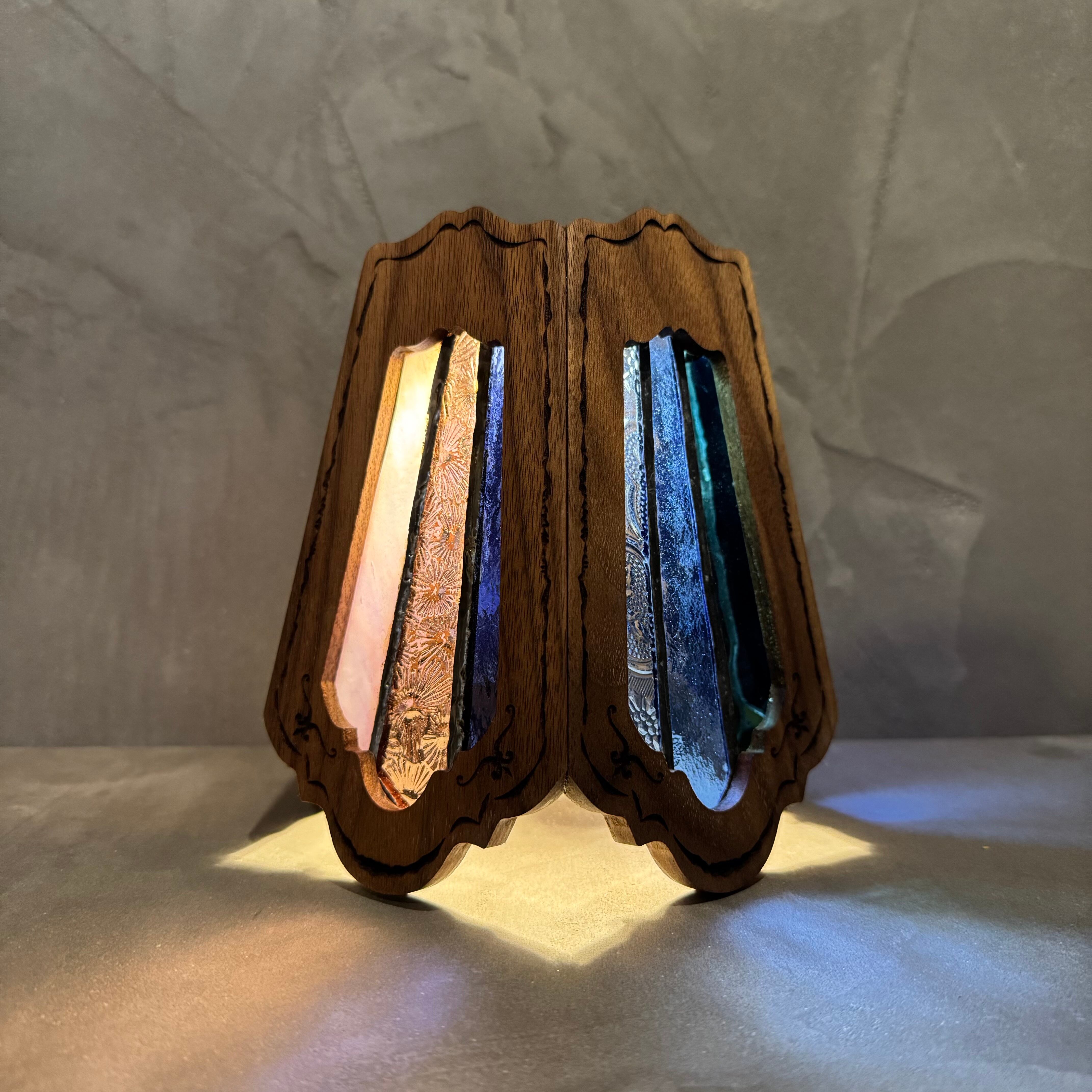 無垢材ウォールナットとステンドグラスを融合させ両方の美しさを最大限に活かした高級感漂う Bornオリジナルゴールゼロ用ランプシェード(2WAY:吊る・置き型)
