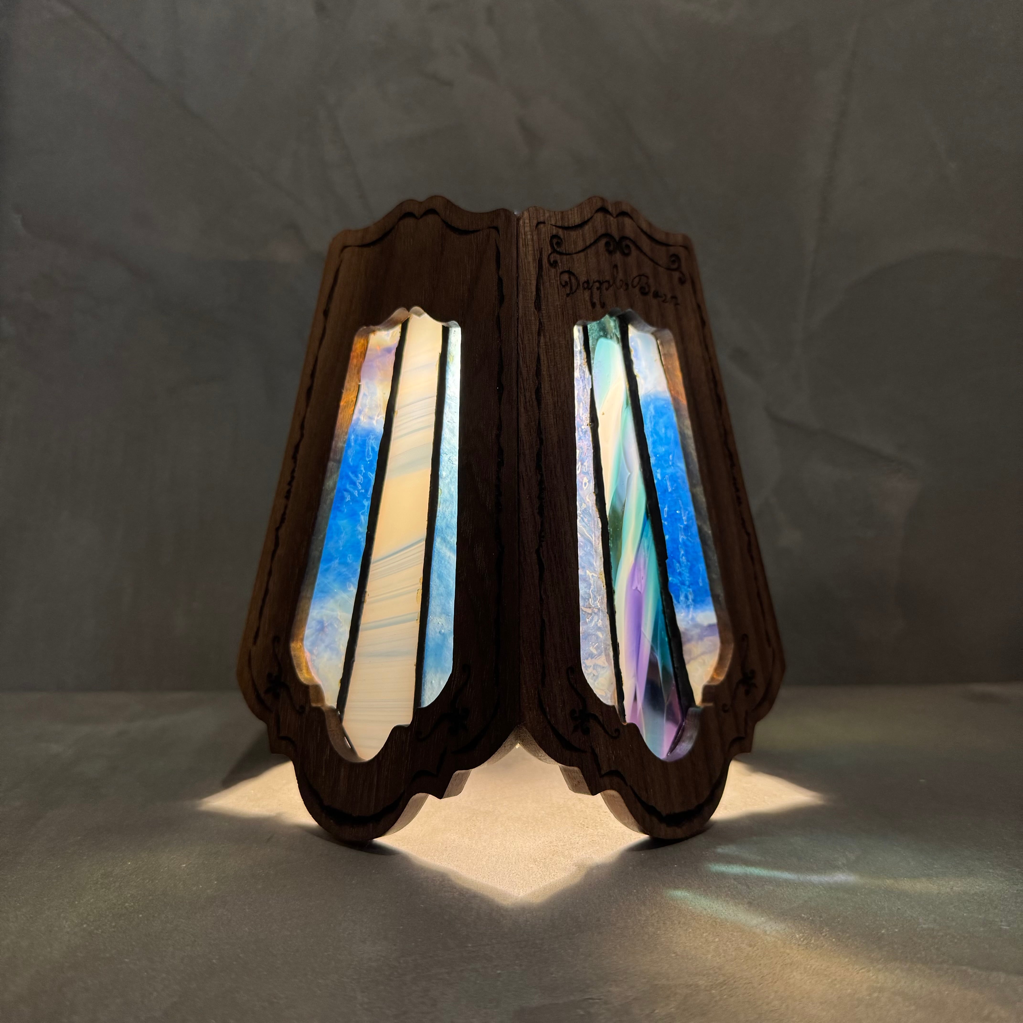無垢材ウォールナットとステンドグラスを融合させ両方の美しさを最大限に活かした高級感漂う Bornオリジナルゴールゼロ用ランプシェード(2WAY:吊る・置き型)