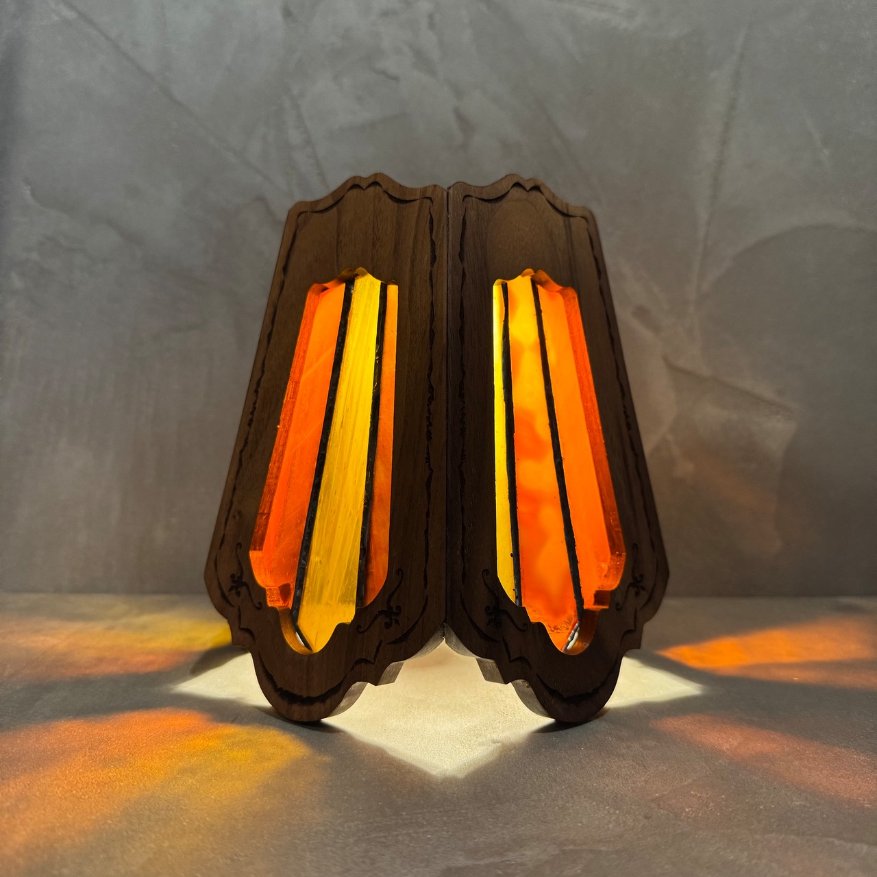 無垢材ウォールナットとステンドグラスを融合させ両方の美しさを最大限に活かした高級感漂う Bornオリジナルゴールゼロ用ランプシェード(2WAY:吊る・置き型)