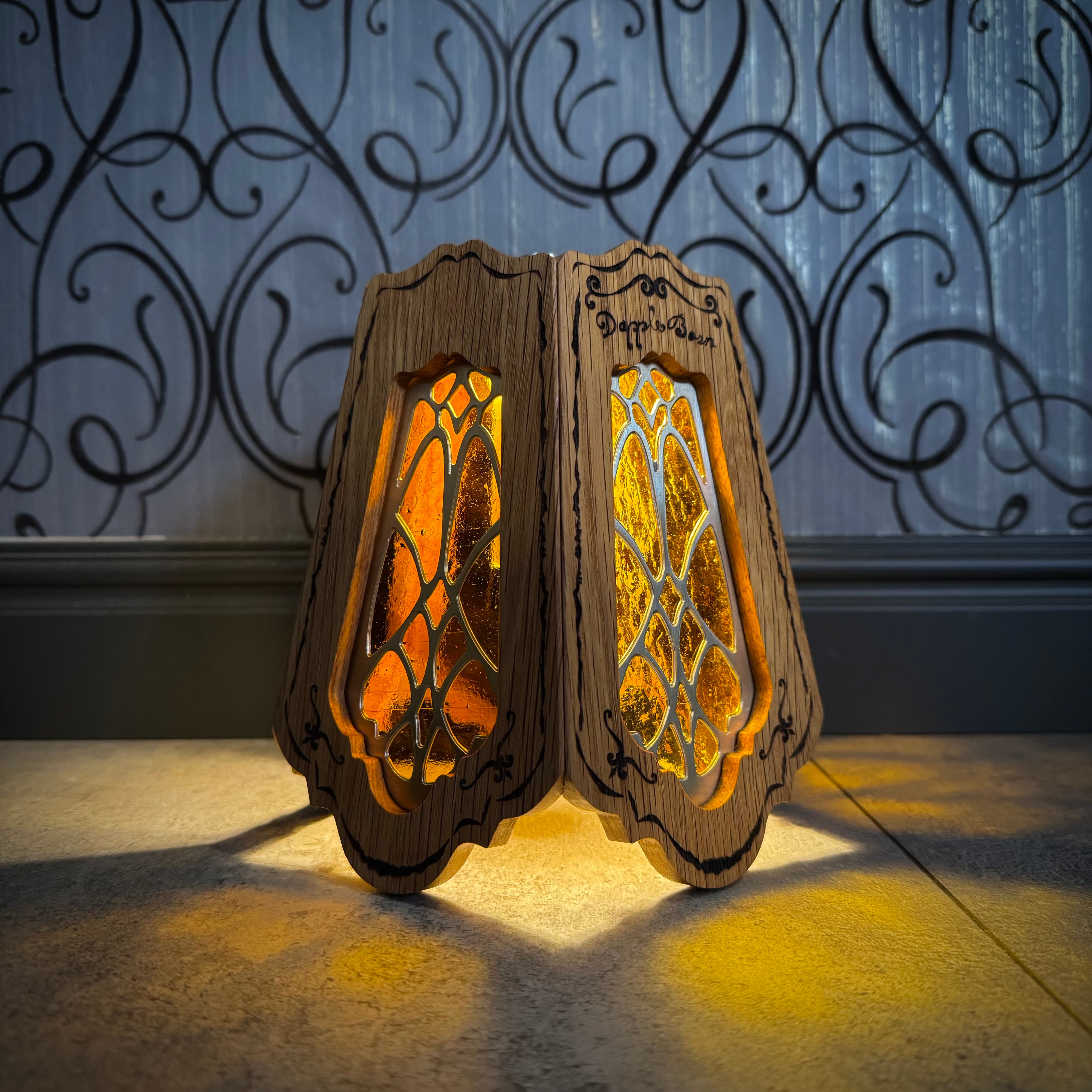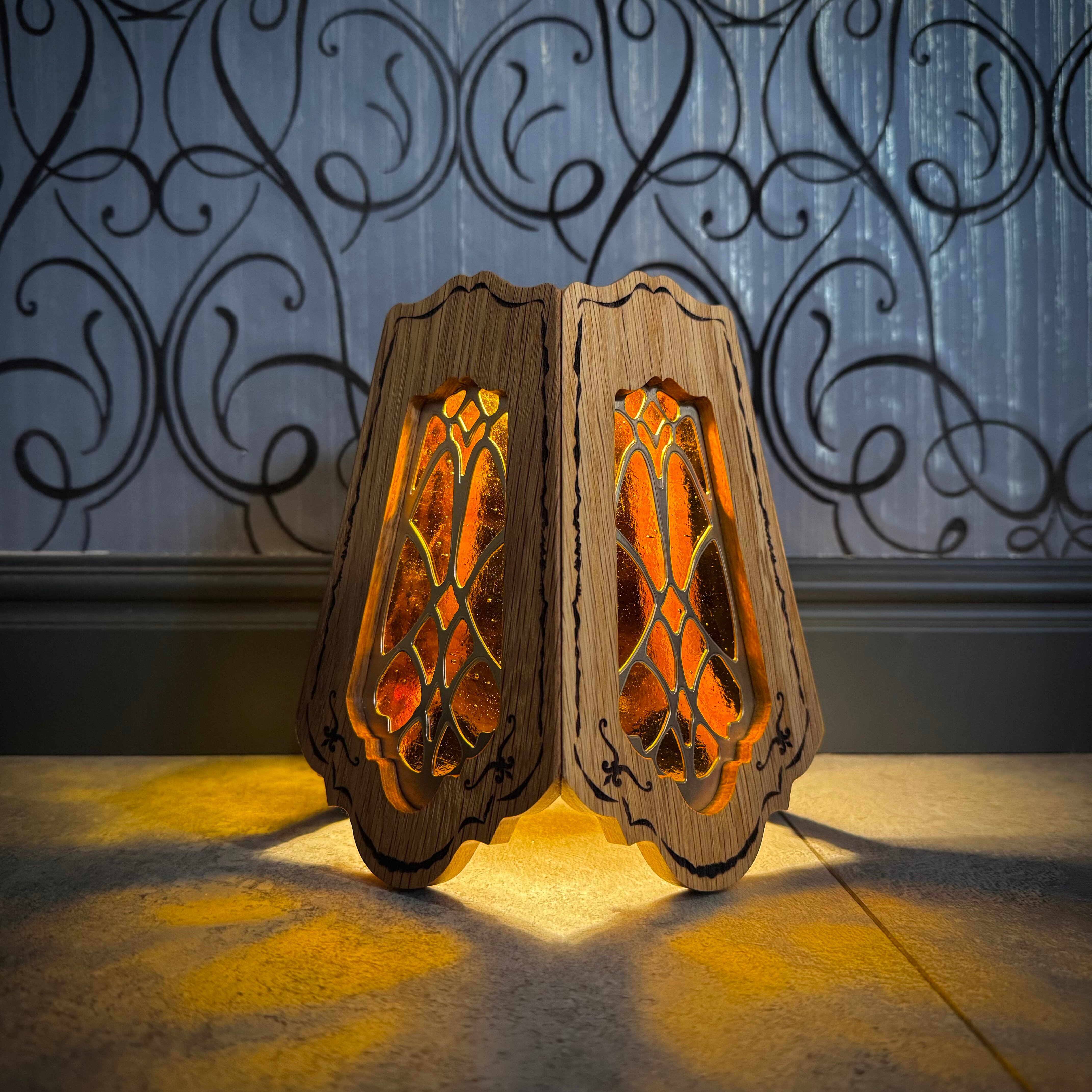 無垢材オークとステンドグラスを融合させ両方の美しさを最大限に活かした高級感漂う Bornオリジナルゴールゼロ用ランプシェード(2WAY:吊る・置き型)