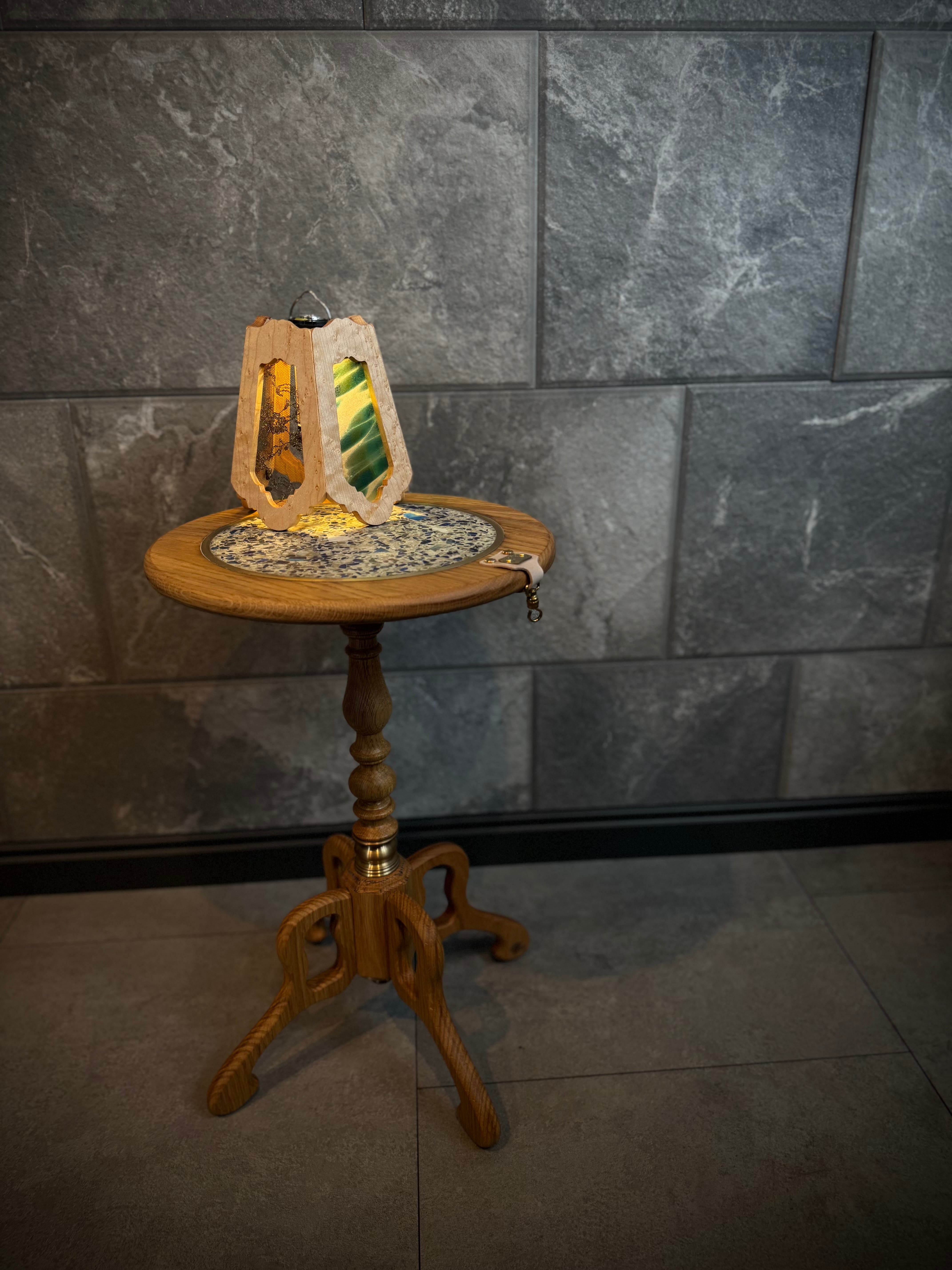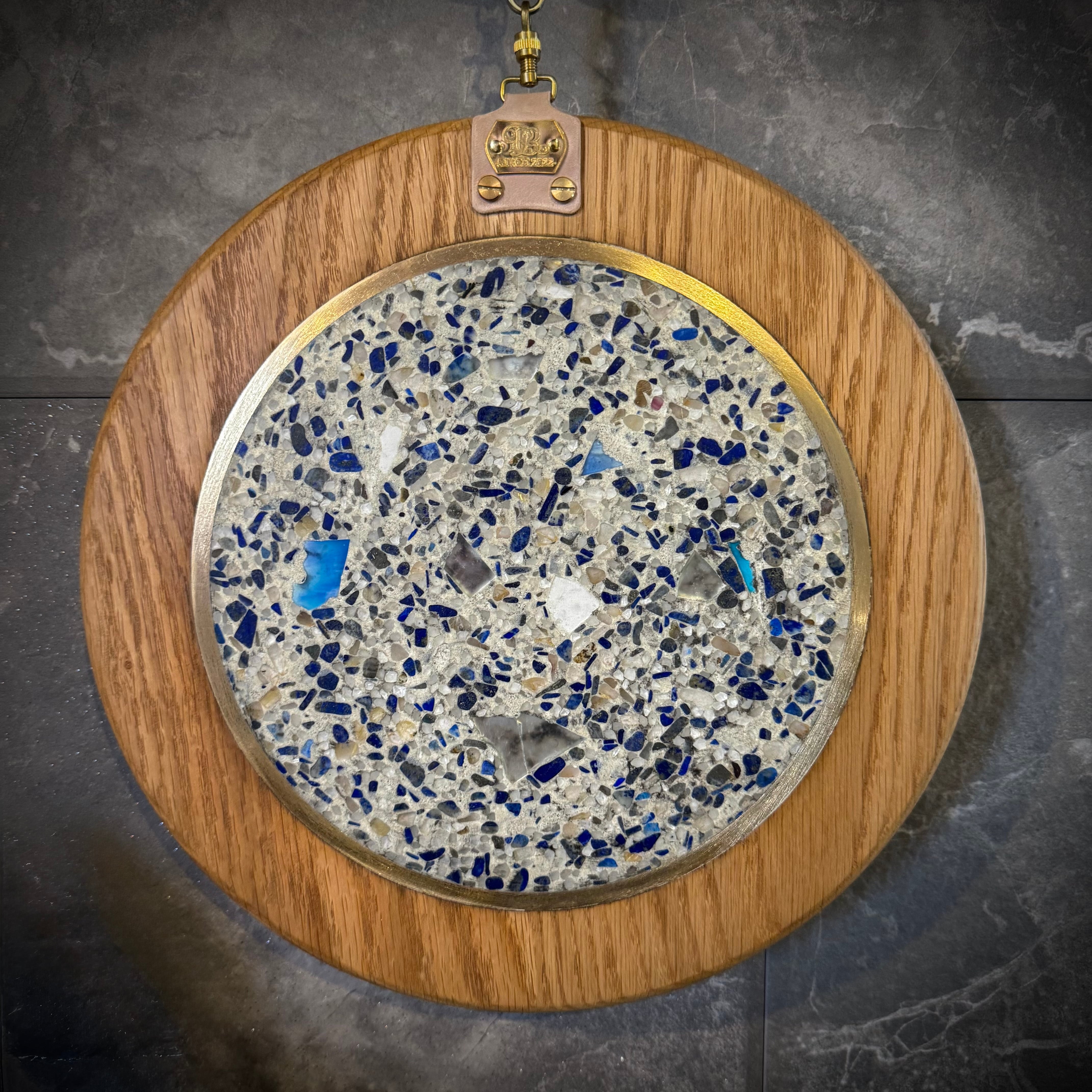 ホワイトオーク無垢材/真鍮/ラピスラズリ/蓄光石ブルー/ステンドガラスブルー/シルバーミラー/イタリアンレザー