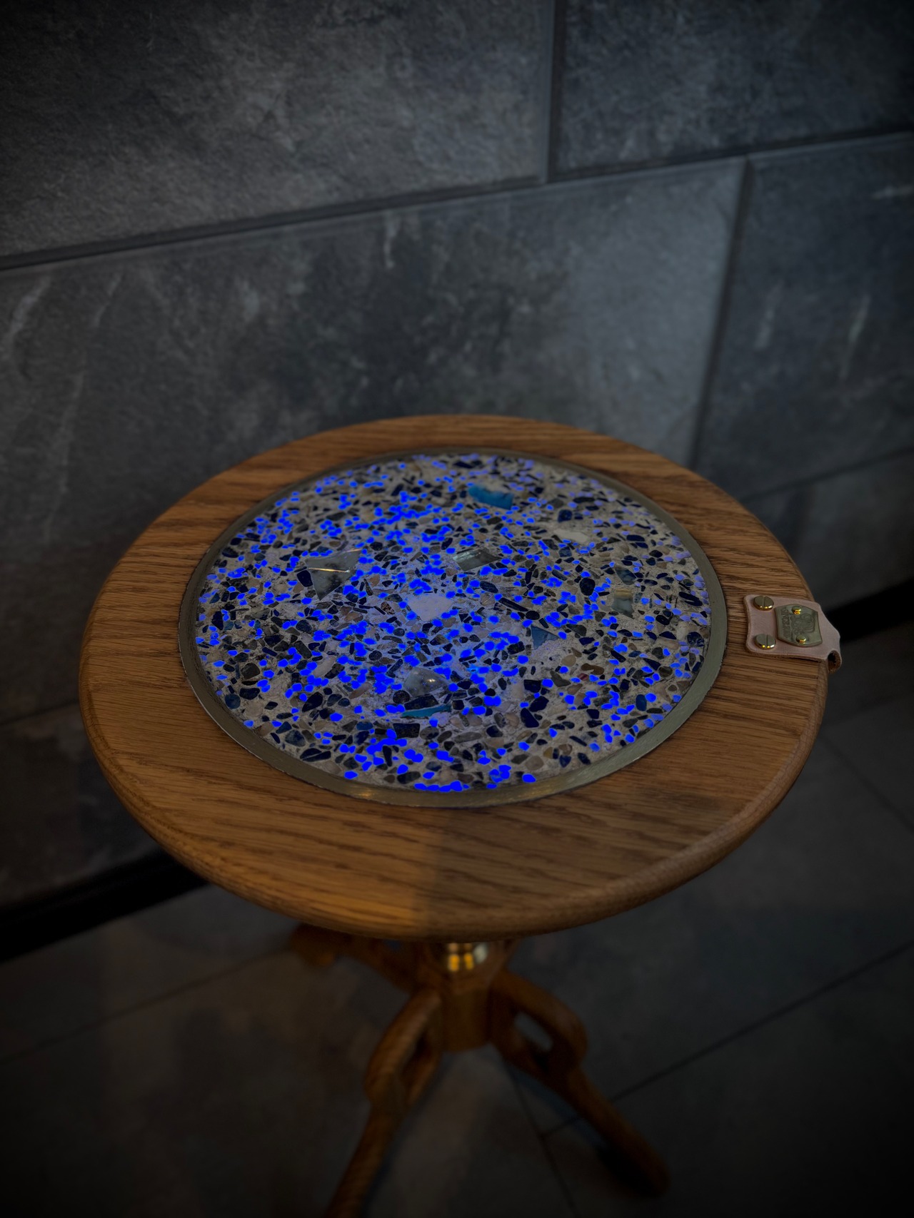 ひとつの天板で、昼と夜、まったく異なる表情を魅せます。※LEDの光でも蓄光しますが、少し弱く時間も短いです。