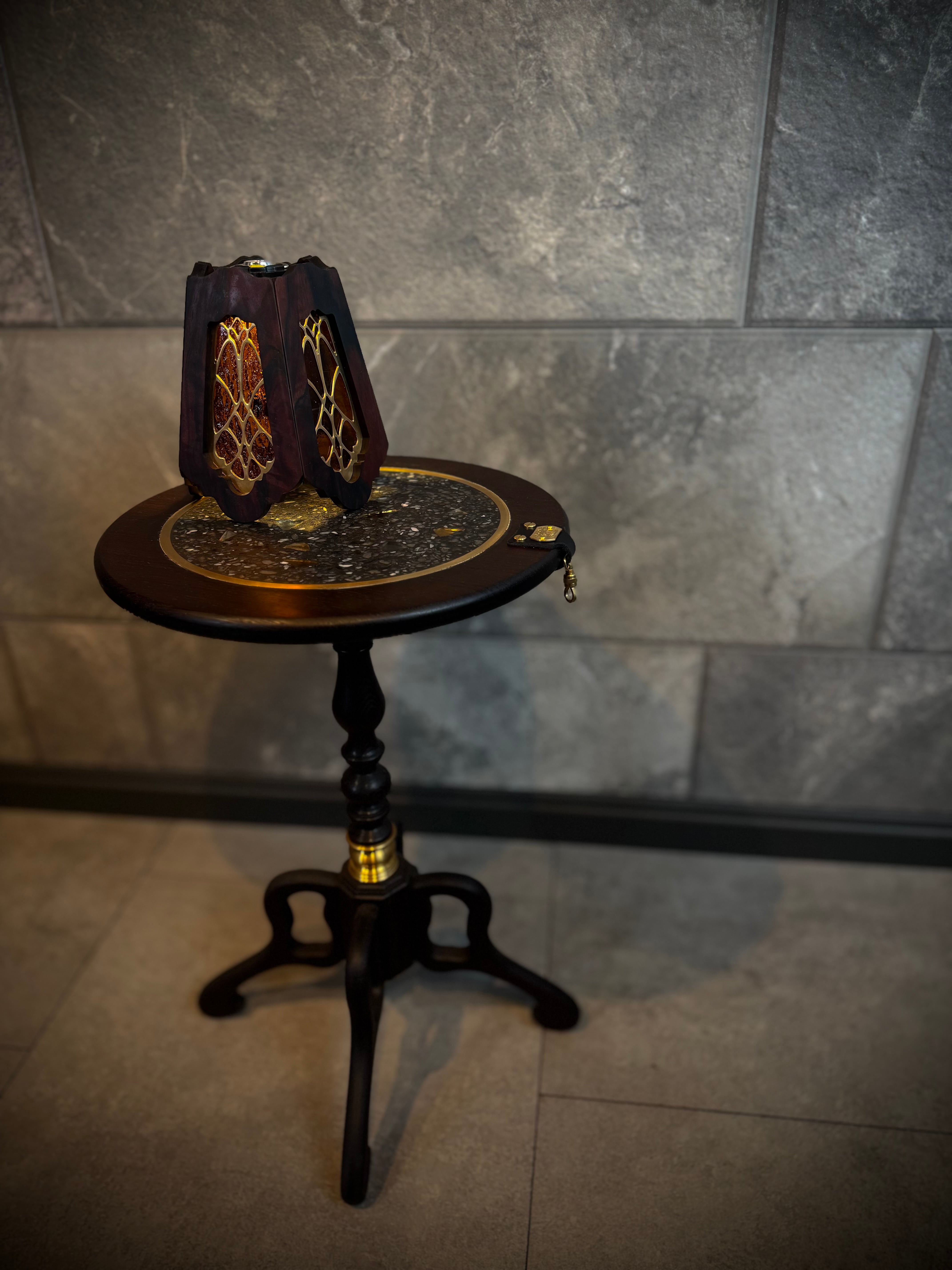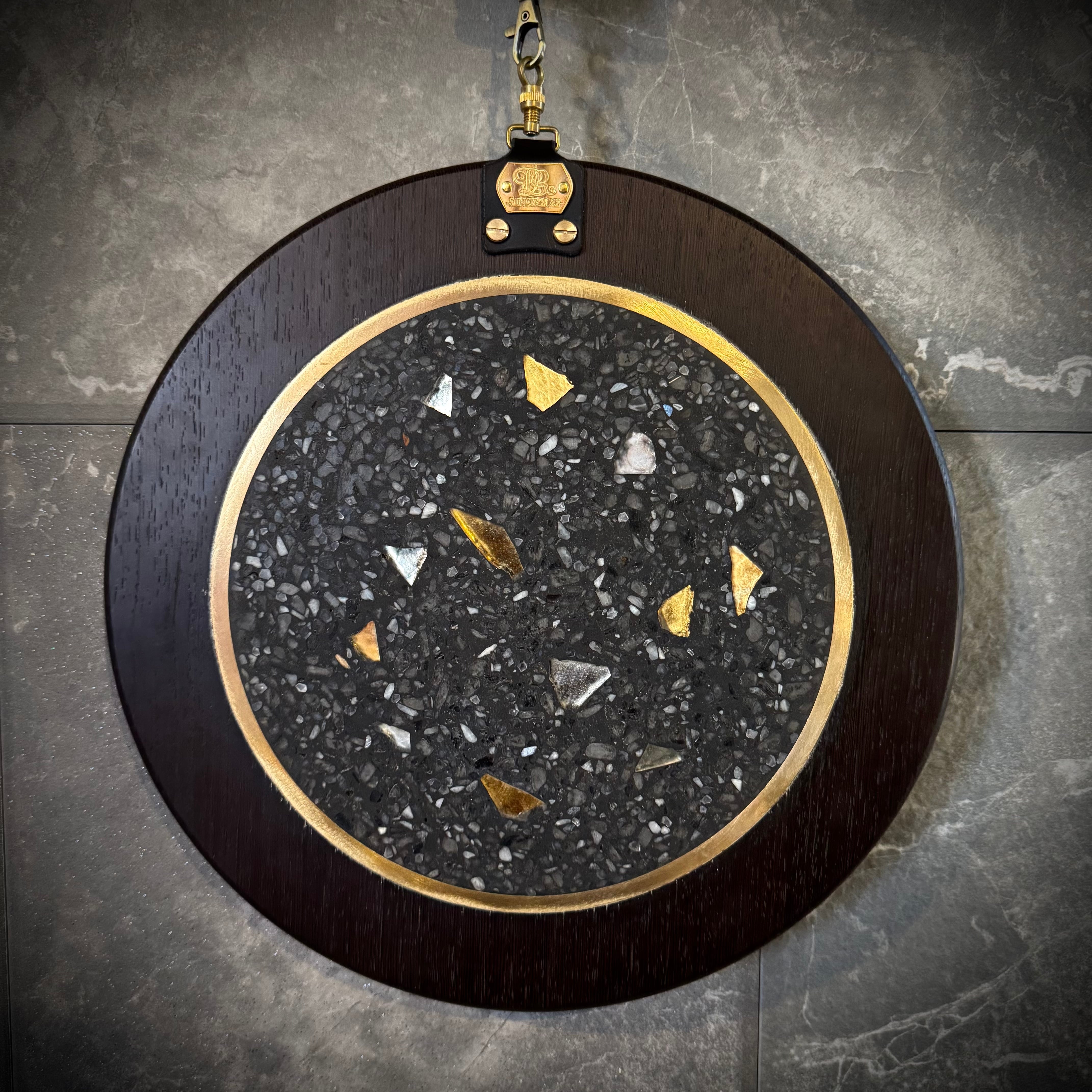 ウェンジ無垢材/真鍮/ブラック水晶•ゴールド水晶/蓄光石ブルー/シルバーミラー&ゴールドミラー/イタリアンレザー