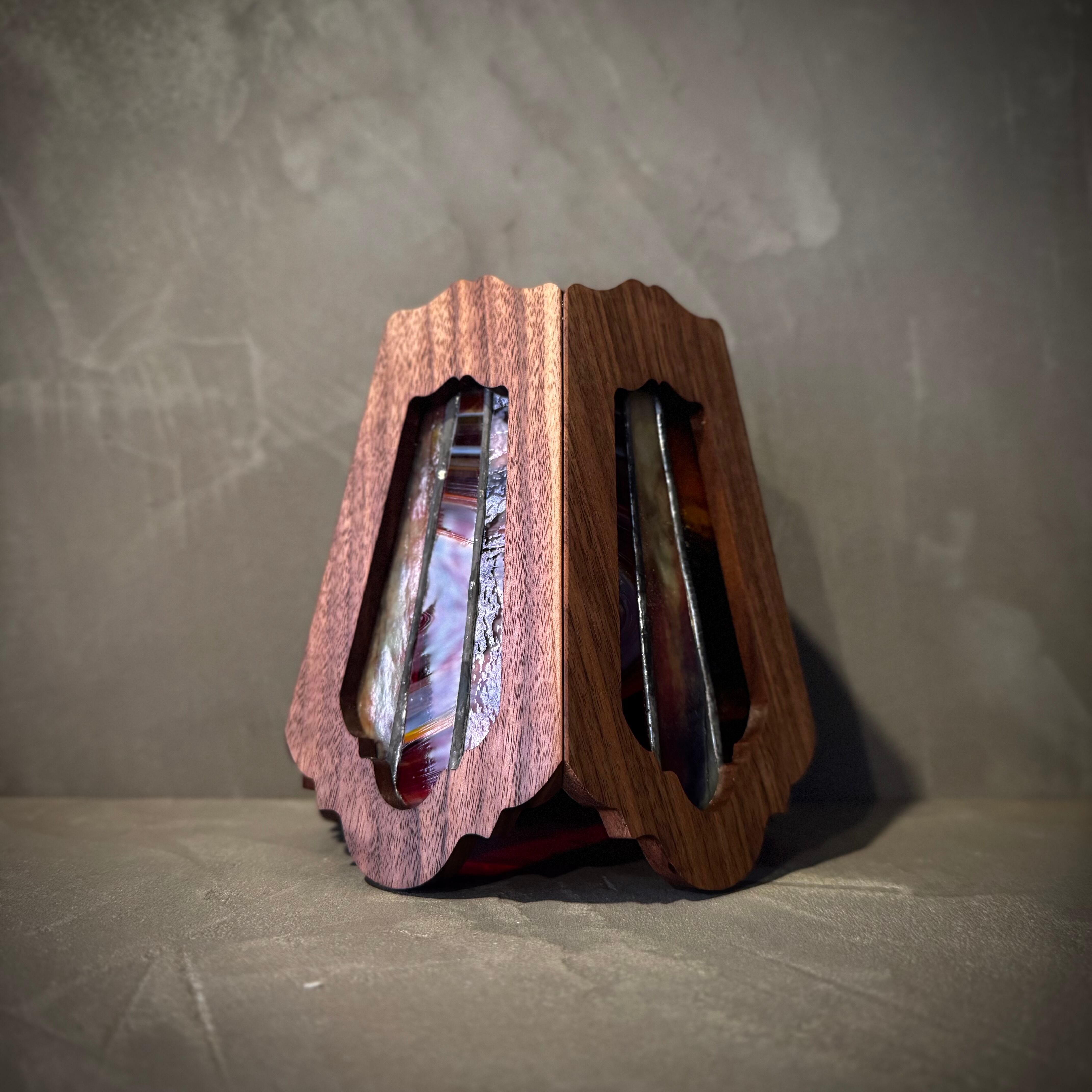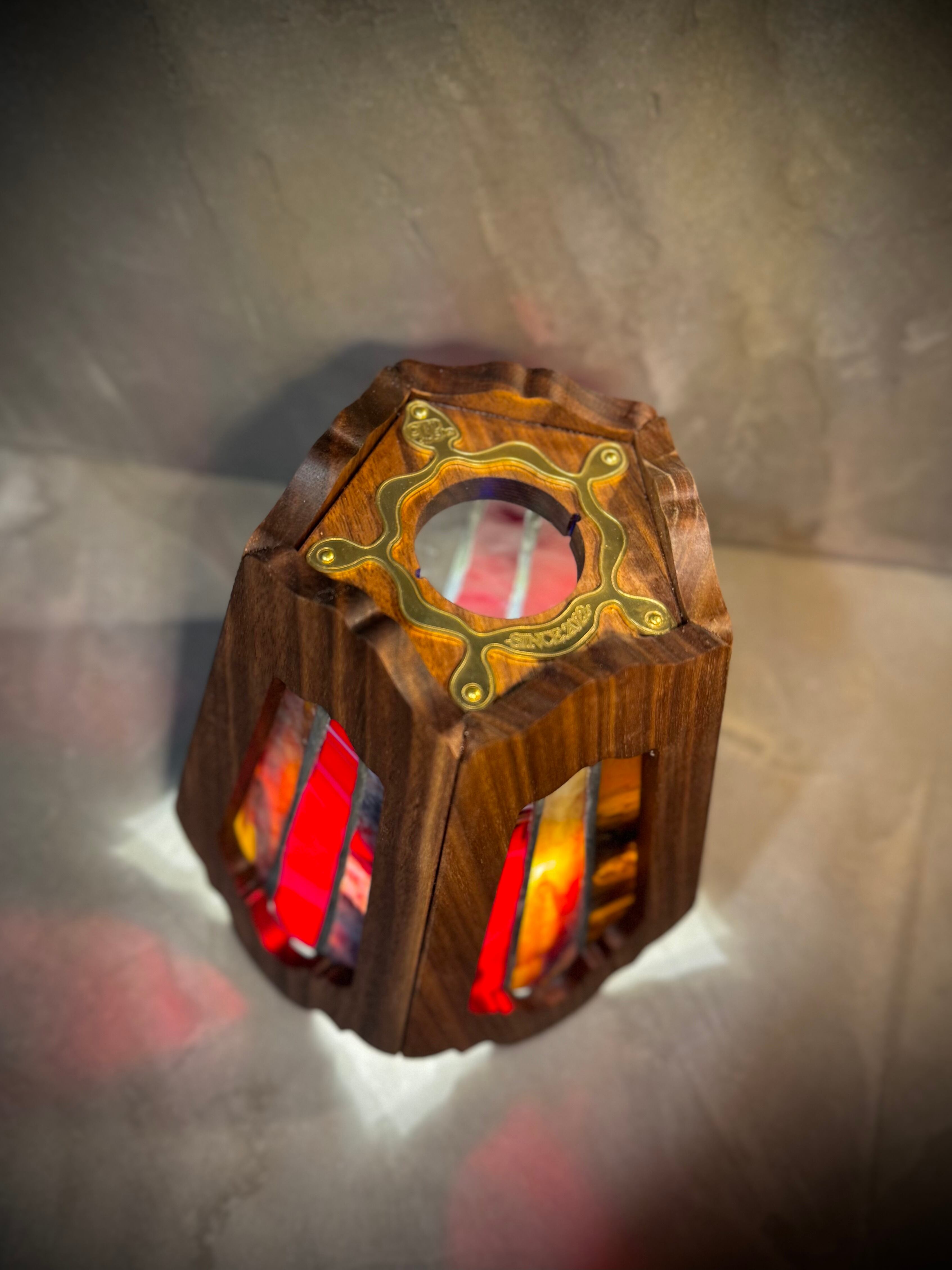 無垢材ウォールナットとステンドグラスを融合させ両方の美しさを最大限に活かした高級感漂う Bornオリジナルゴールゼロ用ランプシェード(2WAY:吊る・置き型)