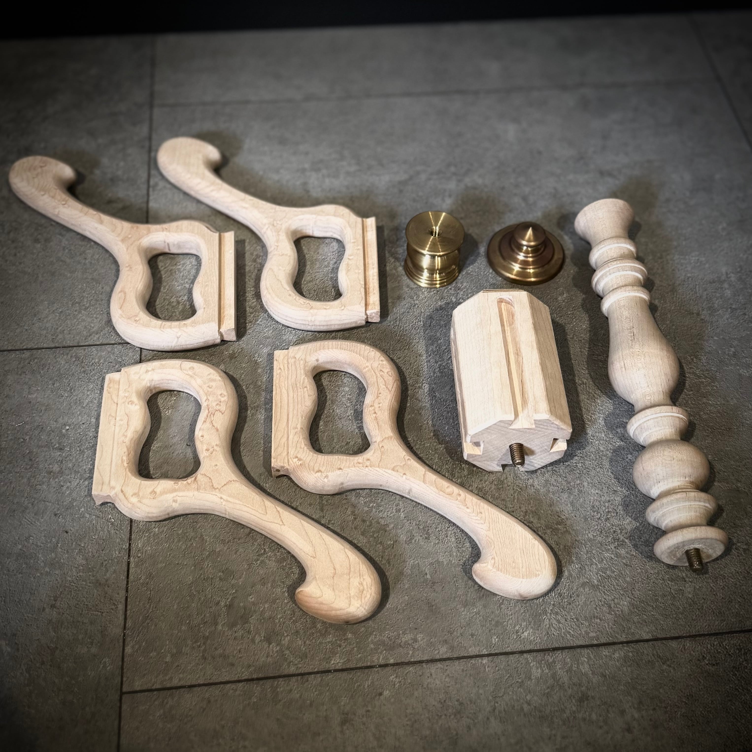 足はRでデザインし、中を抜く事で、スッキリとしたバランスに仕上げました。贅沢に直径55の 真鍮を削り出しで装飾且つ、重心を下にし安定感も重視しました。