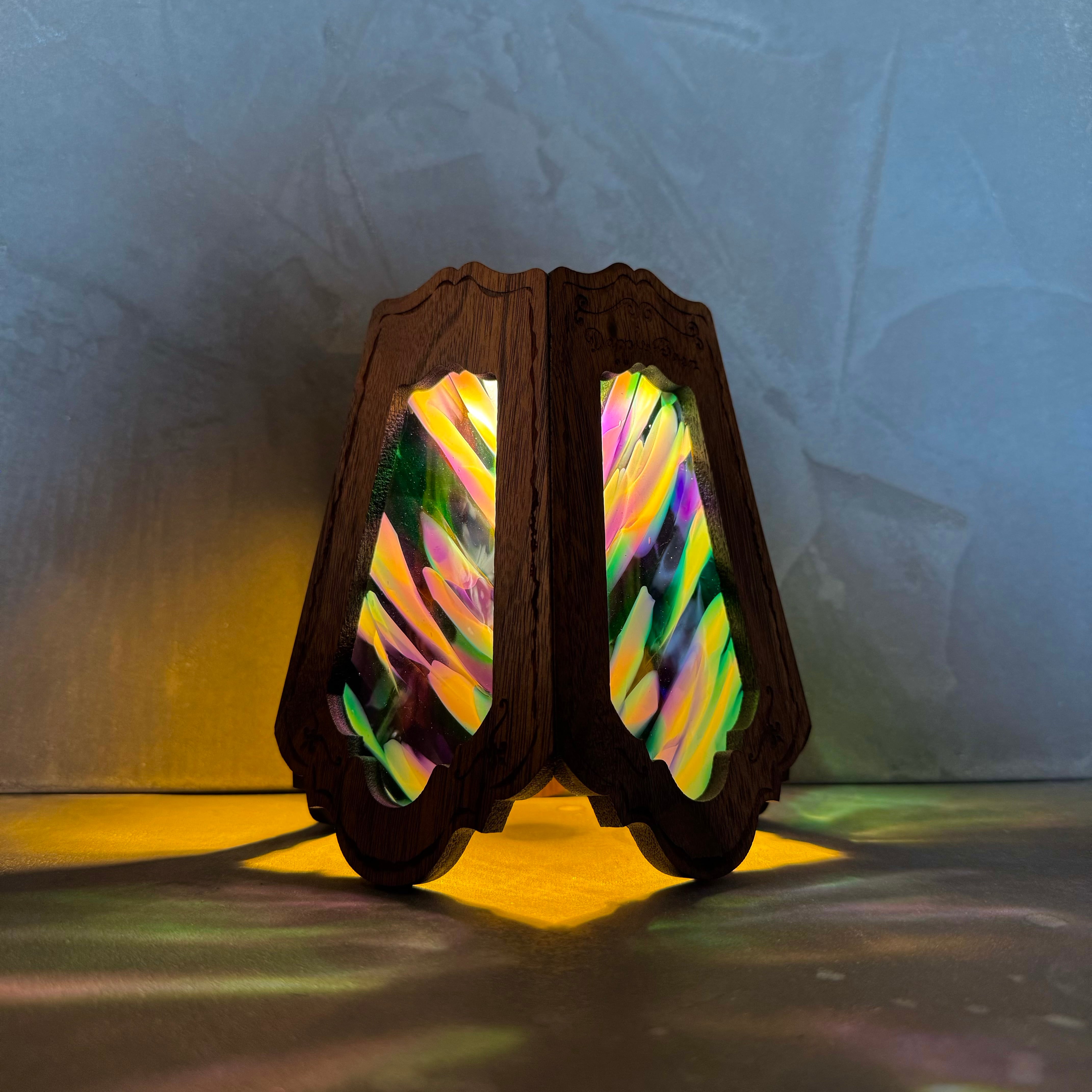 無垢材ウォールナットとステンドグラスを融合させ両方の美しさを最大限に活かした高級感漂う Bornオリジナルゴールゼロ用ランプシェード(2WAY:吊る・置き型)