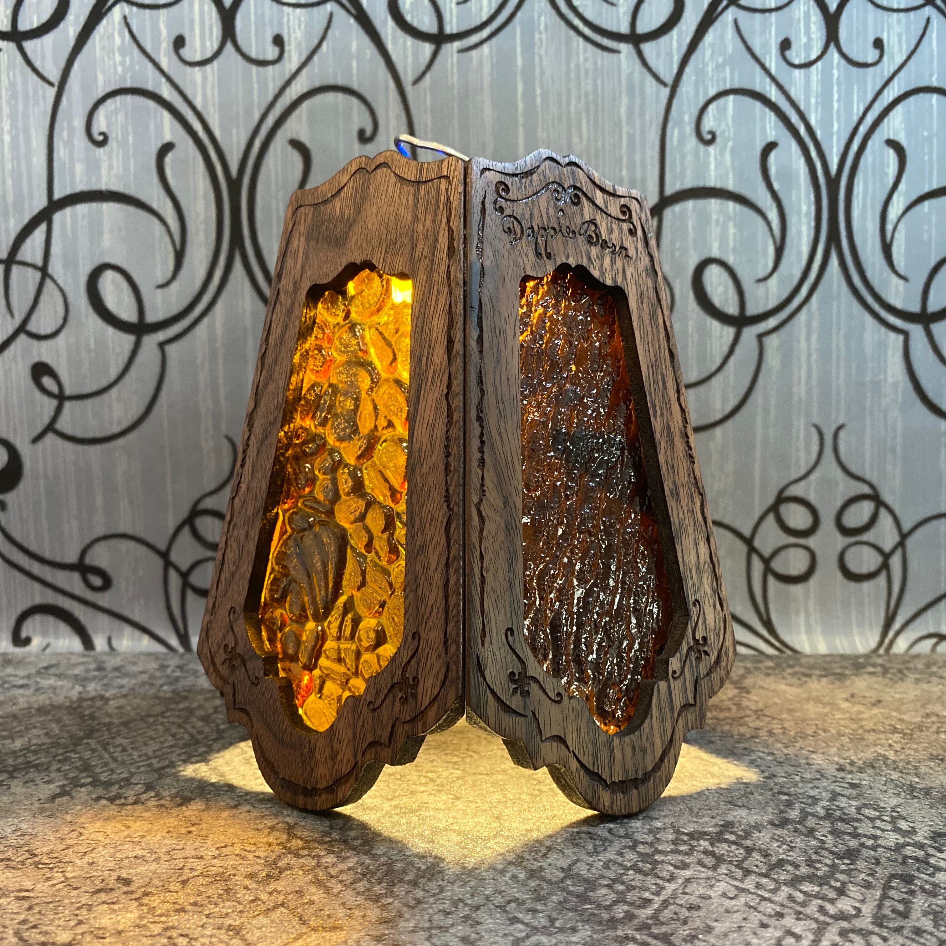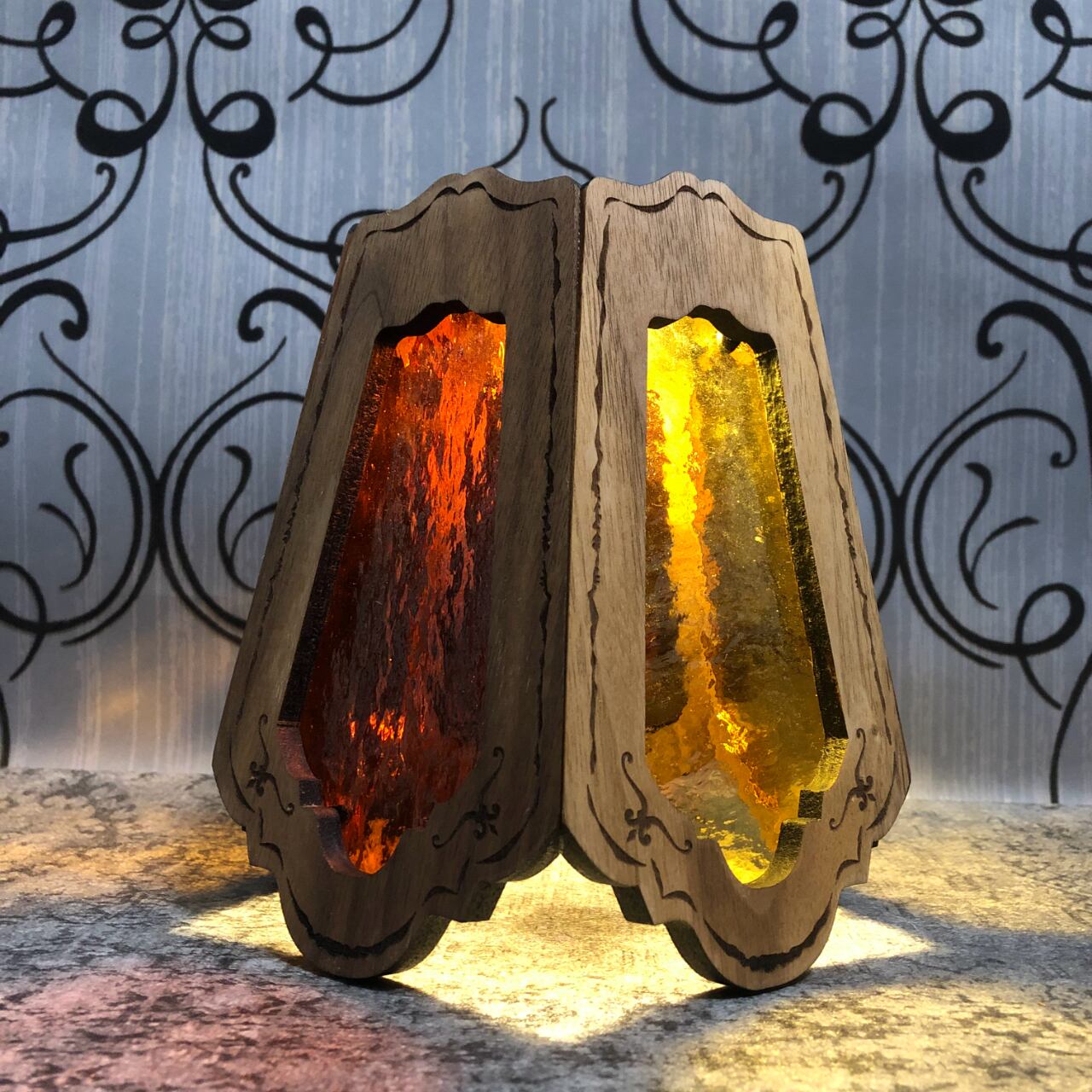 無垢材ウォールナットとステンドグラスを融合させ両方の美しさを最大限に活かした高級感漂う Bornオリジナルゴールゼロ用ランプシェード。(2WAY:吊る・置き型)
