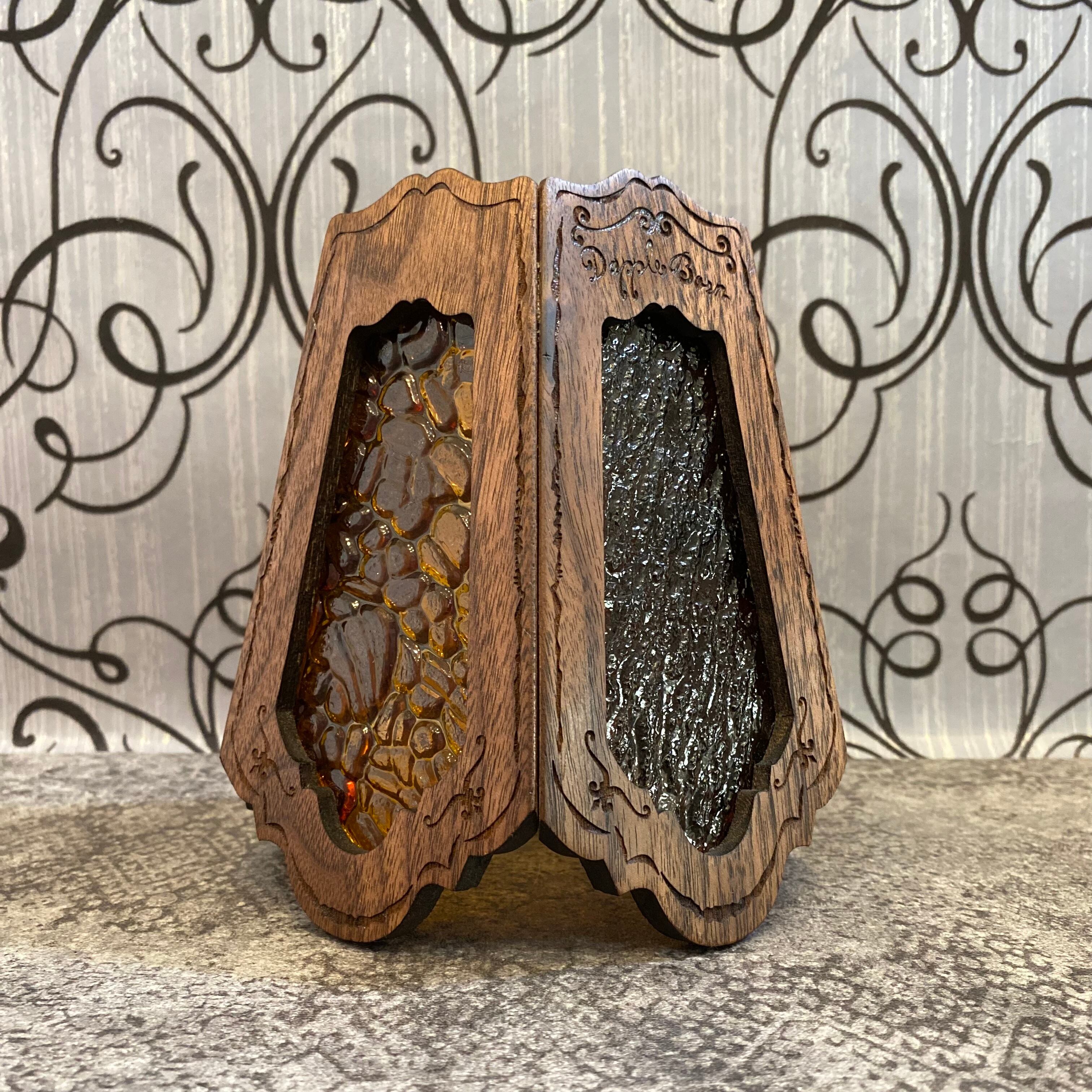 ダップルグラスシェード【ウォールナット】アンバーミックス【全面彫刻】