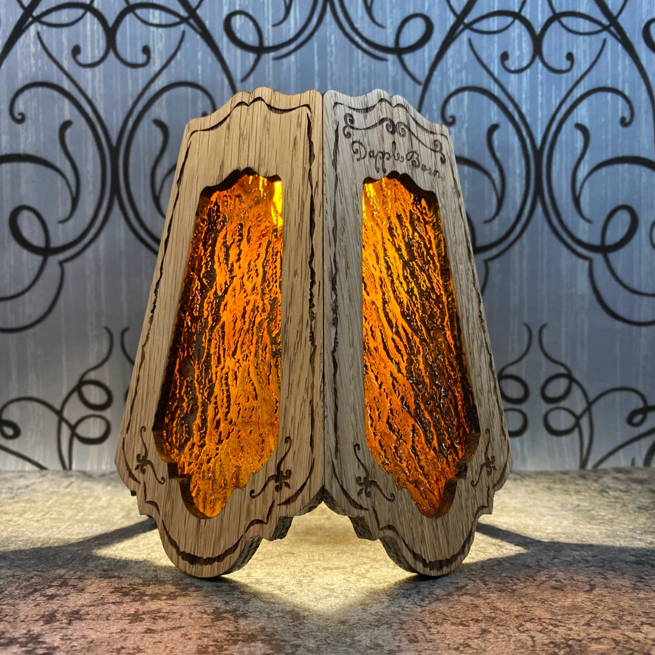 ダップルグラスシェード 【ホワイトオーク】ダークアンバー 【全面彫刻】