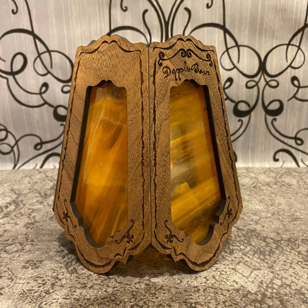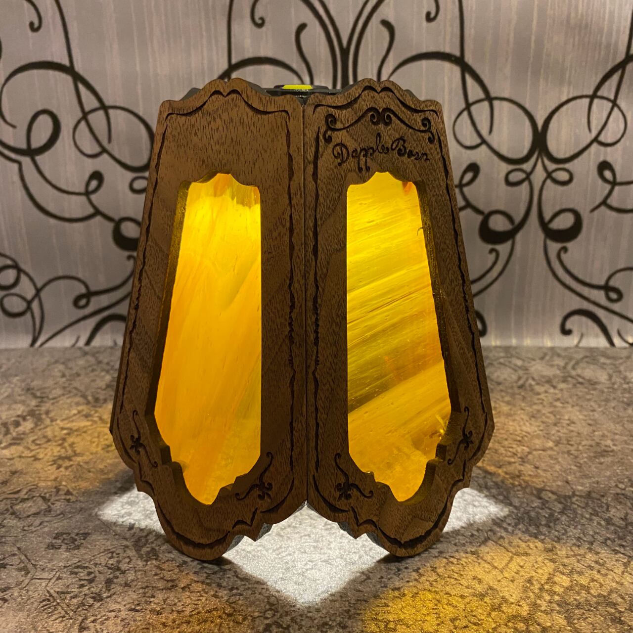 無垢材ウォールナットとステンドグラスを融合させ両方の美しさを最大限に活かした高級感漂う Bornオリジナルゴールゼロ用ランプシェード。(2WAY:吊る・置き型)
