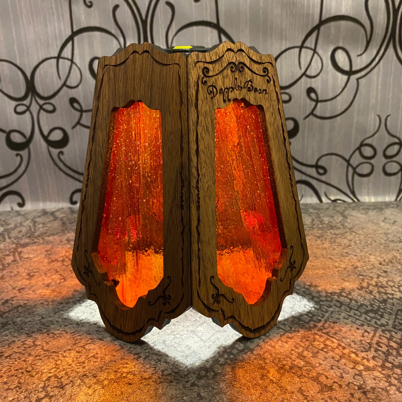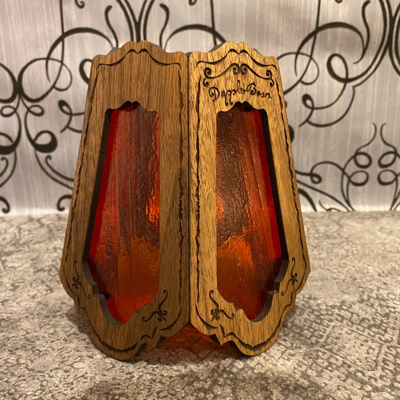ダップルグラスシェード【ウォールナット】クリアオレンジ【全面彫刻】
