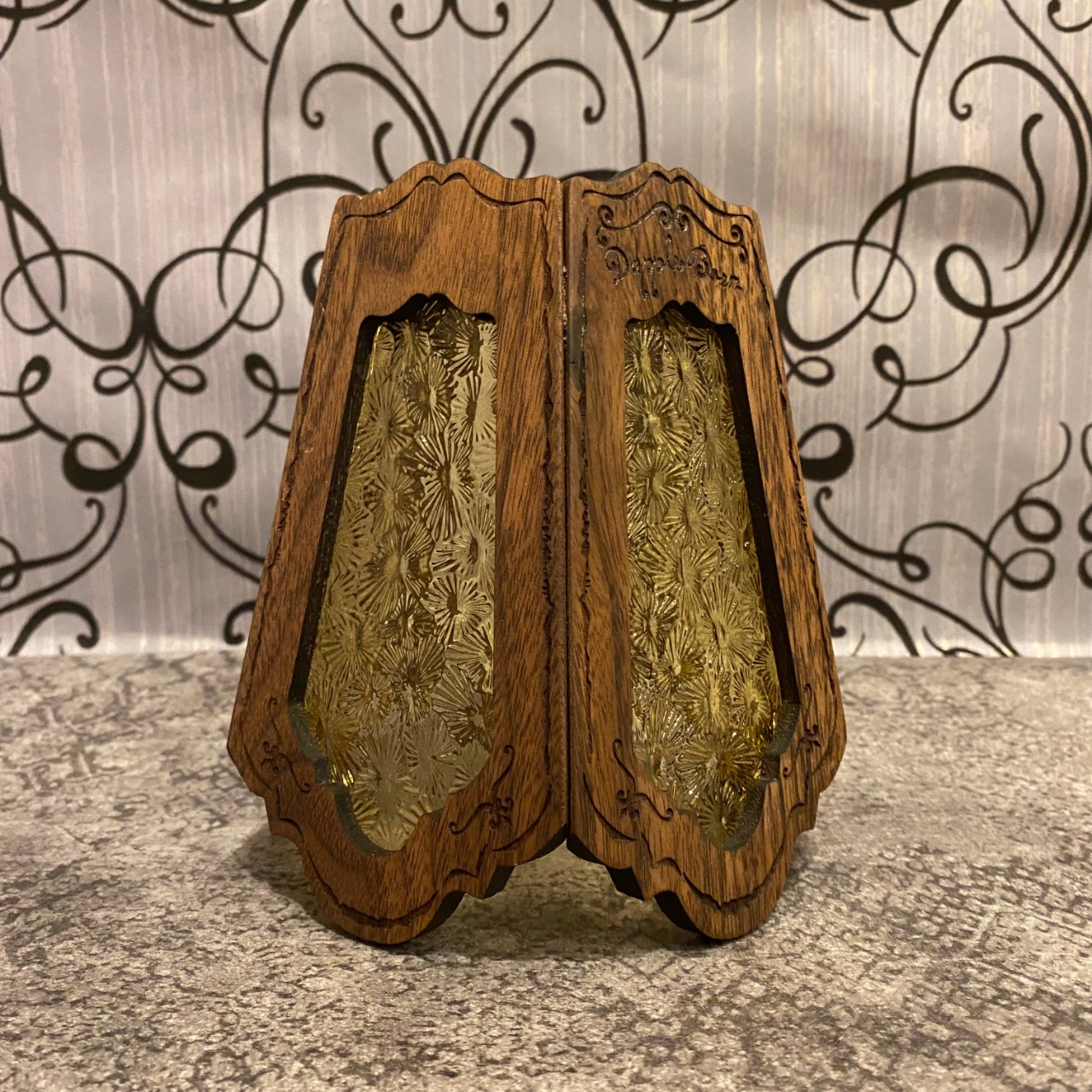 無垢材ウォールナットとステンドグラスを融合させ両方の美しさを最大限に活かした高級感漂う Bornオリジナルゴールゼロ用ランプシェード。(2WAY:吊る・置き型)