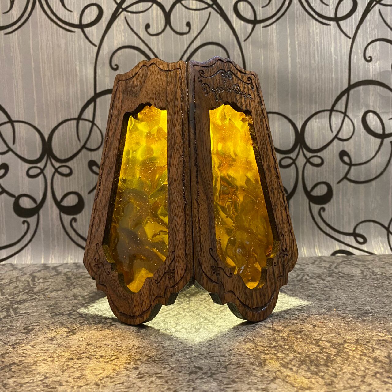 無垢材ウォールナットとステンドグラスを融合させ両方の美しさを最大限に活かした高級感漂う Bornオリジナルゴールゼロ用ランプシェード(2WAY:吊る・置き型)