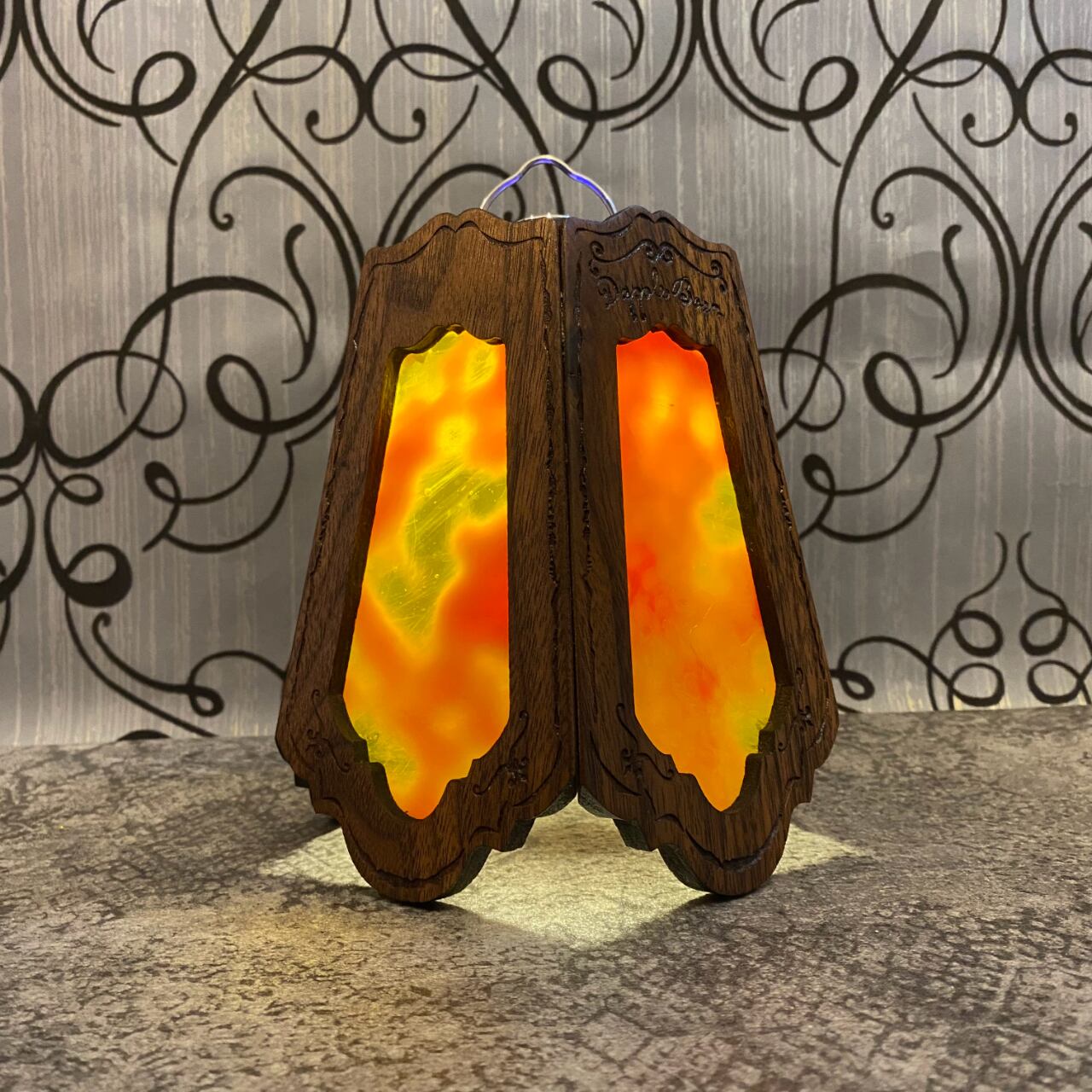 無垢材ウォールナットとステンドグラスを融合させ両方の美しさを最大限に活かした高級感漂う Bornオリジナルゴールゼロ用ランプシェード(2WAY:吊る・置き型)