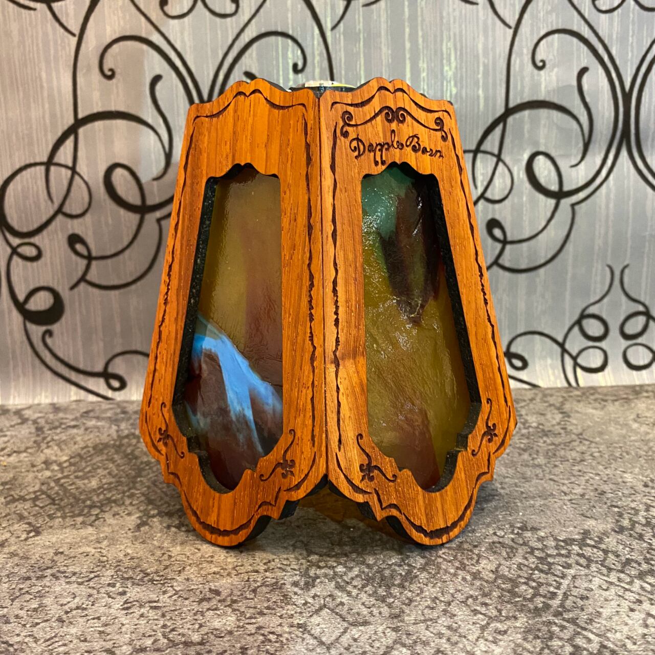 無垢材パドックとステンドグラスを融合させ両方の美しさを最大限に活かした高級感漂う Bornオリジナルゴールゼロ用ランプシェード(2WAY:吊る・置き型)