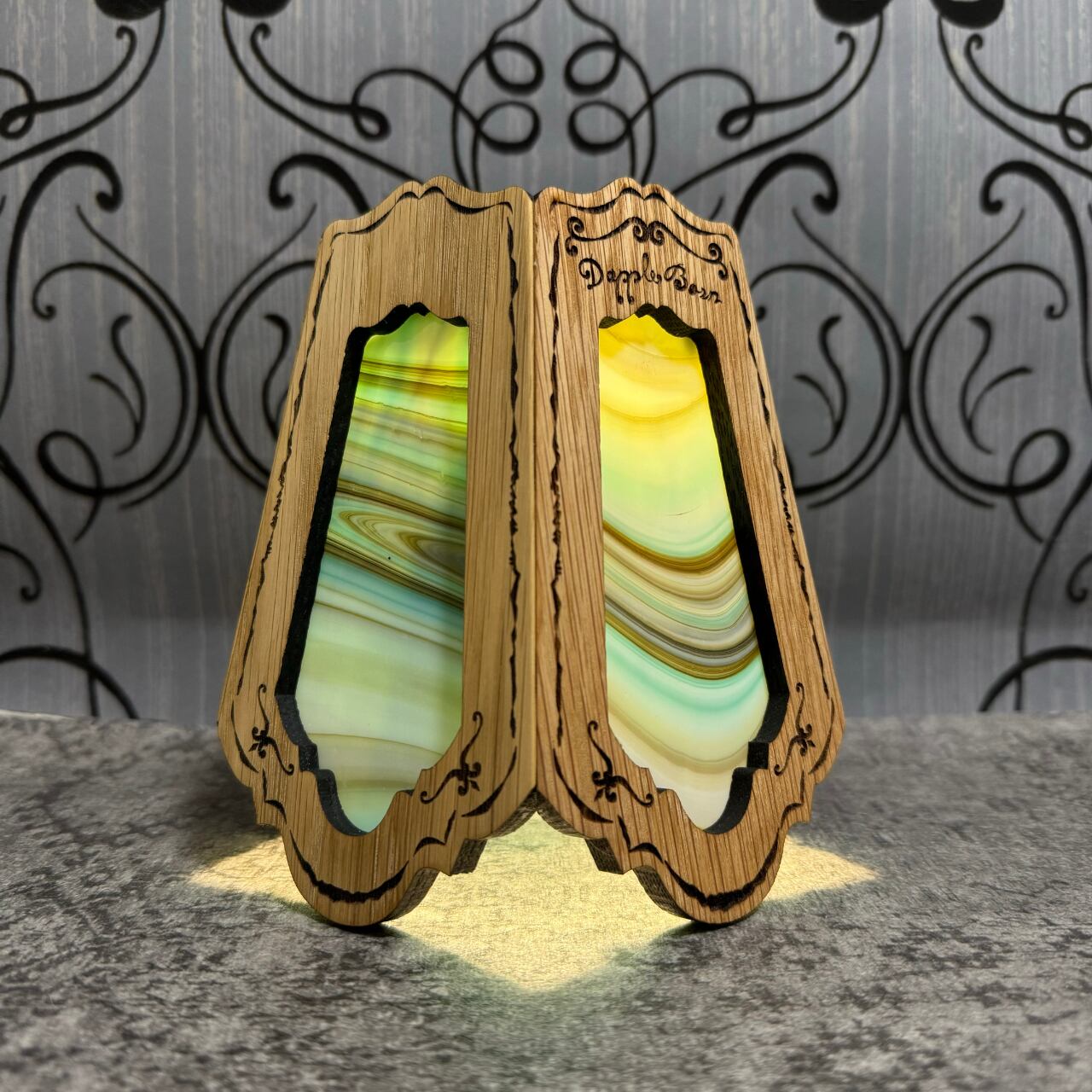 無垢材ホワイトオークとステンドグラスを融合させ両方の美しさを最大限に活かした高級感漂う Bornオリジナルランプシェード(2WAY:吊る・置き型)