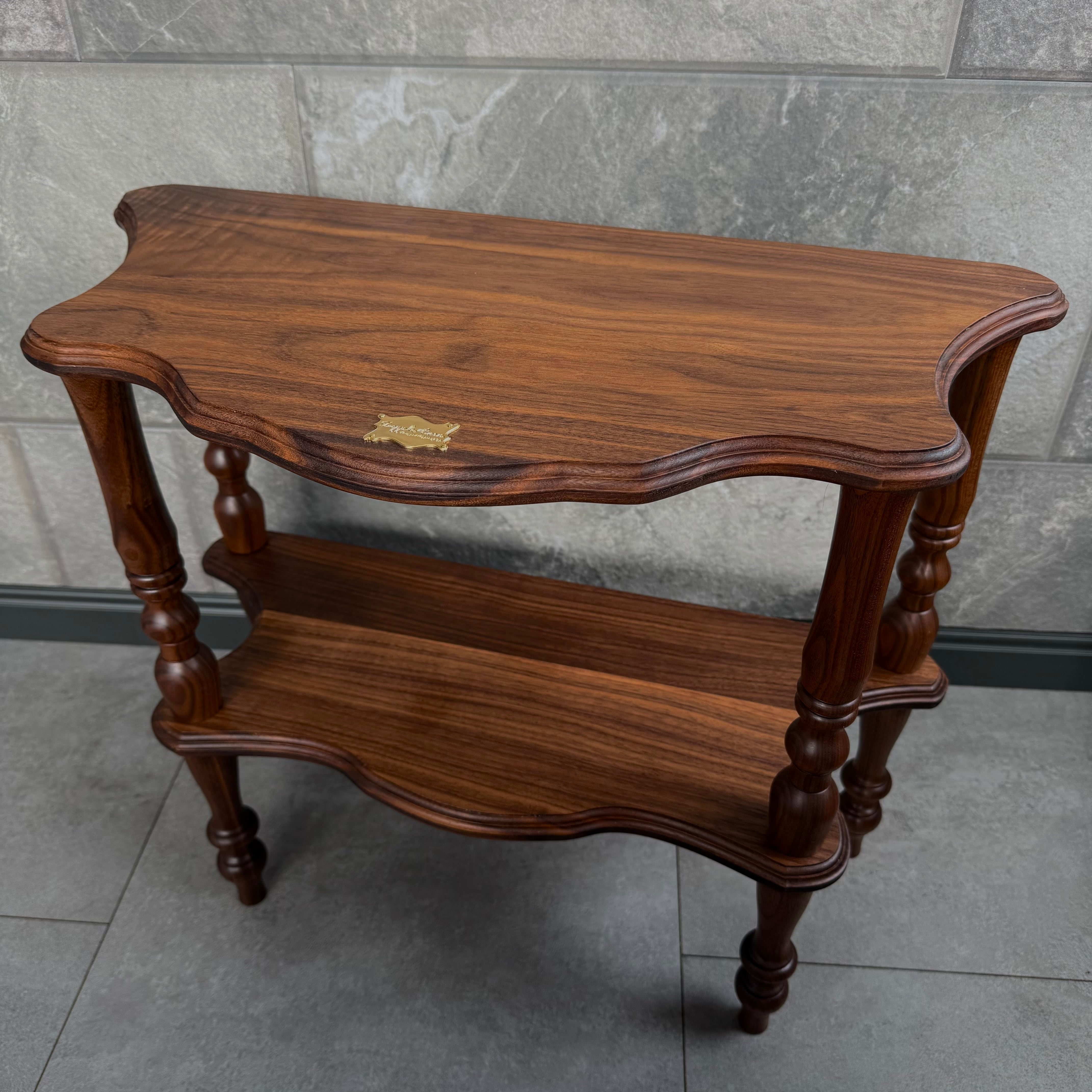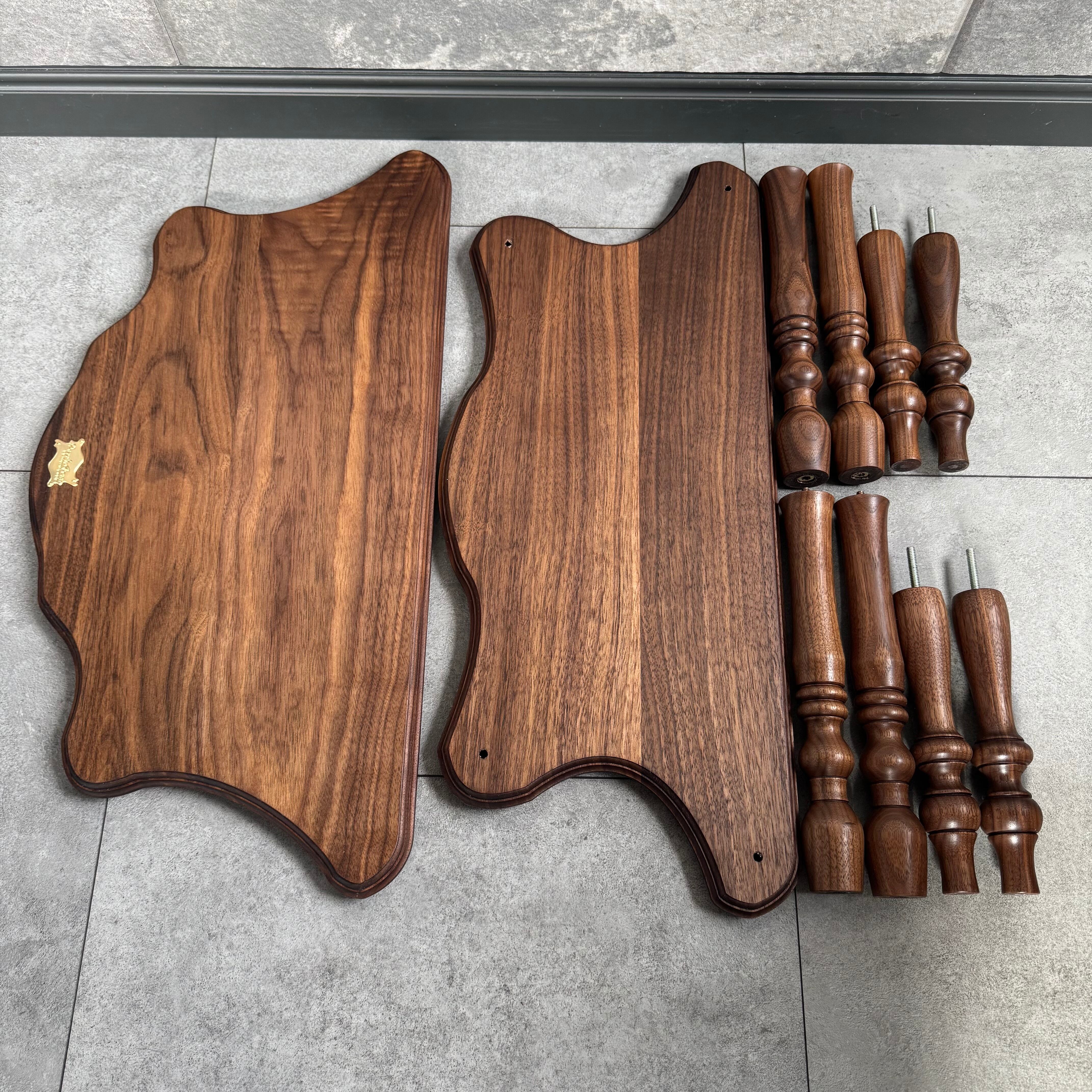 無垢材ウォールナットを全ての部分で使用し、美しく曲線に削り込み磨き上げた逸品。