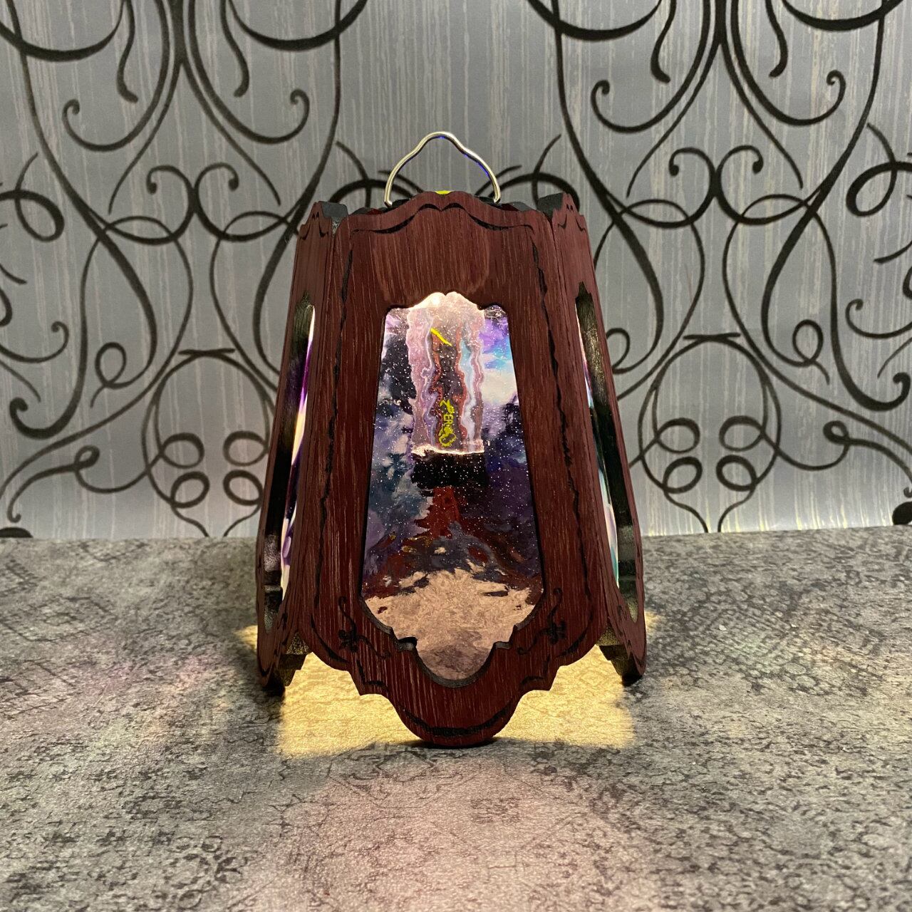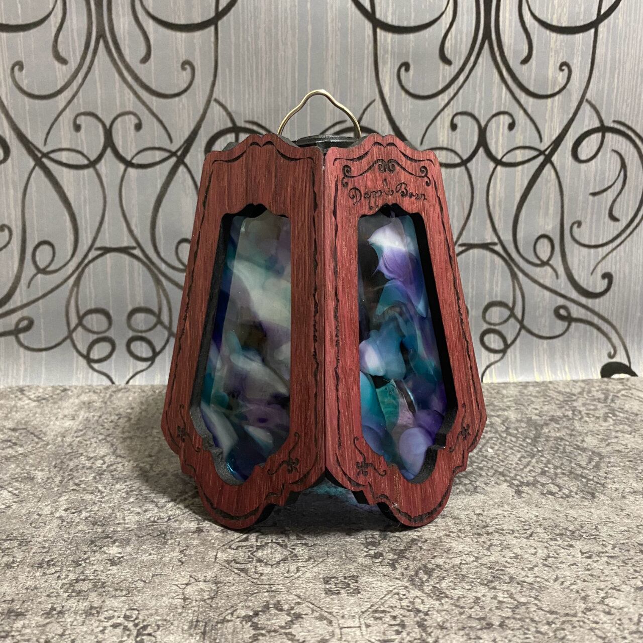 無垢材パープルハートとステンドグラスを融合させ両方の美しさを最大限に活かした高級感漂う Bornオリジナルゴールゼロ用ランプシェード(2WAY:吊る・置き型)