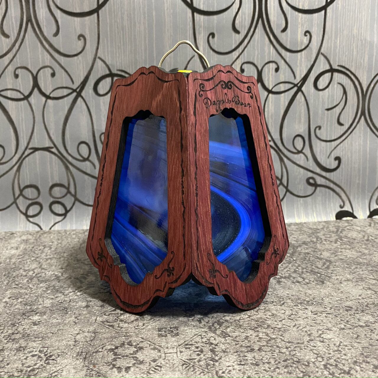 無垢材パープルハートとステンドグラスを融合させ両方の美しさを最大限に活かした高級感漂う Bornオリジナルゴールゼロ用ランプシェード(2WAY:吊る・置き型)