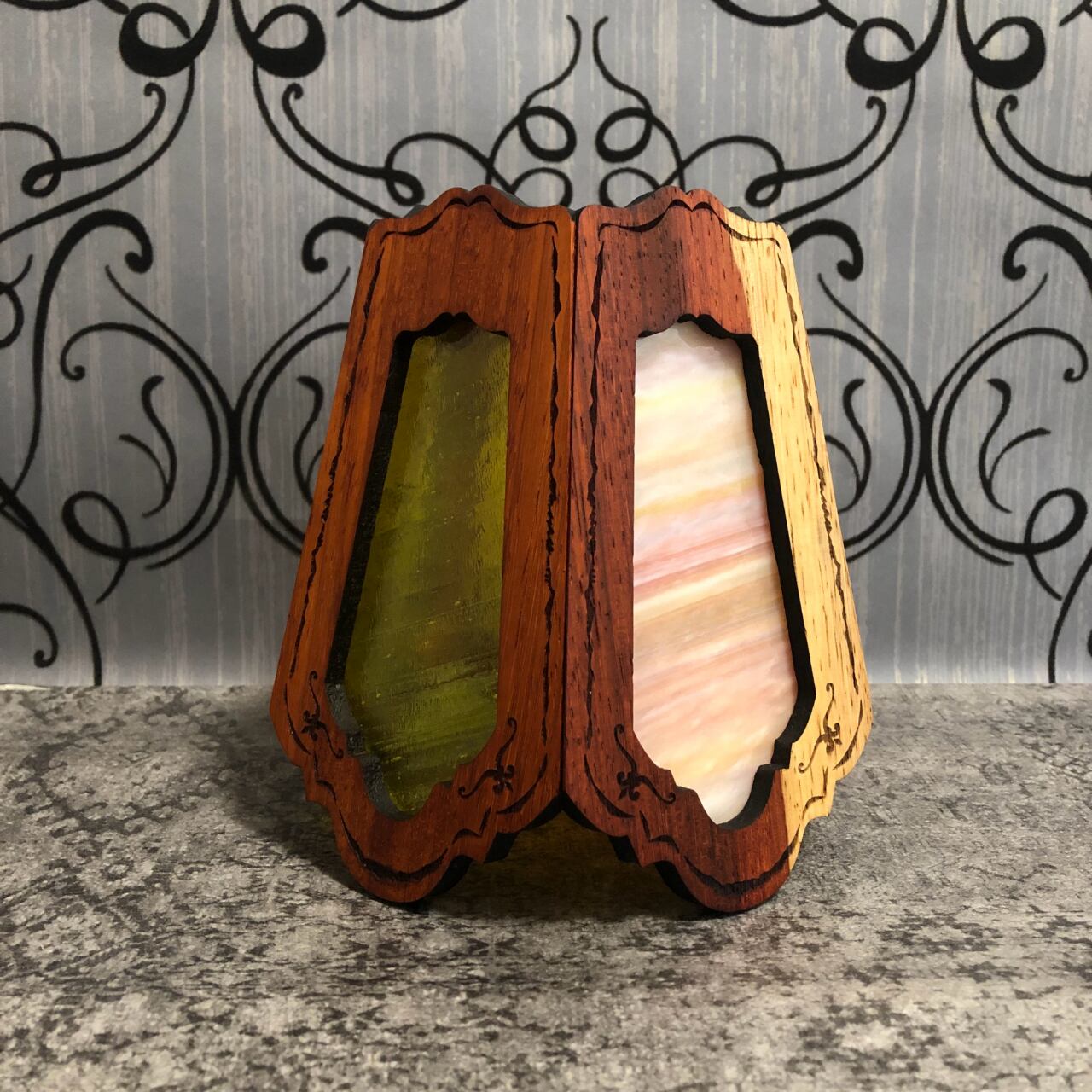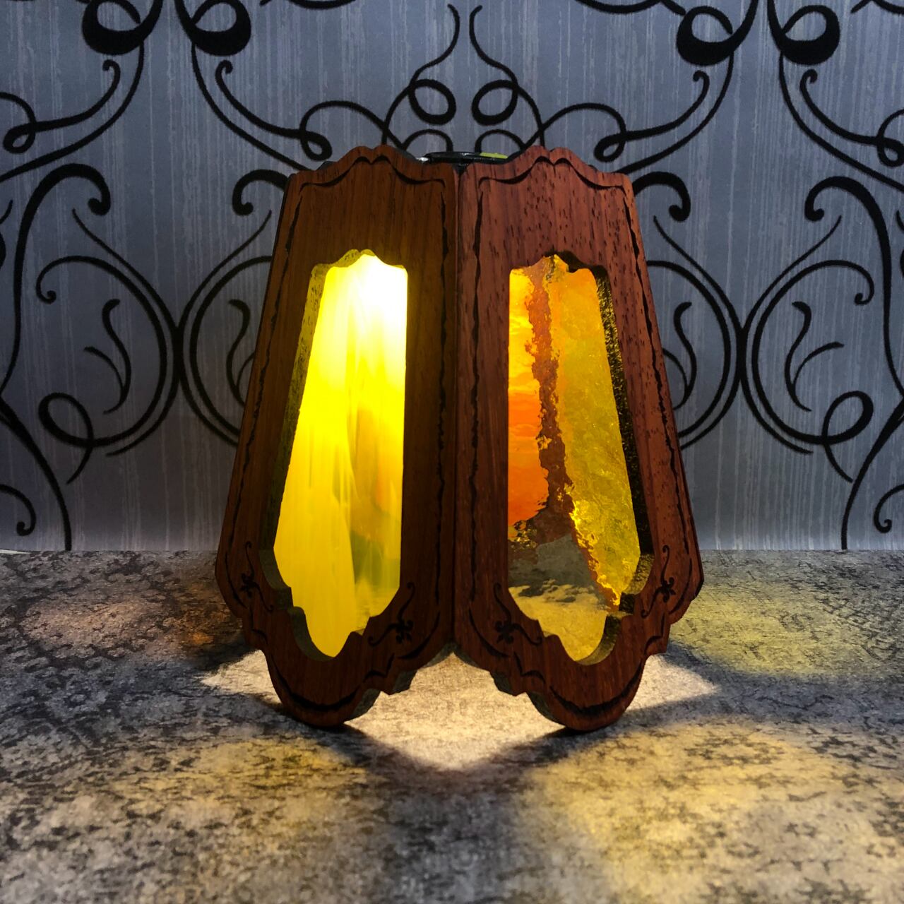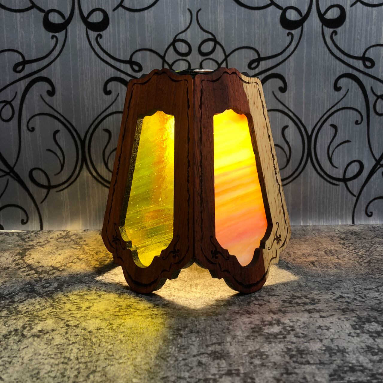 無垢材パドックとステンドグラスを融合させ両方の美しさを最大限に活かした高級感漂う Bornオリジナルランプシェード(2WAY:吊る・置き型)