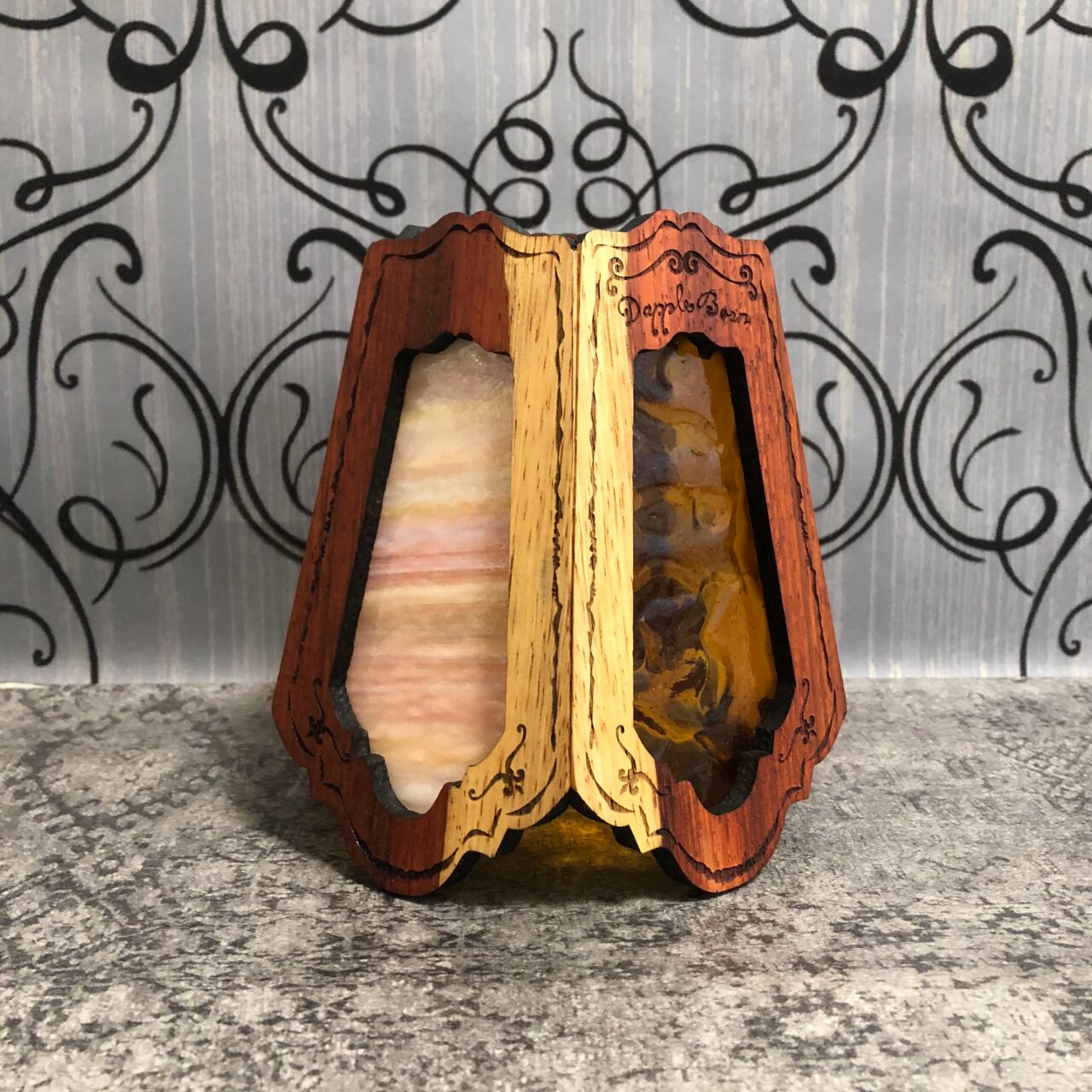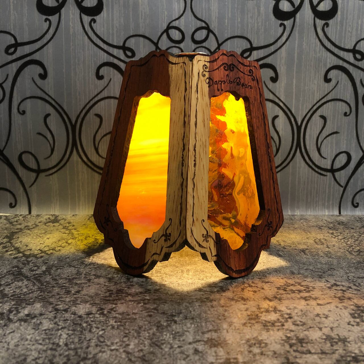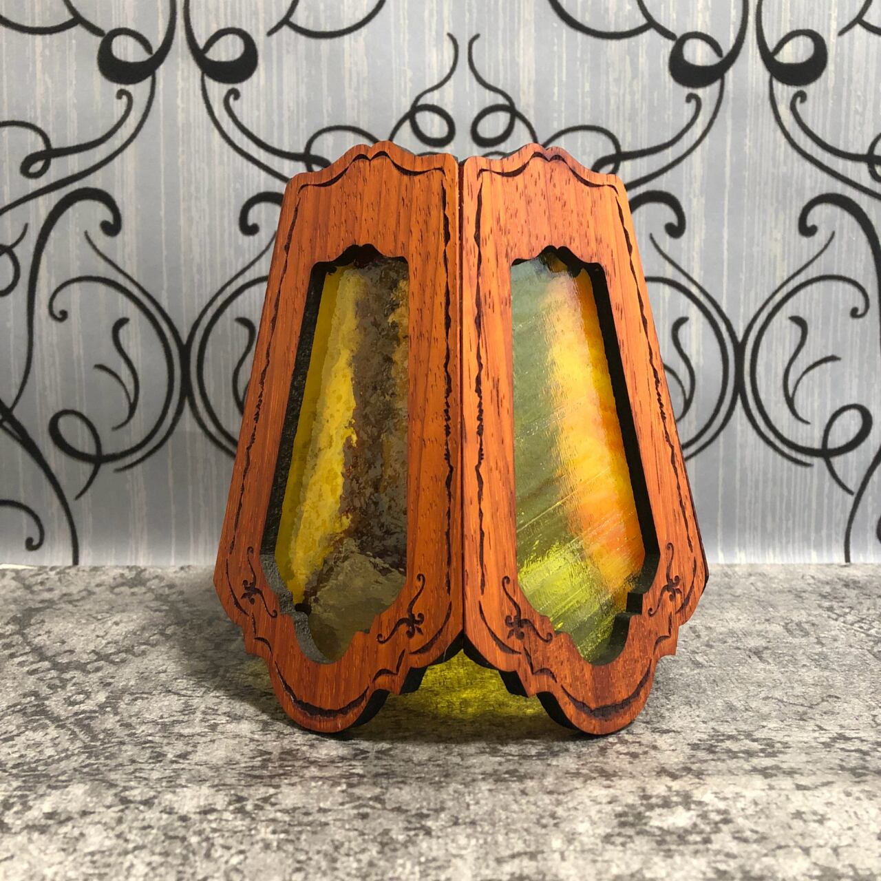 無垢材パドックとステンドグラスを融合させ両方の美しさを最大限に活かした高級感漂う Bornオリジナルランプシェード(2WAY:吊る・置き型)