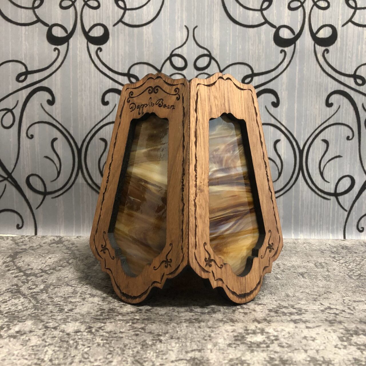 無垢材ウォールナットとステンドグラスを融合させ両方の美しさを最大限に活かした高級感漂う Bornオリジナルランプシェード(2WAY:吊る・置き型)