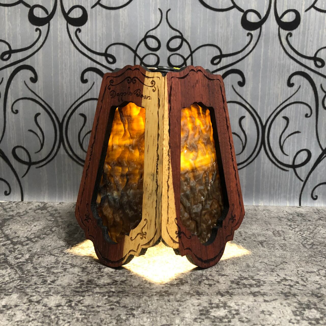 無垢材パドックとステンドグラスを融合させ両方の美しさを最大限に活かした高級感漂う Bornオリジナルランプシェード(2WAY:吊る・置き型)