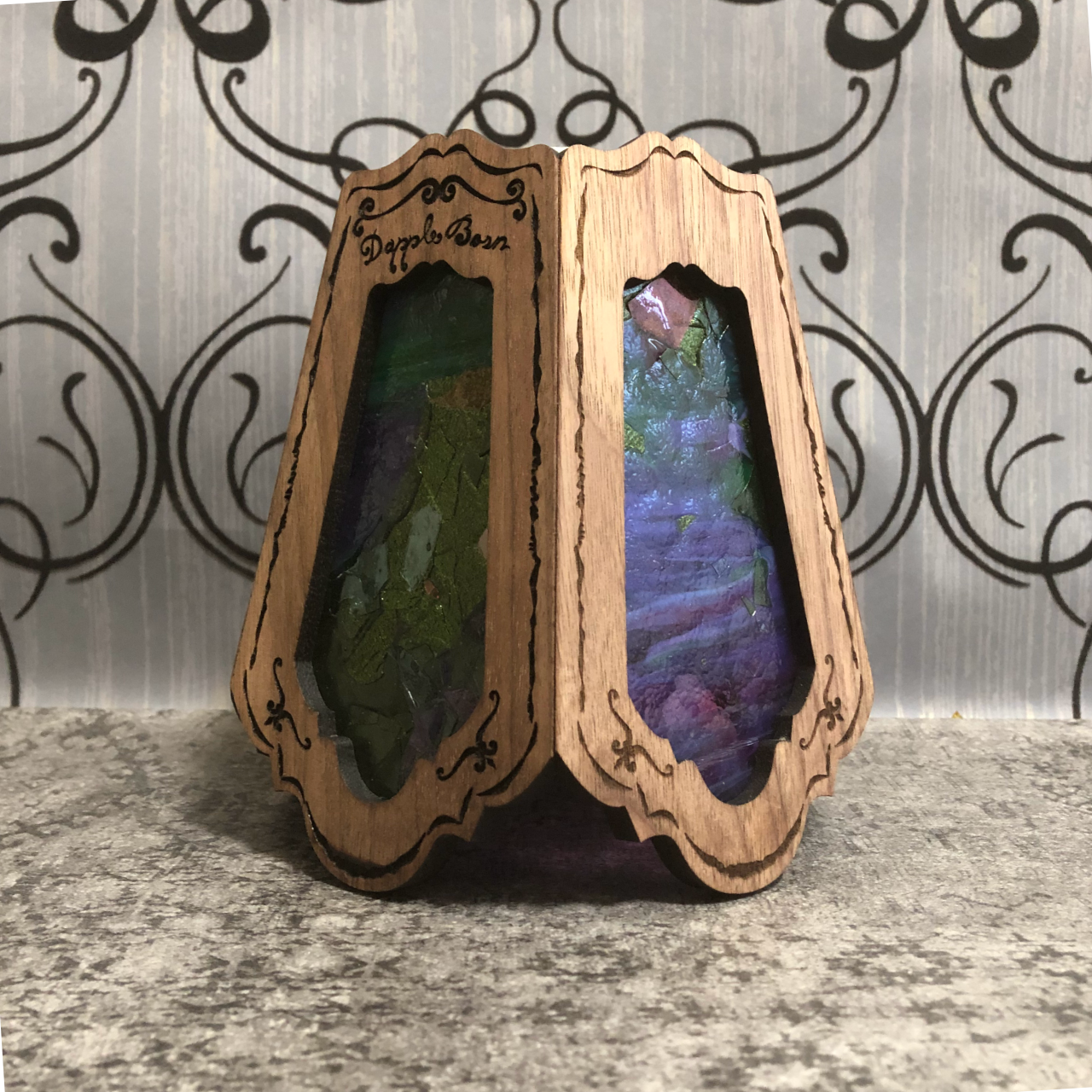 ダップルグラスシェード【ウォールナット】リーフバイオレット