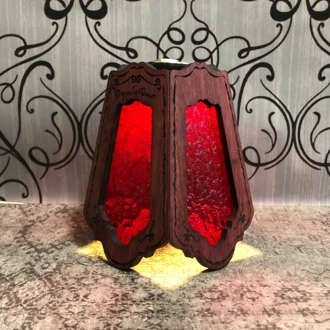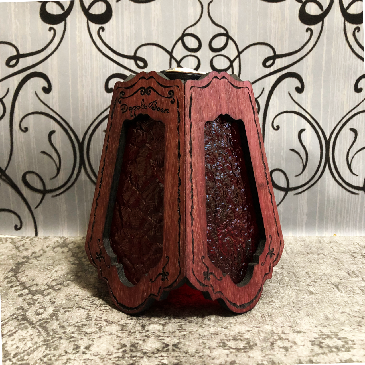 無垢材パープルハートとステンドグラスを融合させ両方の美しさを最大限に活かした高級感漂う Bornオリジナルランプシェード(2WAY:吊る・置き型)