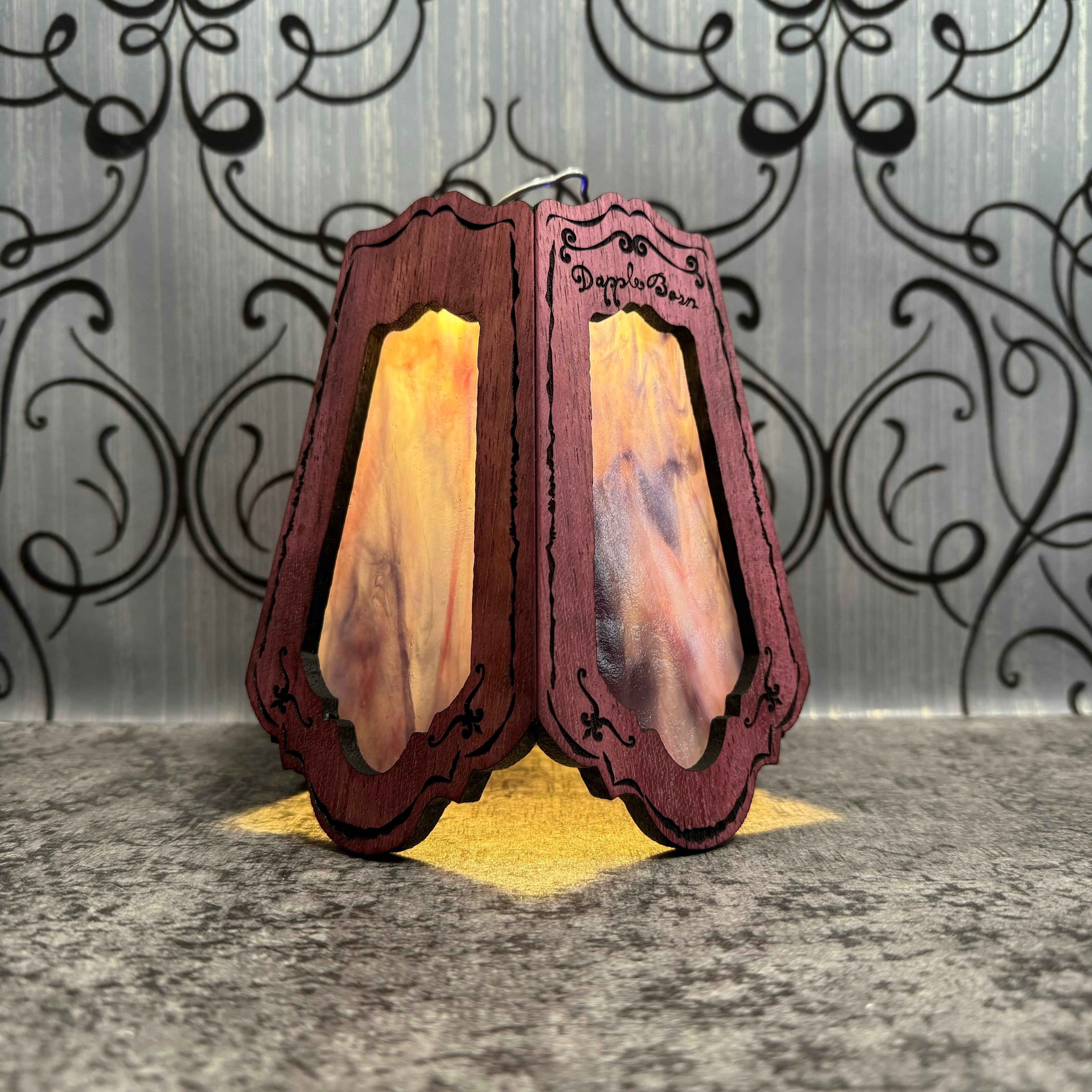 無垢材パープルハート材とステンドグラスを融合させ両方の美しさを最大限に活かした高級感漂う Bornオリジナルゴールゼロ用ランプシェード(2WAY:吊る・置き型)