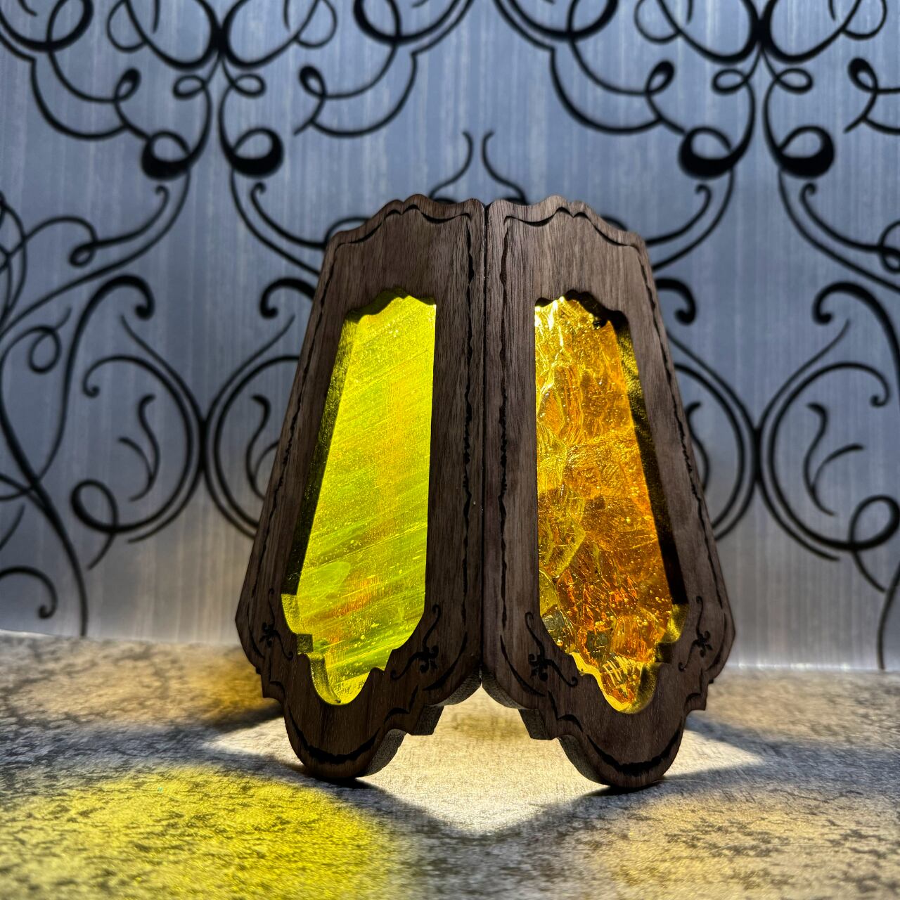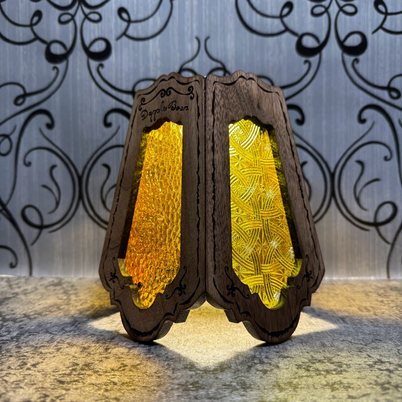 無垢材ウォールナットとステンドグラスを融合させ両方の美しさを最大限に活かした高級感漂う Bornオリジナルゴールゼロ用ランプシェード(2WAY:吊る・置き型)