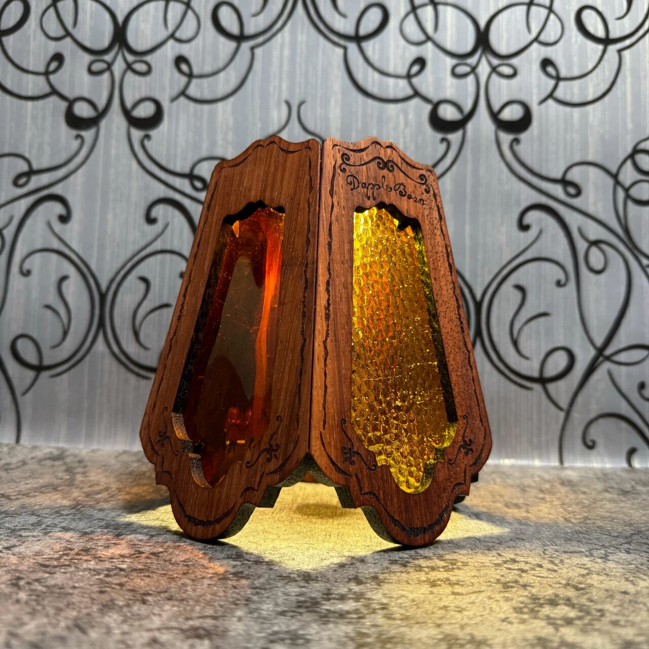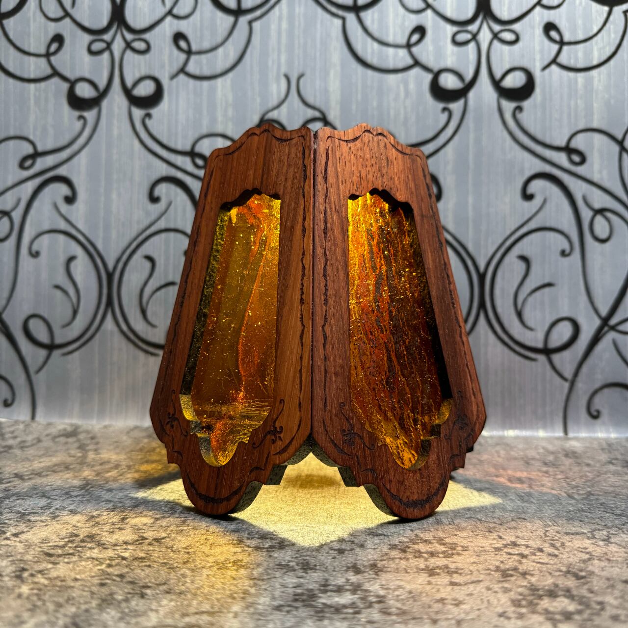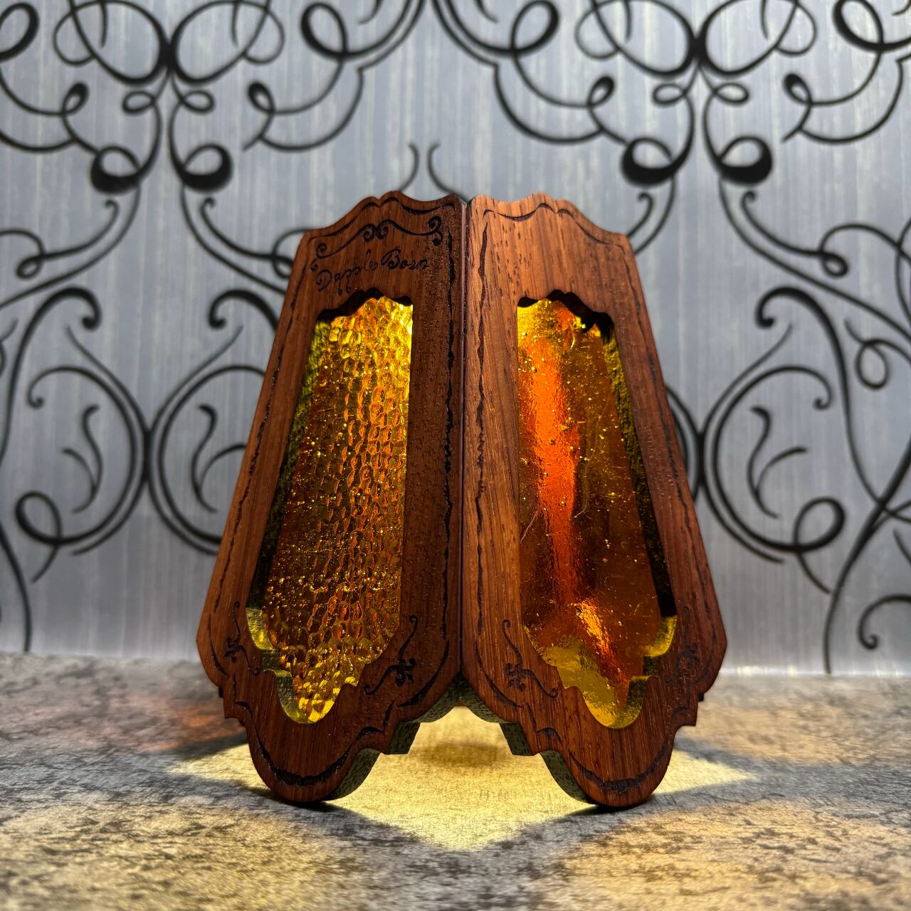 無垢材パドックとステンドグラスを融合させ両方の美しさを最大限に活かした高級感漂う Bornオリジナルゴールゼロ用ランプシェード(2WAY:吊る・置き型)