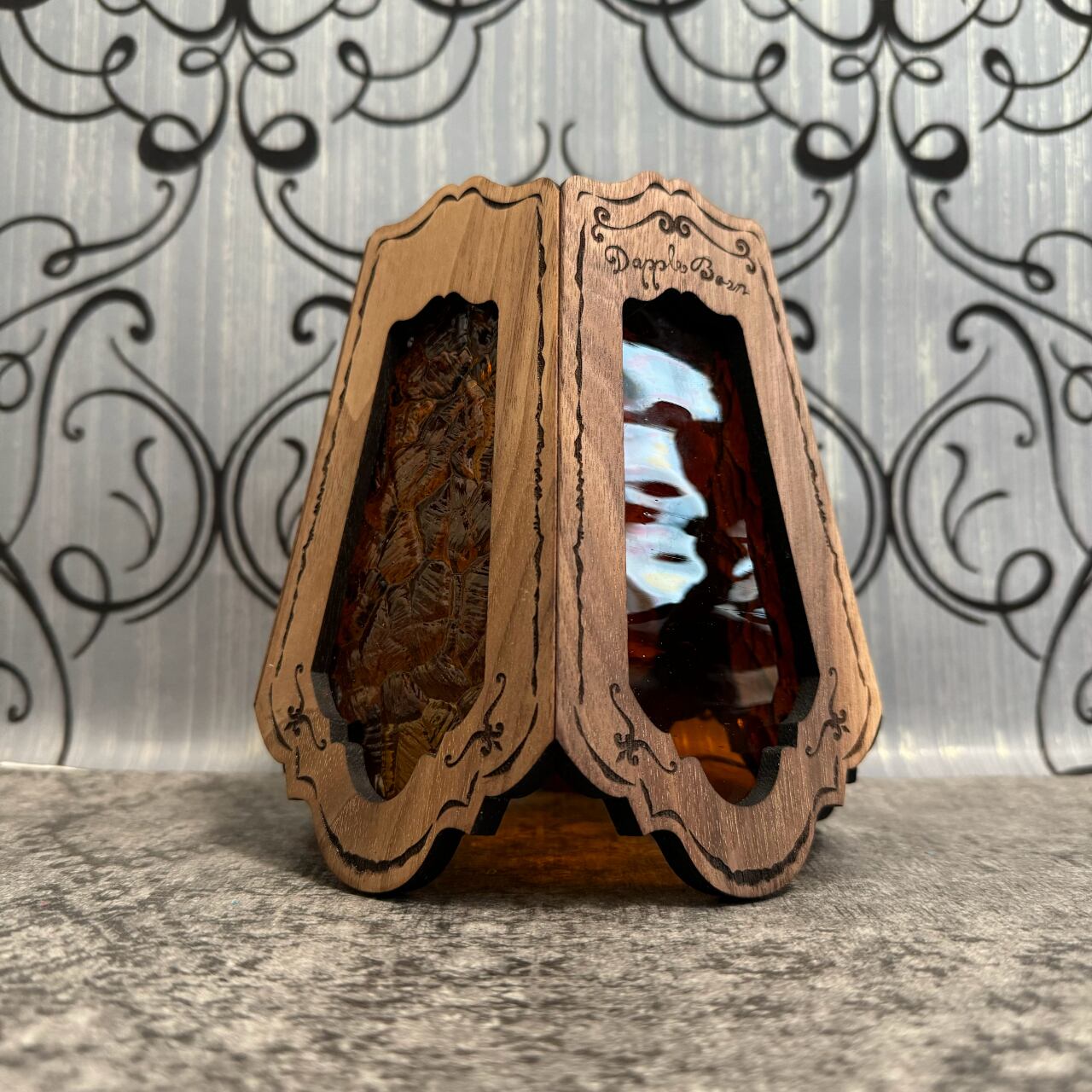 無垢材ウォールナットとステンドグラスを融合させ両方の美しさを最大限に活かした高級感漂う Bornオリジナルゴールゼロ用ランプシェード(2WAY:吊る・置き型)