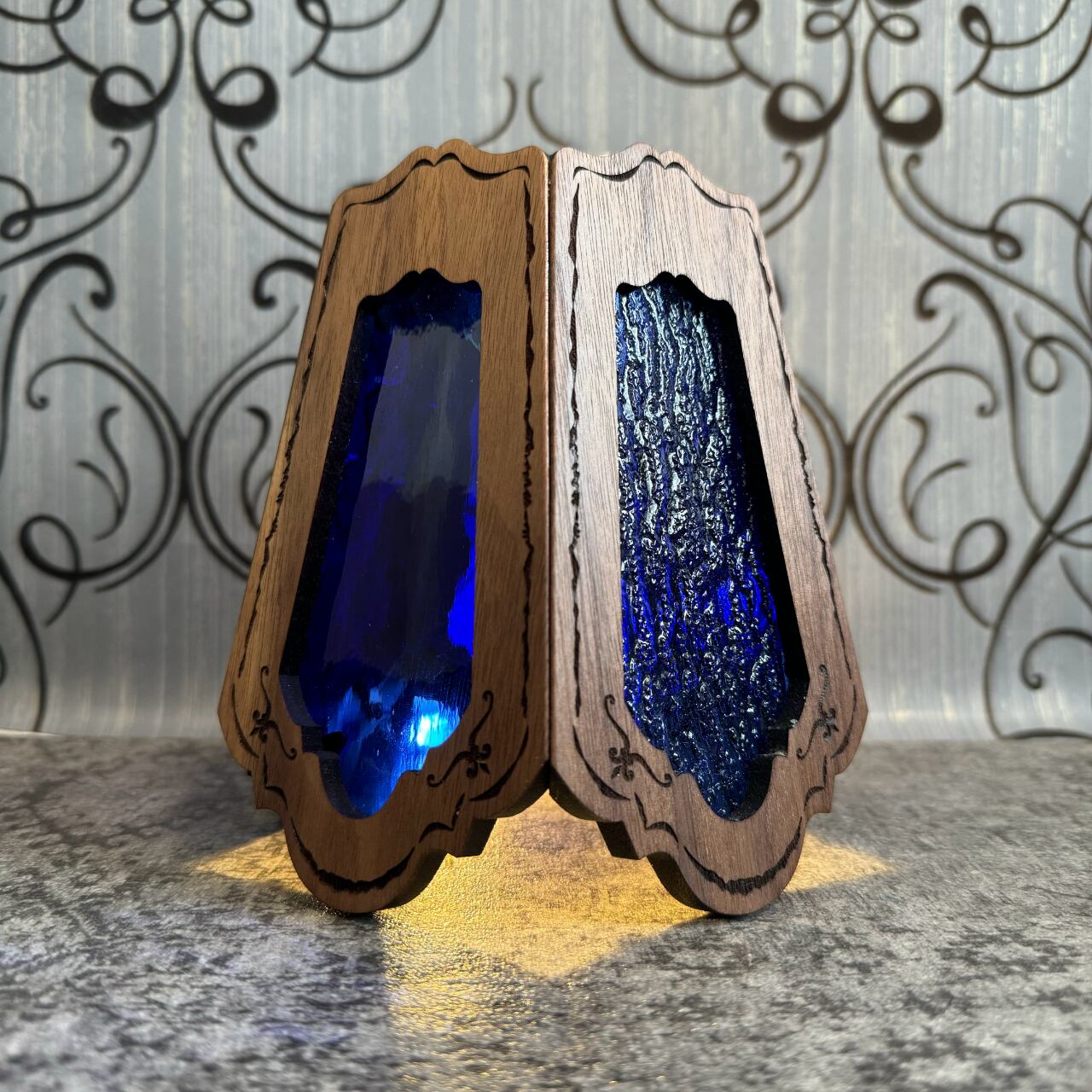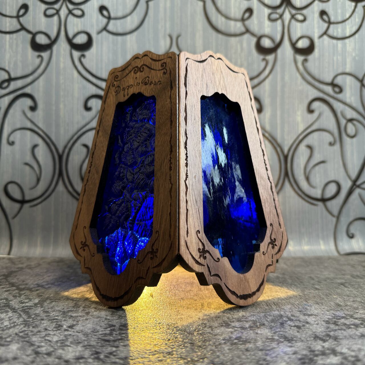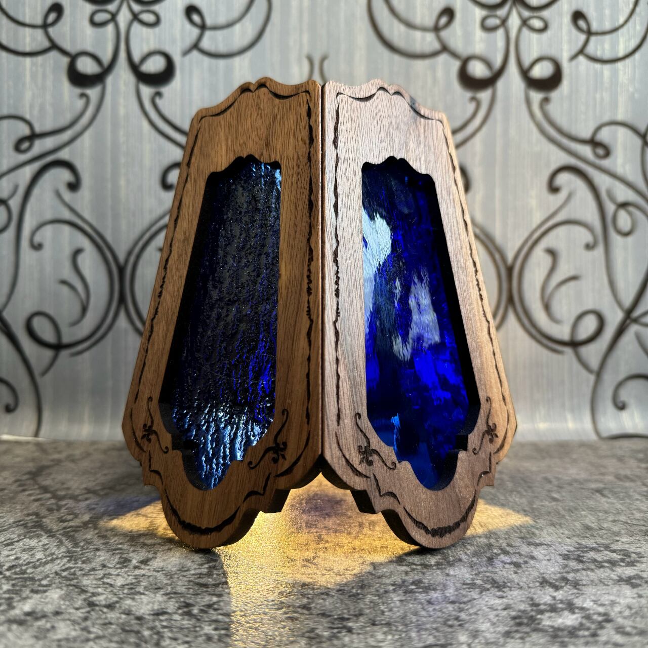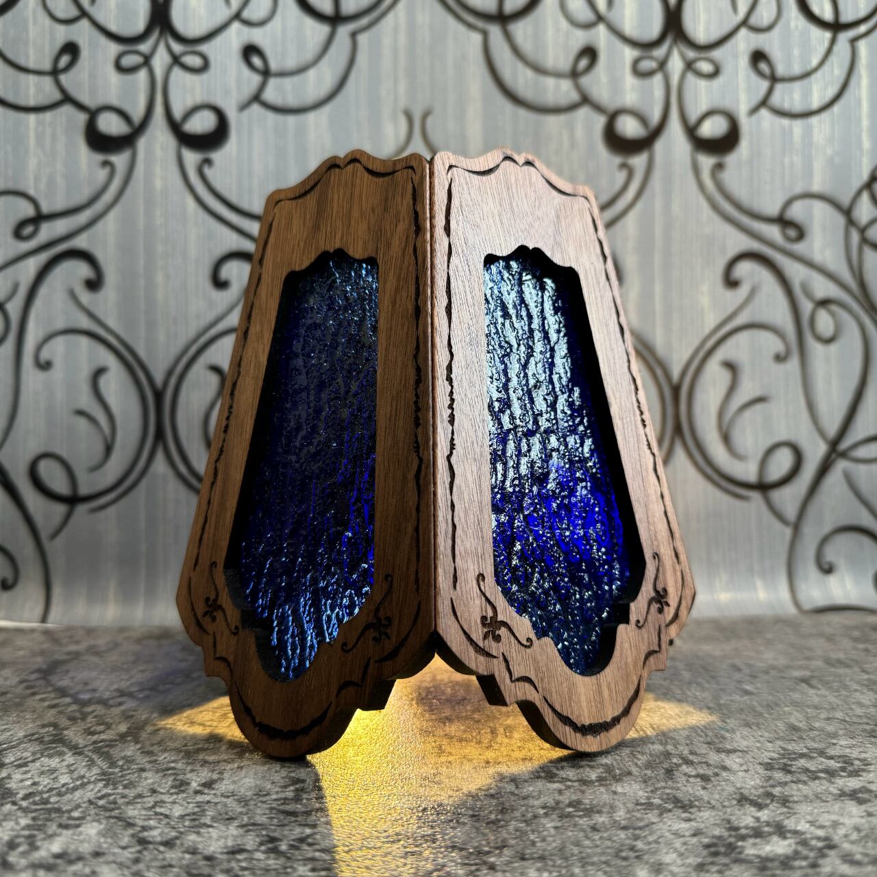 無垢材ウォールナットとステンドグラスを融合させ両方の美しさを最大限に活かした高級感漂う Bornオリジナルゴールゼロ用ランプシェード(2WAY:吊る・置き型)