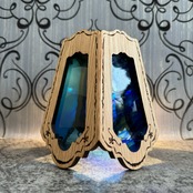 無垢材ホワイトオークとステンドグラスを融合させ両方の美しさを最大限に活かした高級感漂う Bornオリジナルゴールゼロ用ランプシェード(2WAY:吊る・置き型)