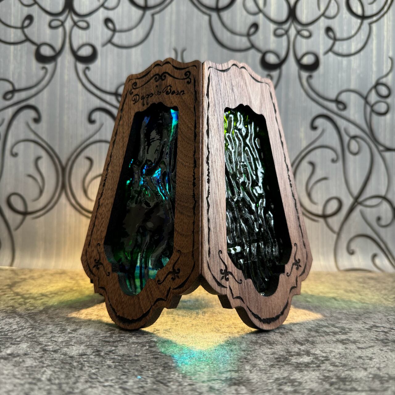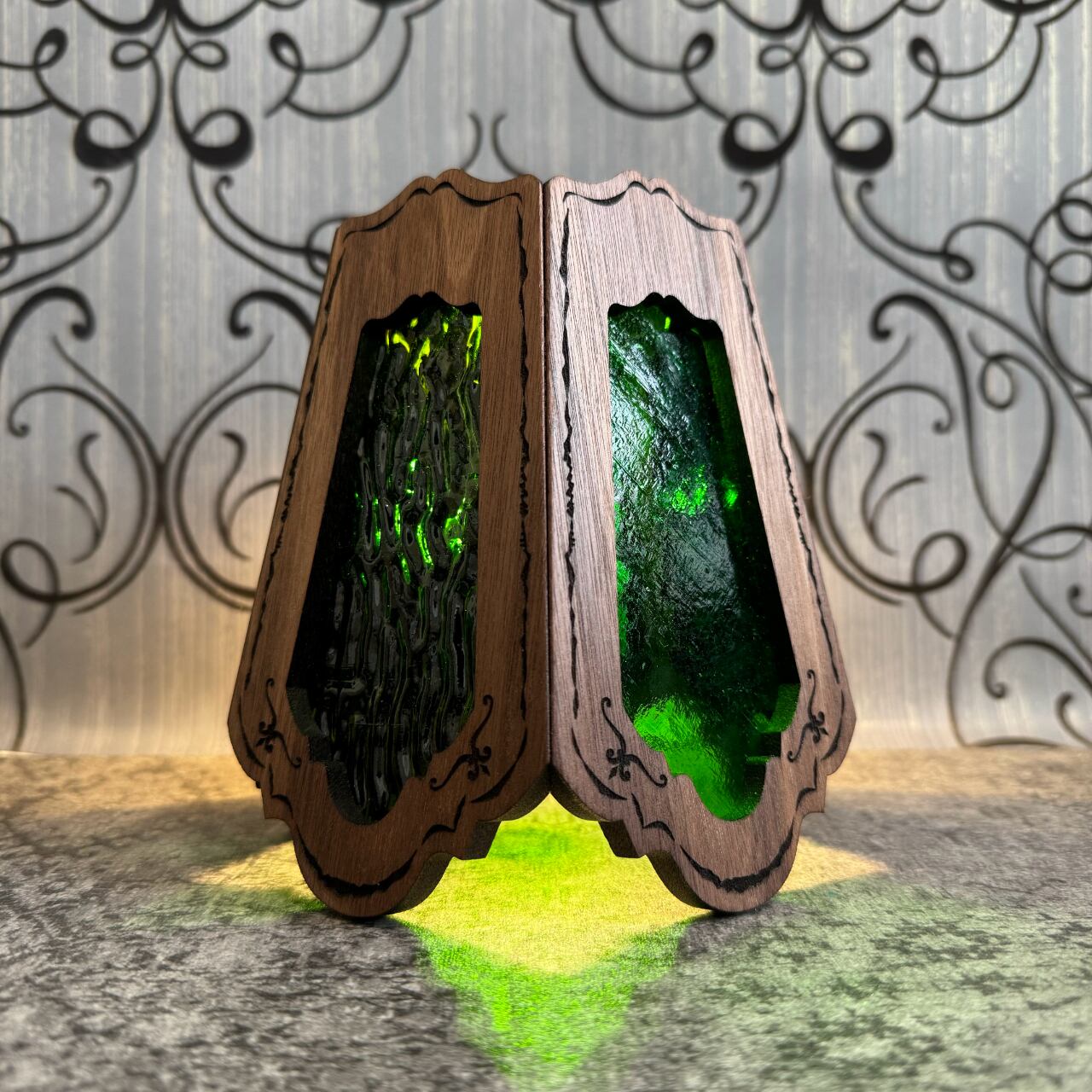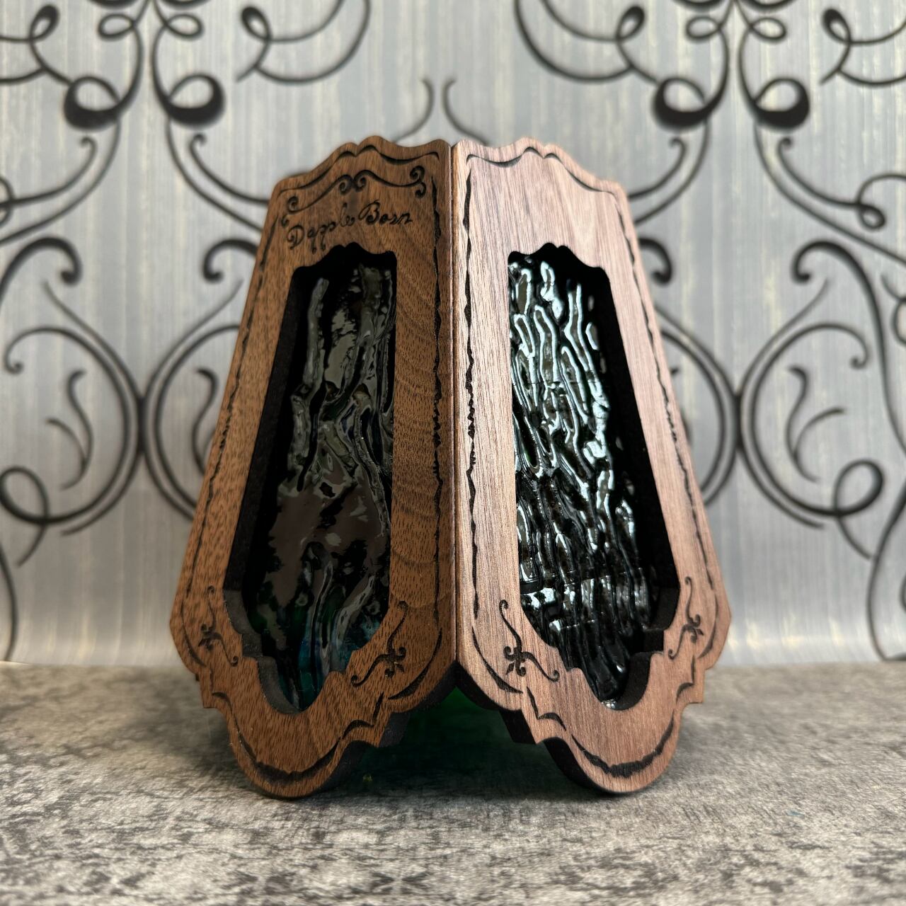 無垢材ウォールナットとステンドグラスを融合させ両方の美しさを最大限に活かした高級感漂う Bornオリジナルゴールゼロ用ランプシェード(2WAY:吊る・置き型)