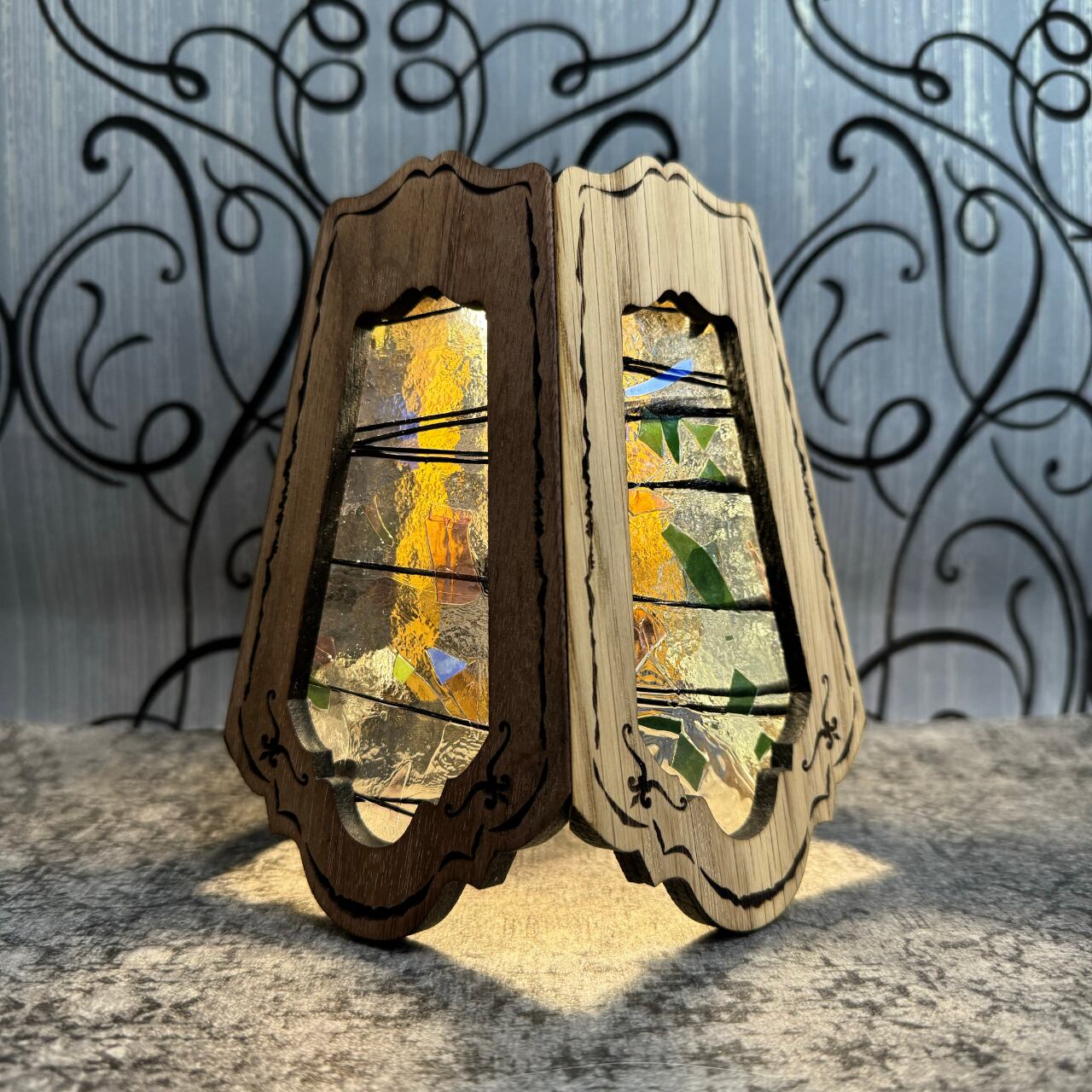 無垢材ウェンジとステンドグラスを融合させ両方の美しさを最大限に活かした高級感漂う Bornオリジナルゴールゼロ用ランプシェード(2WAY:吊る・置き型)