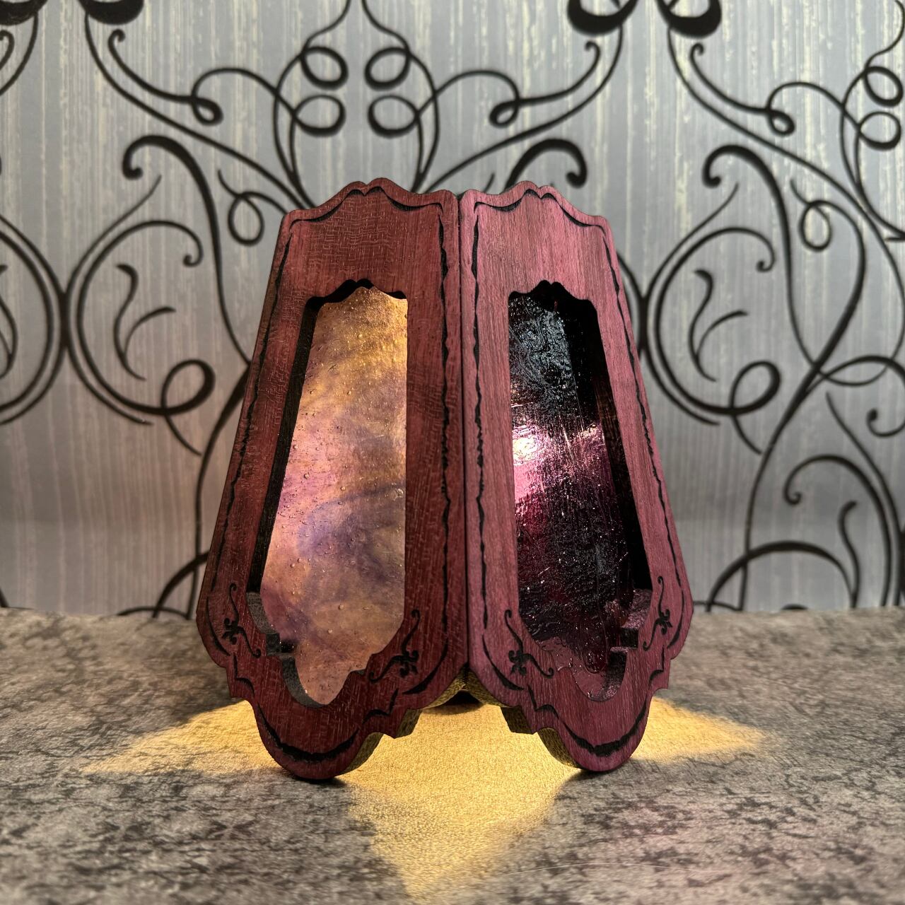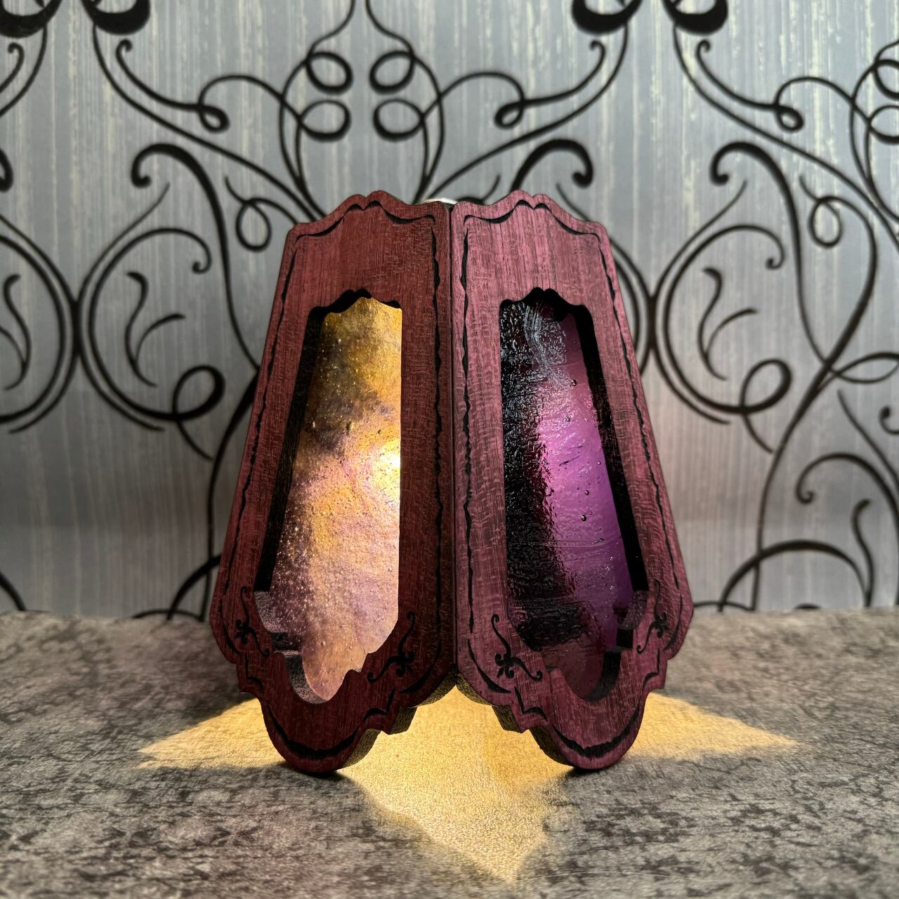 無垢材ウェンジとステンドグラスを融合させ両方の美しさを最大限に活かした高級感漂う Bornオリジナルゴールゼロ用ランプシェード(2WAY:吊る・置き型)