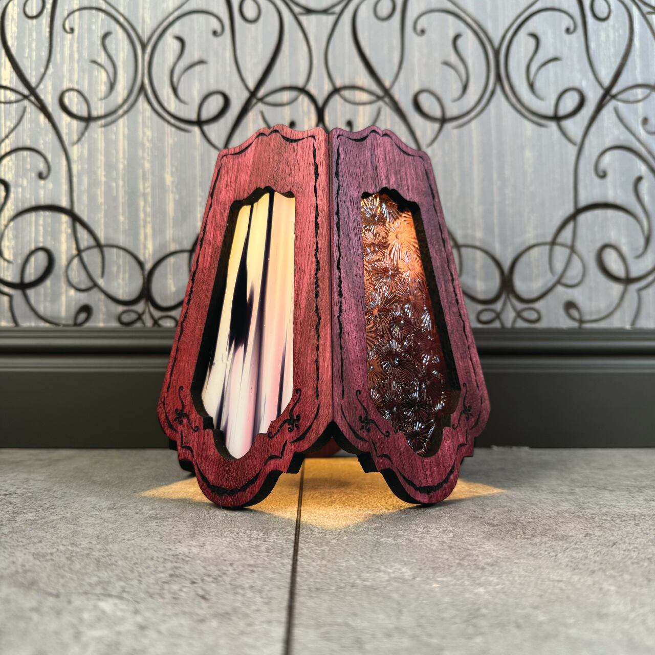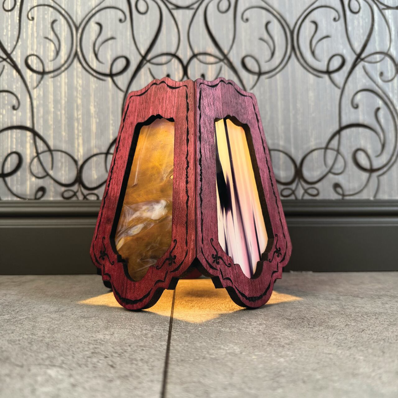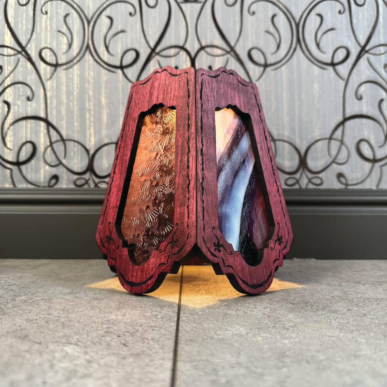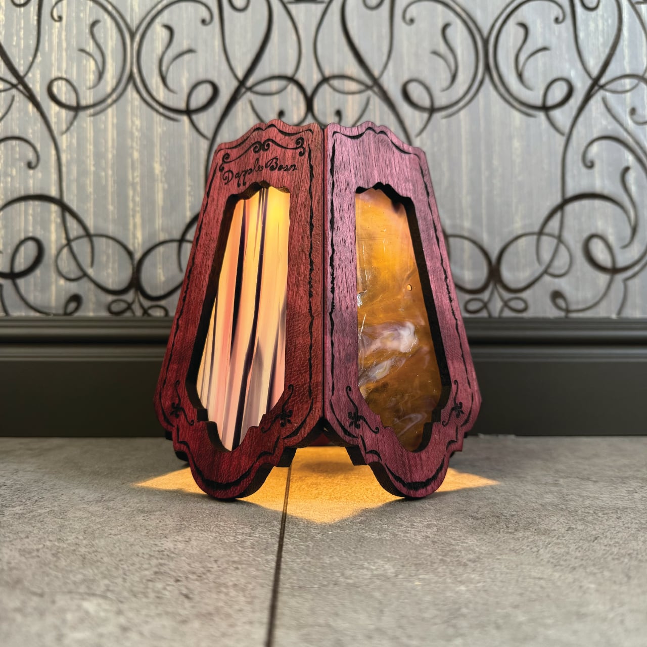 無垢材パープルハートとステンドグラスを融合させ両方の美しさを最大限に活かした高級感漂う Bornオリジナルゴールゼロ用ランプシェード(2WAY:吊る・置き型)